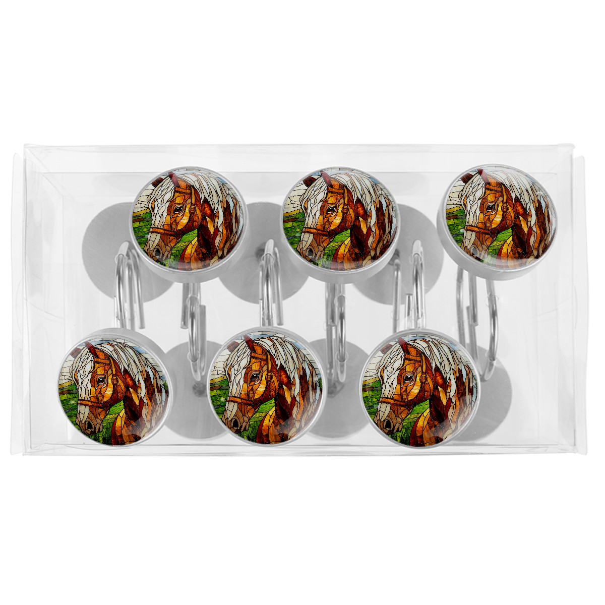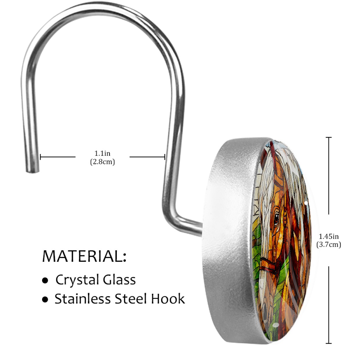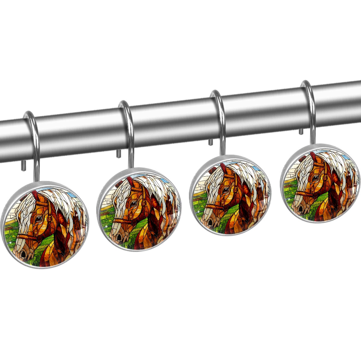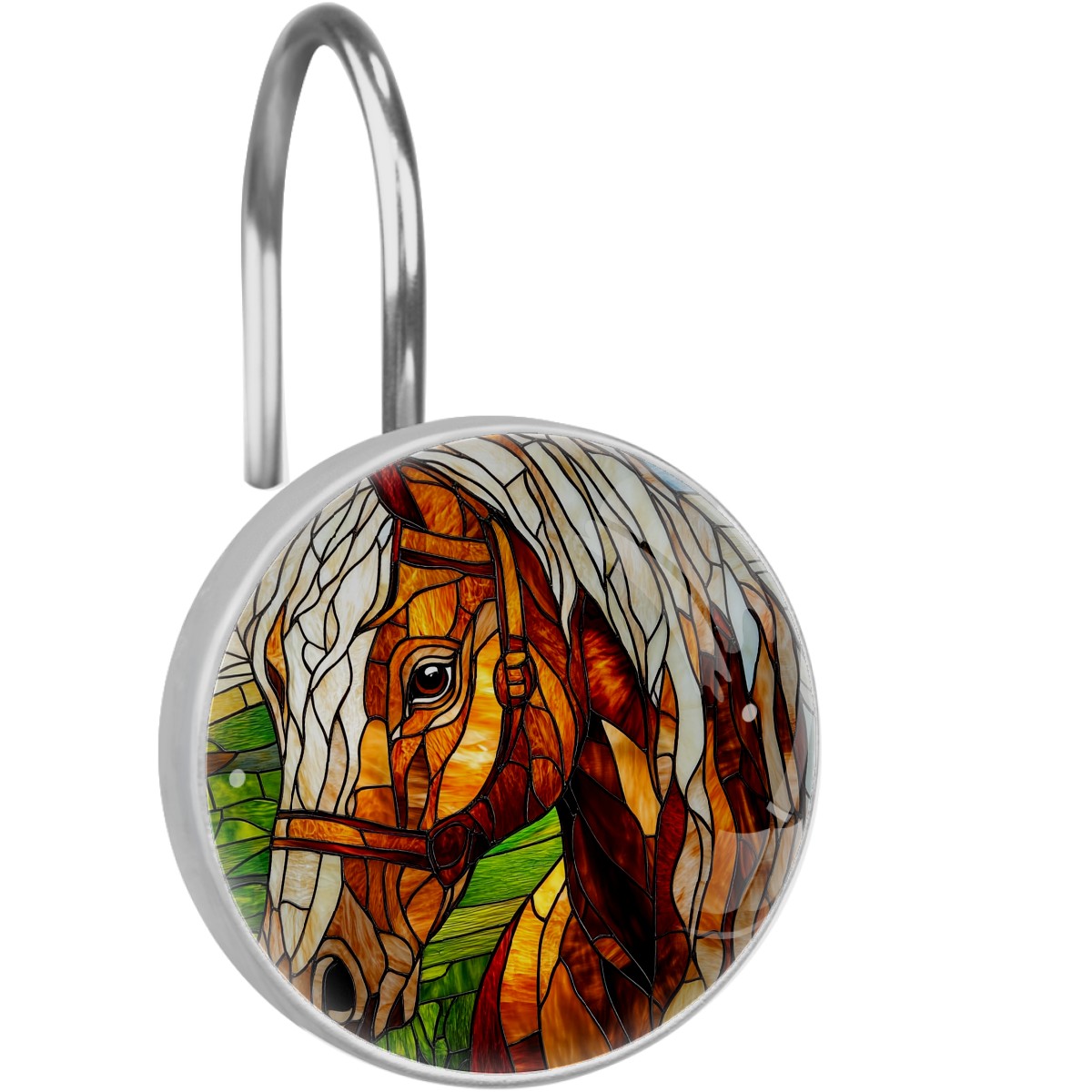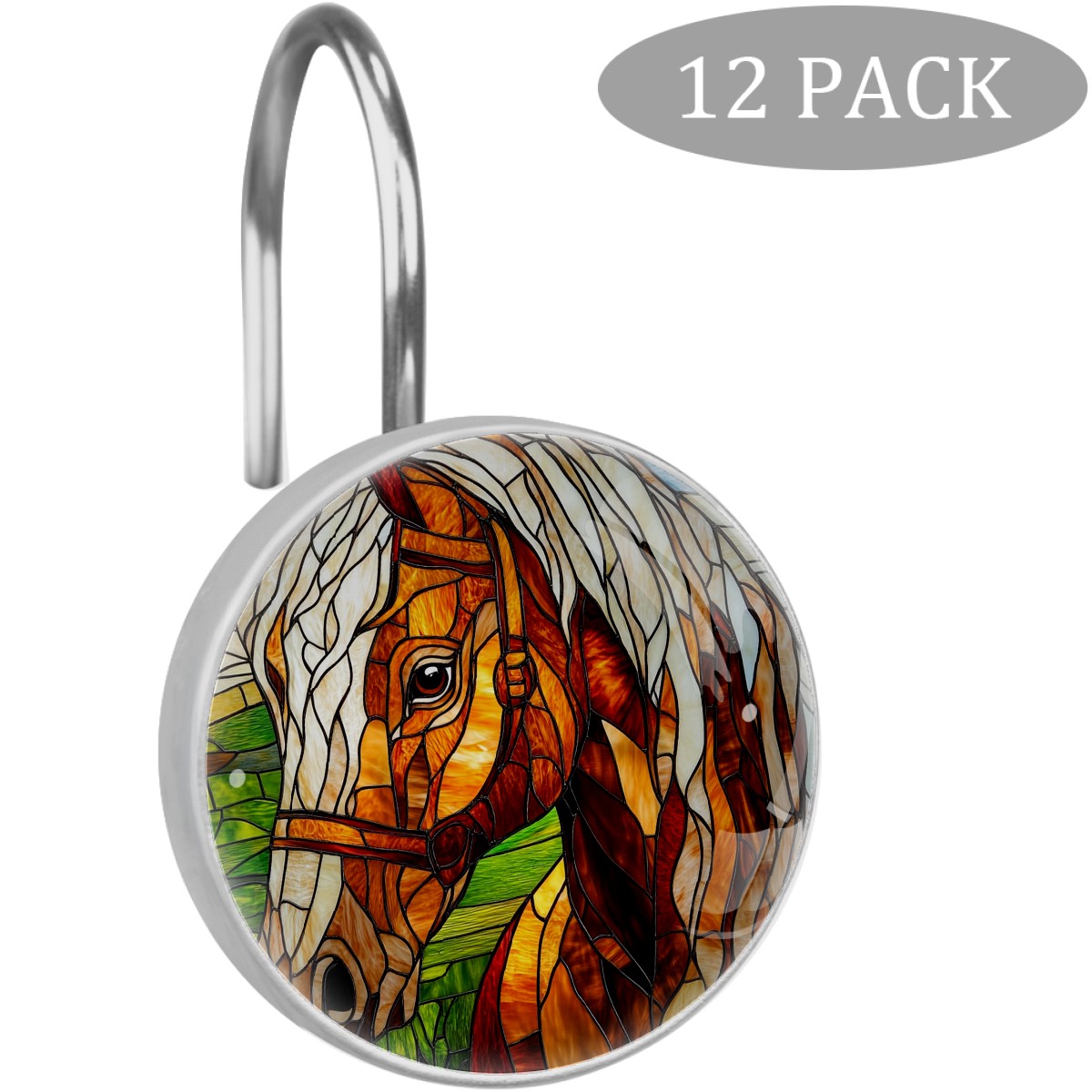 Decorative Stained Glass Brown Horse Shower Curtain Hooks 12pcs Crystal Glass Rustproof Shower Hooks for Bathroom Home Decor Stainless Steel Resin Shower Curtain Rings