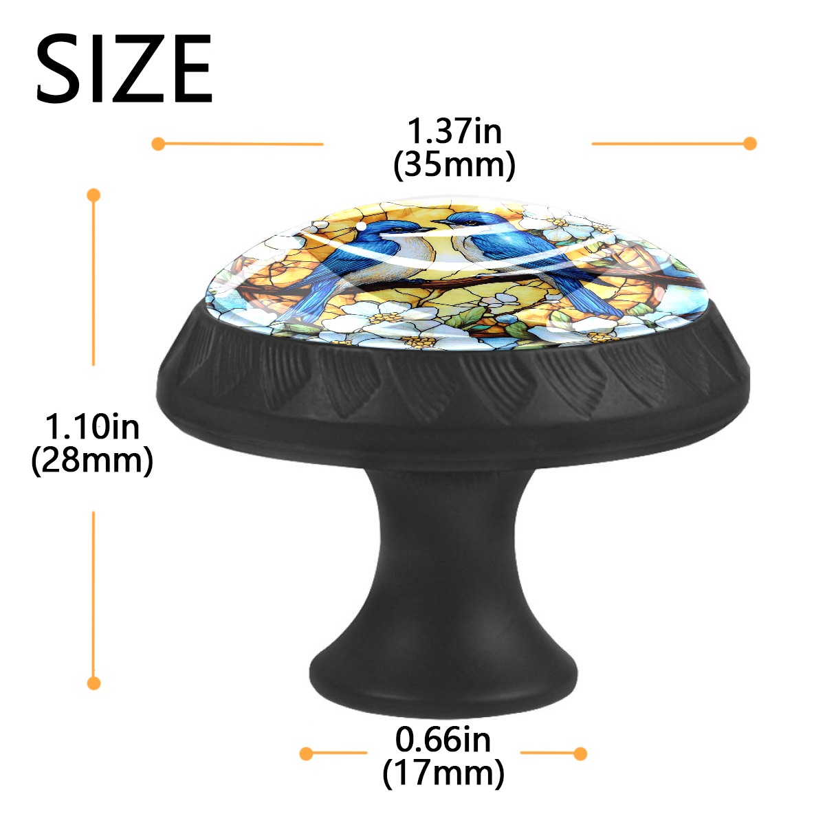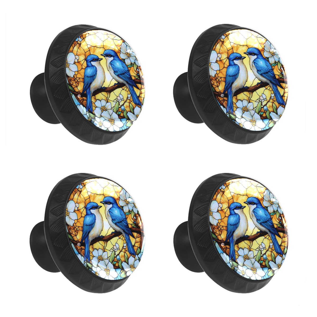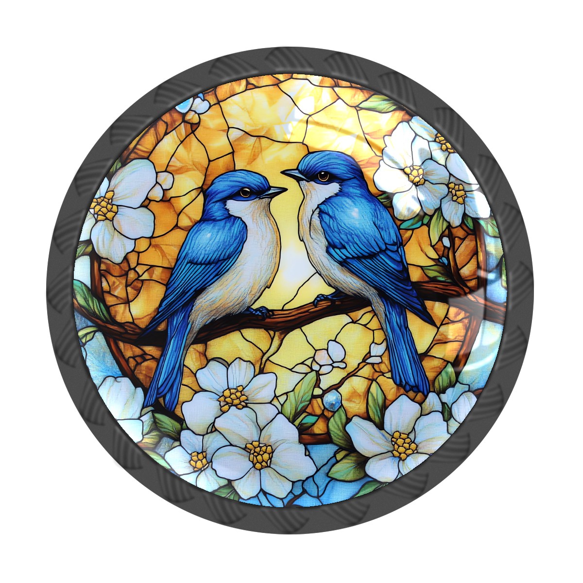 4 Pack Cabinet Knobs Blue Birds White Flowers Drawer Pulls Crystal Glass Round Knobs Handles for Dressers Drawer Bathroom Kitchen Cupboards Wardrobes Hardware Furniture Knobs
