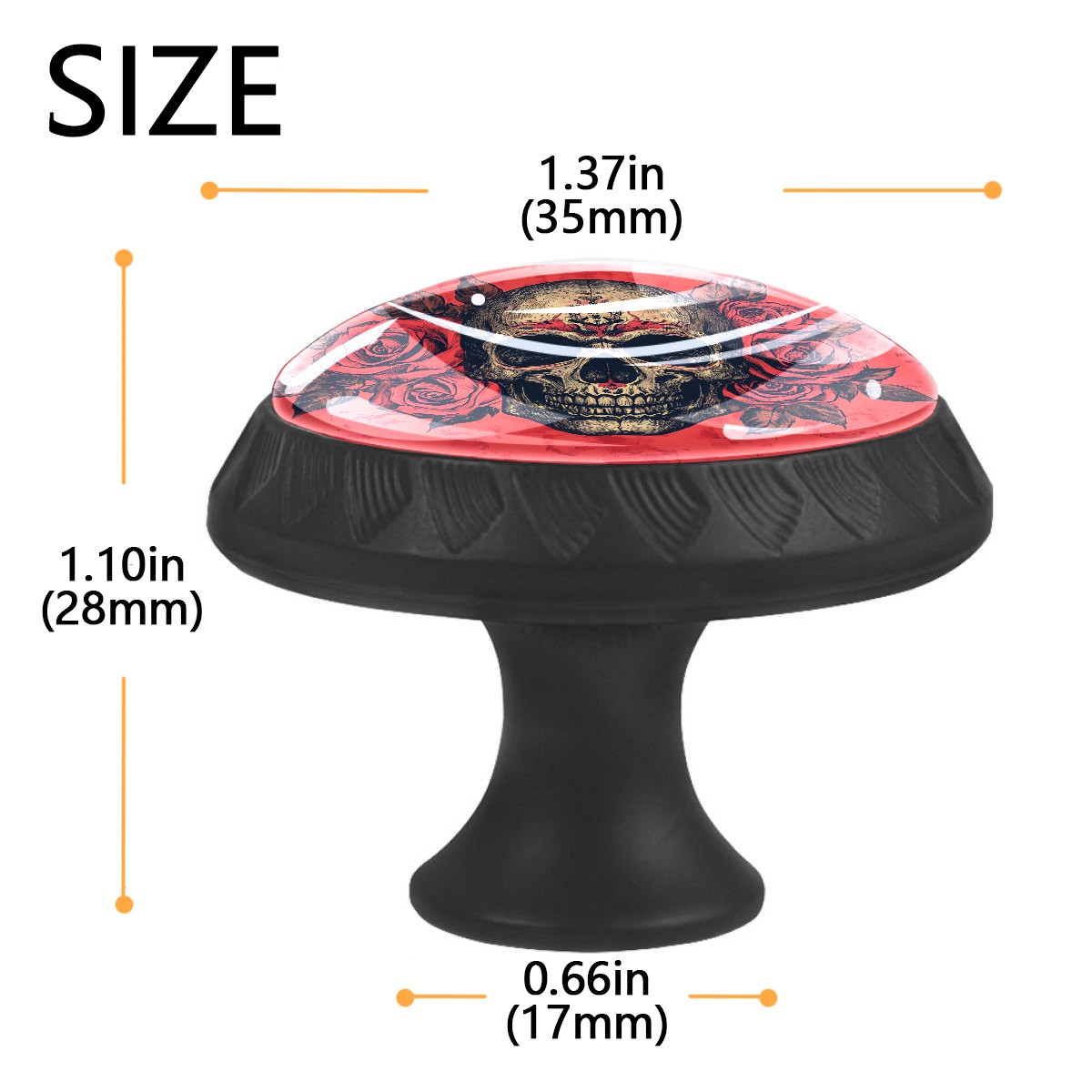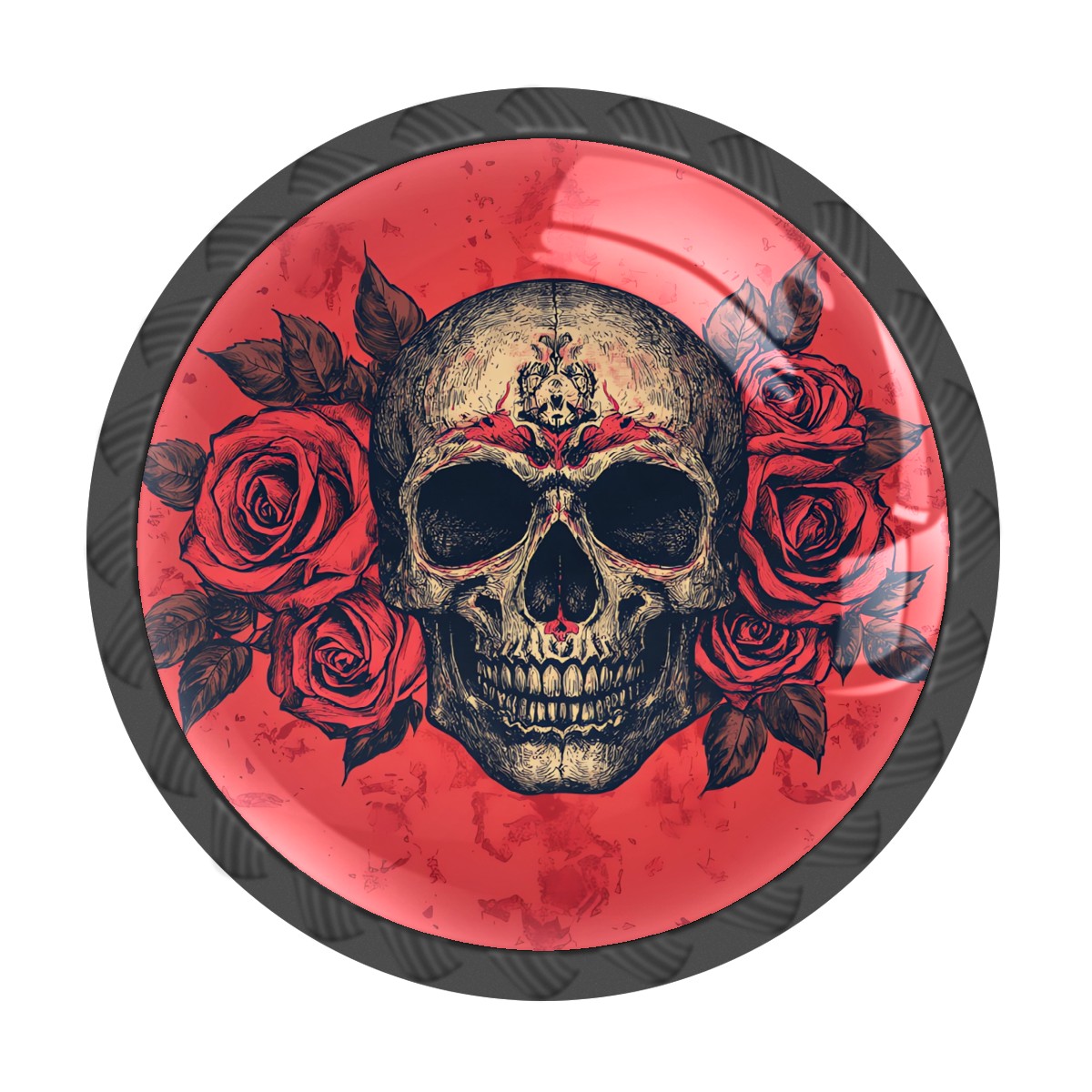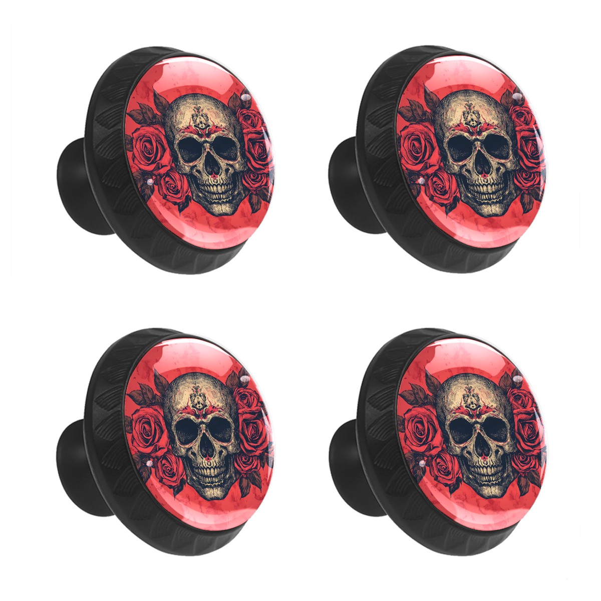 4 Pack Cabinet Knobs Skull Roses Red Drawer Pulls Crystal Glass Round Knobs Handles for Dressers Drawer Bathroom Kitchen Cupboards Wardrobes Hardware Furniture Knobs