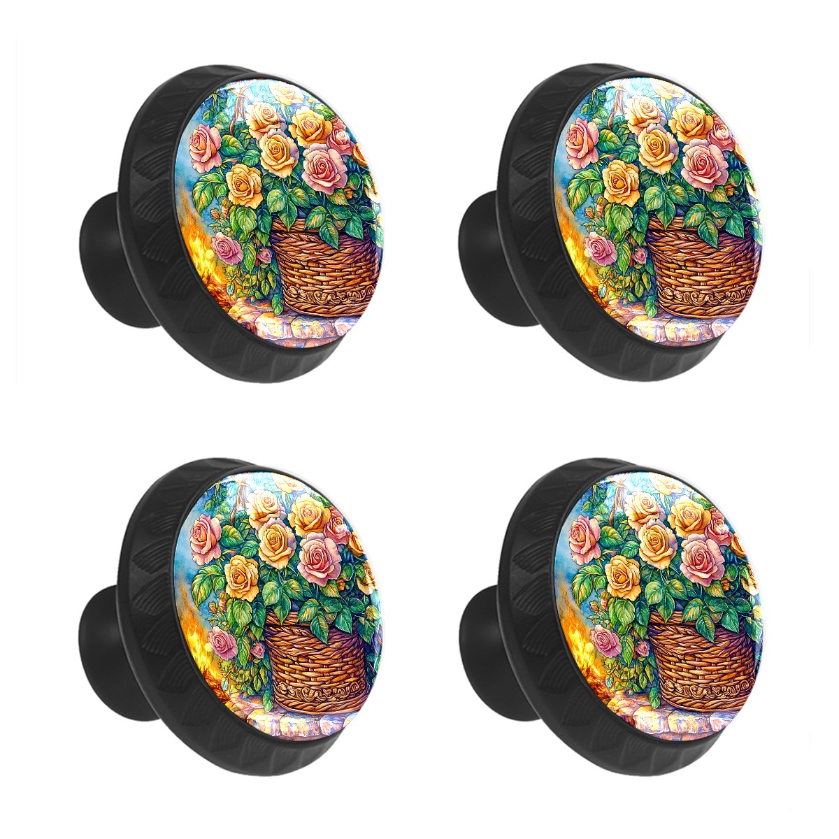 4 Pack Cabinet Knobs Roses Drawer Pulls Crystal Glass Round Knobs Handles for Dressers Drawer Bathroom Kitchen Cupboards Wardrobes Hardware Furniture Knobs
