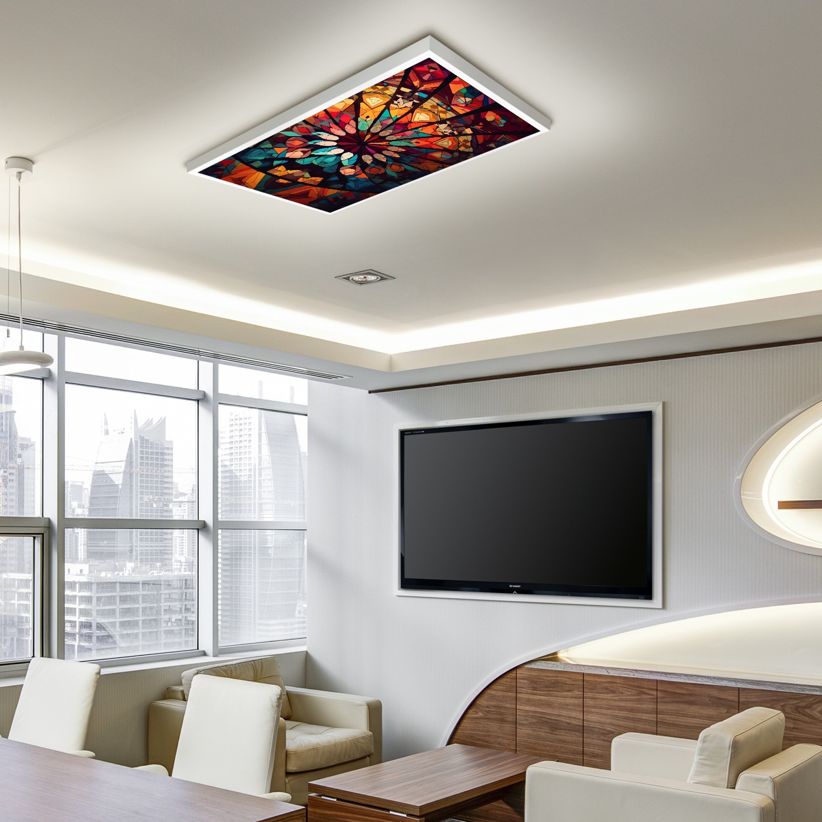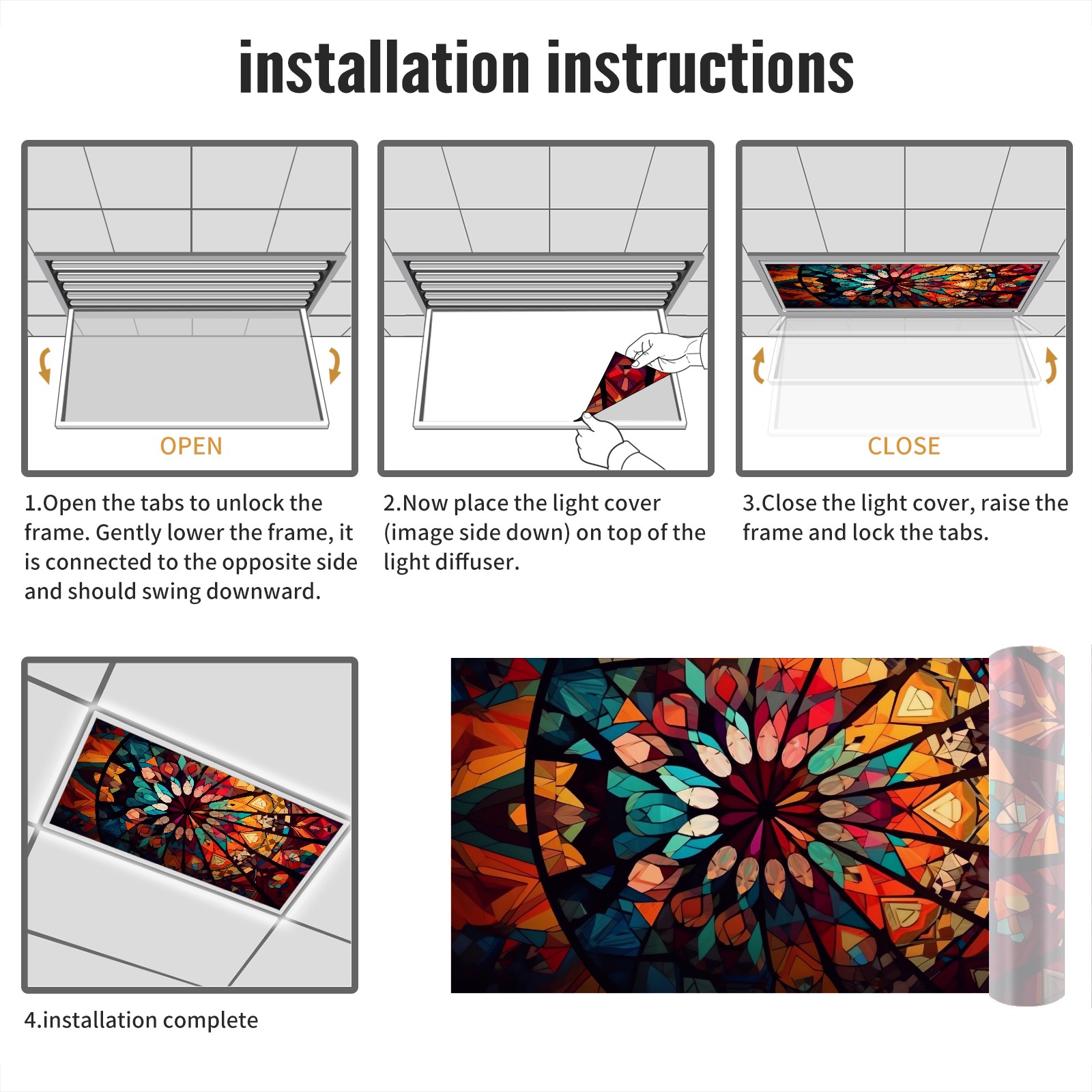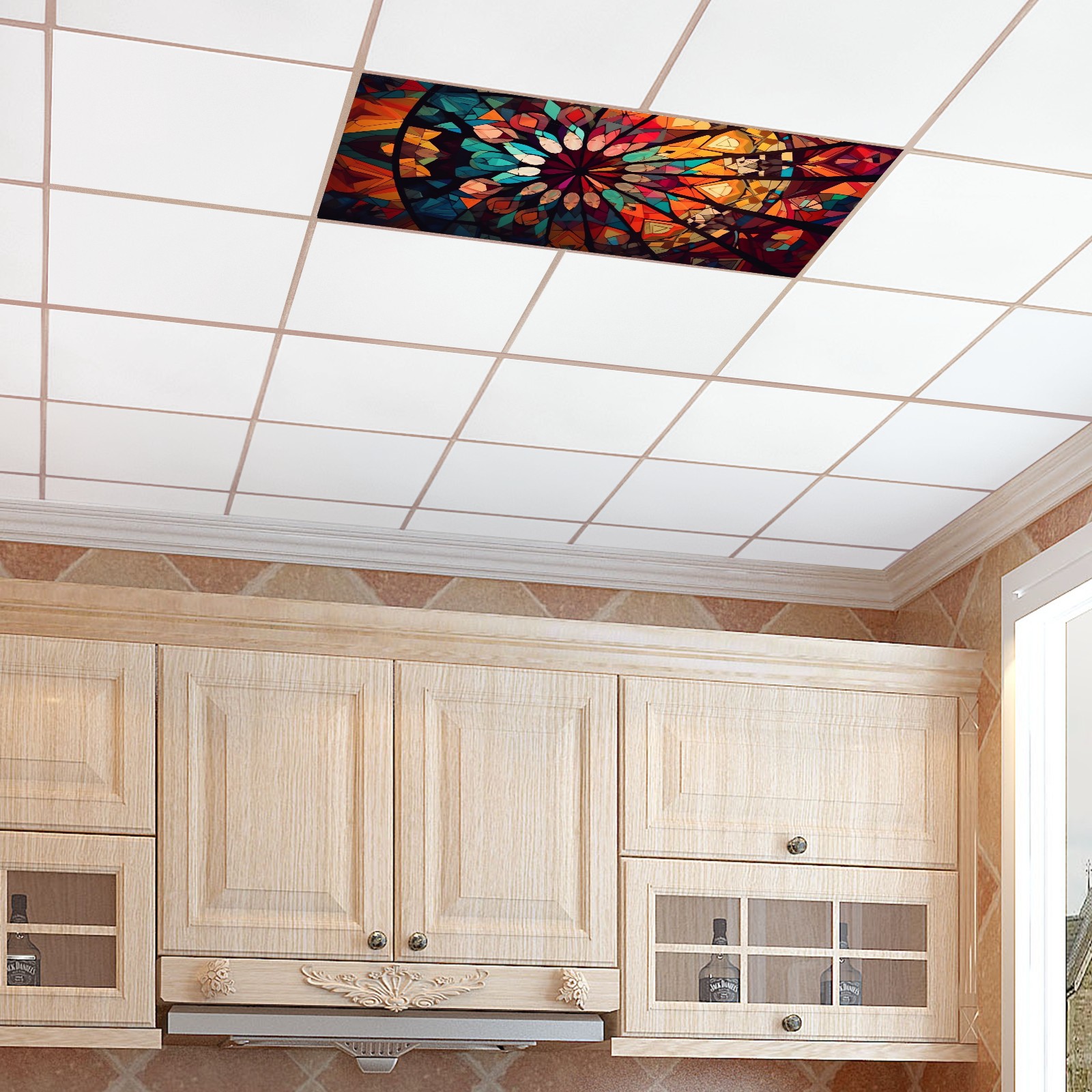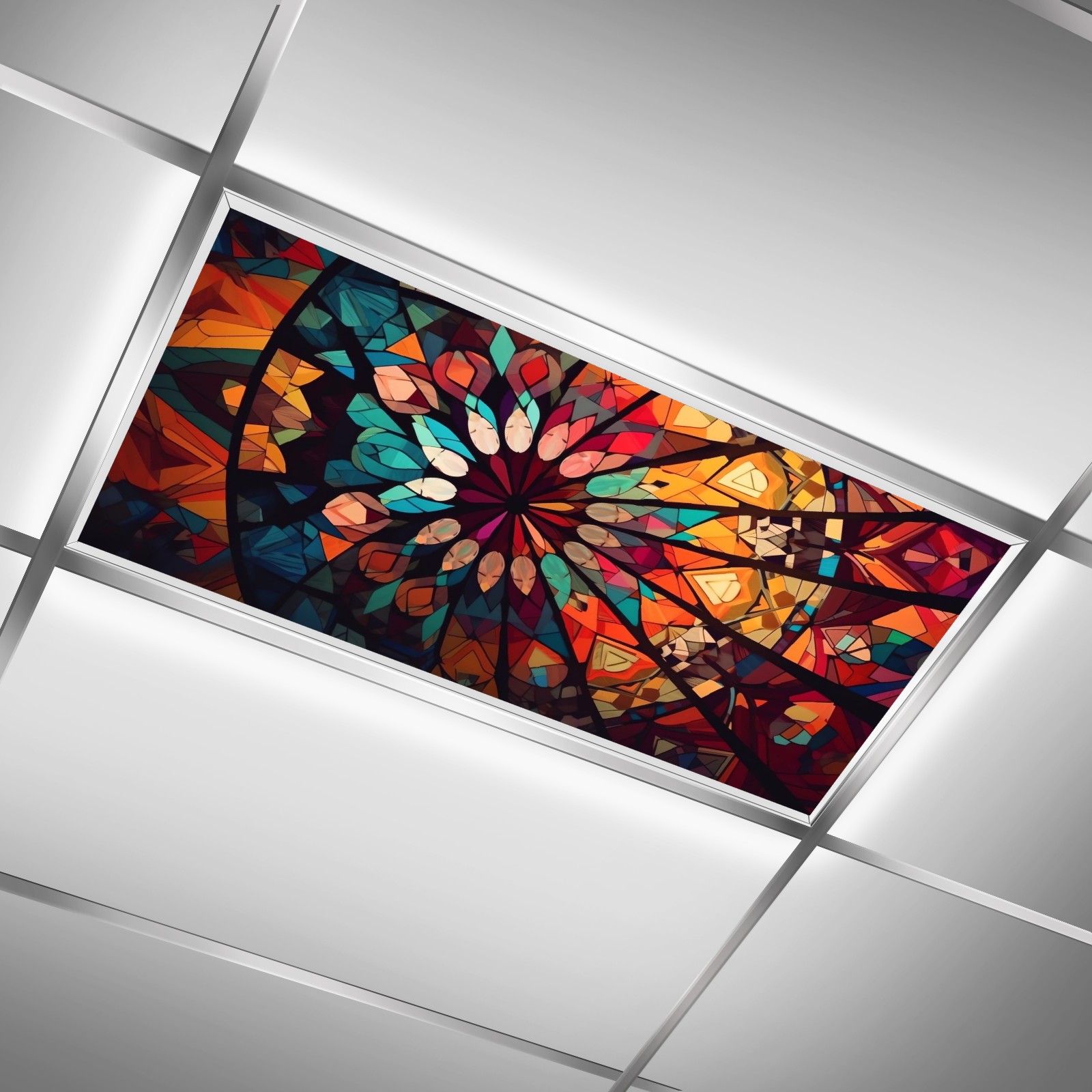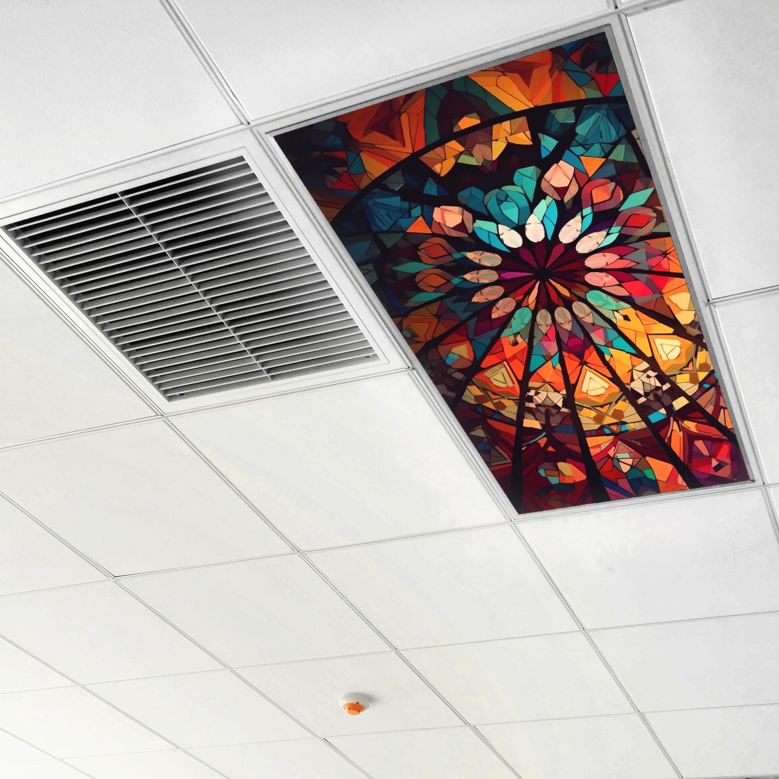 2 Pack Geometric Colorful Stained GlassLights Fluorescent Light Covers for Classroom Office 2x4ft Celling Fluorescent Decorative Eliminate Harsh Glare,Classroom Decorations