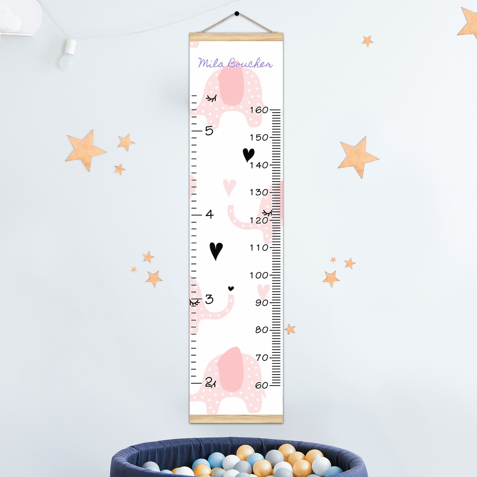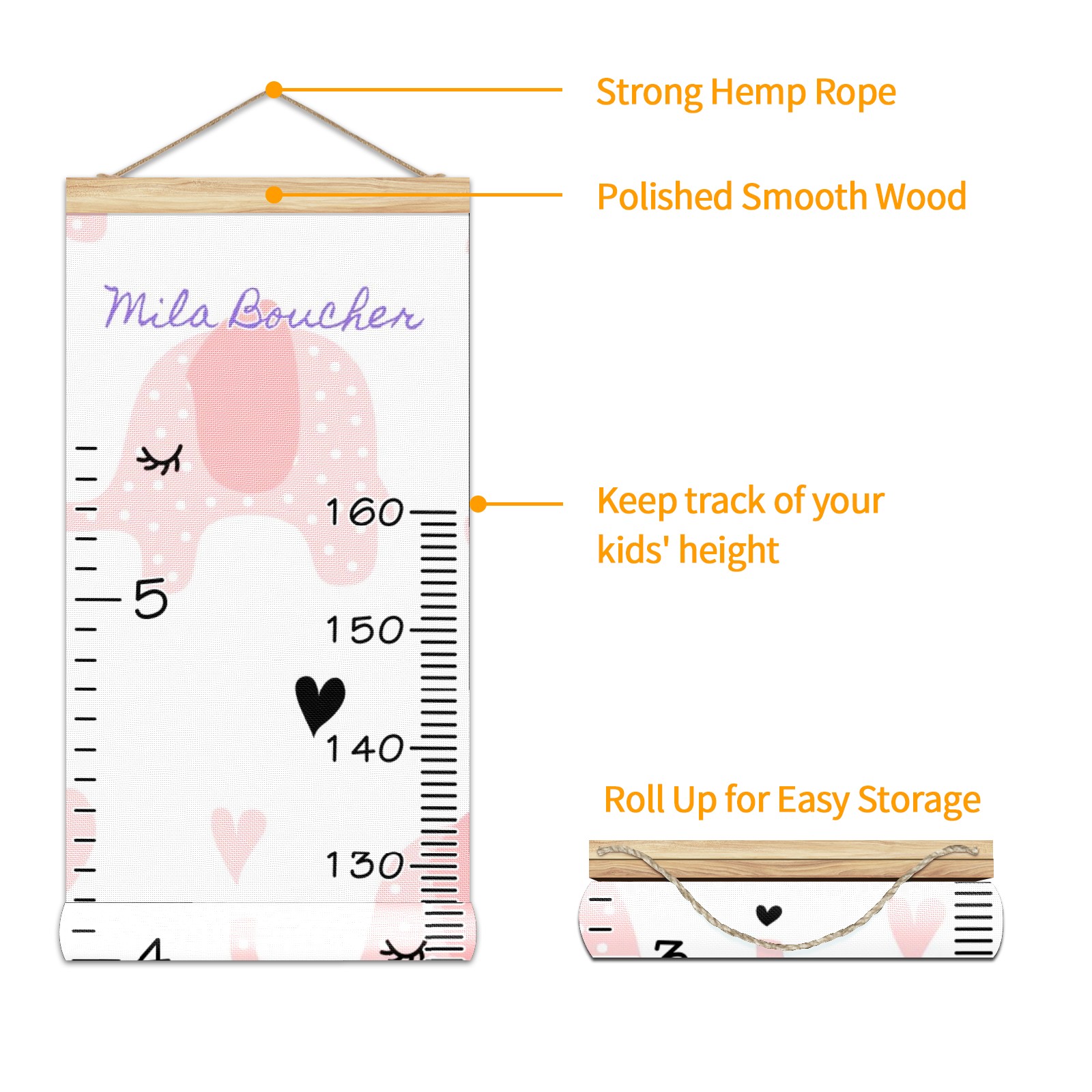 Personalized Kids Name Growth Chart Ruler for Wall Wood Frame Canvas Height Measure Chart 13.4x56 in Hanging Growth Chart Pink Elephant3.17 Boys Girls Room Decor