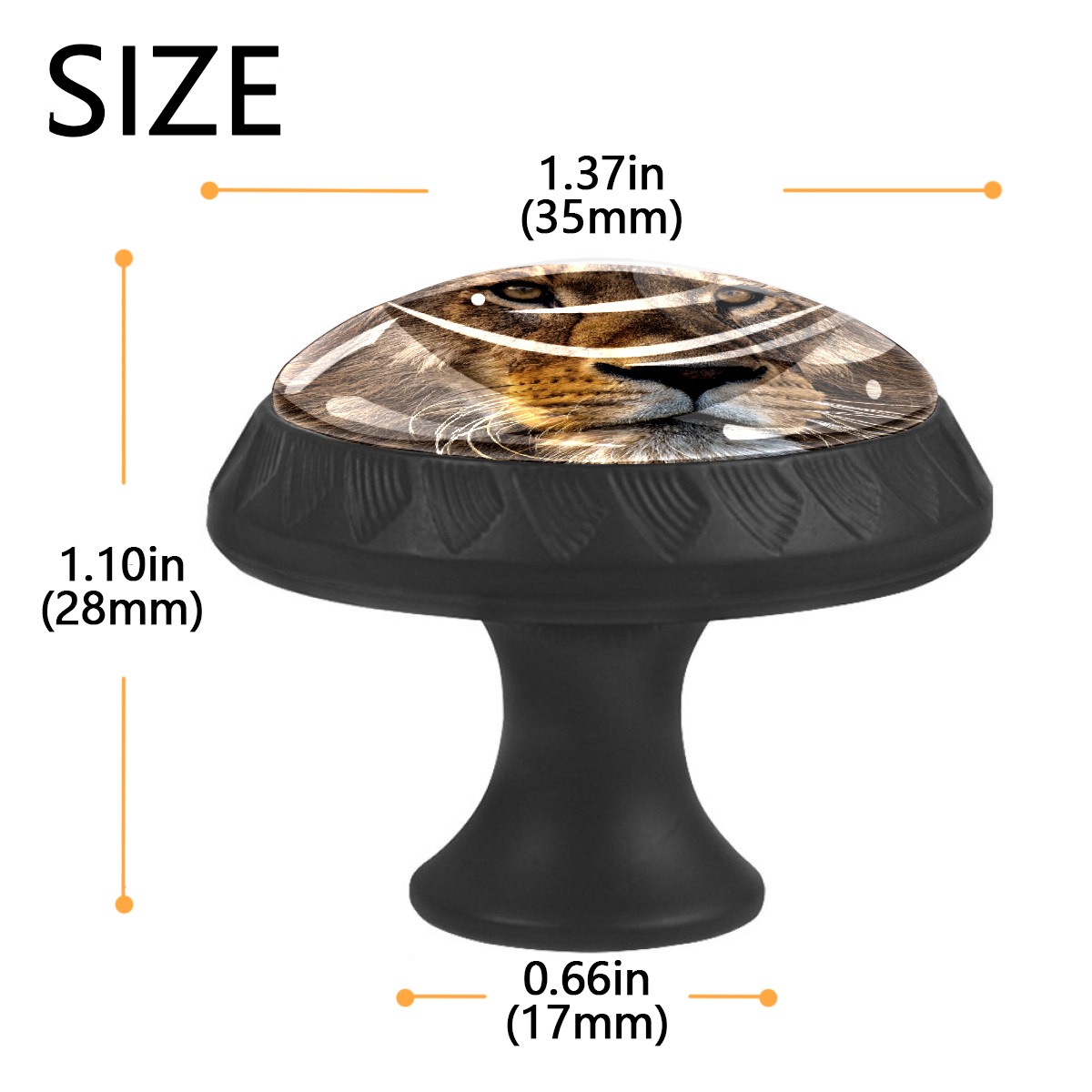 4 Pack Cabinet Knobs Animal Lion Drawer Pulls Black Crystal Glass Knobs for Dresser Kitchen Bathroom Cabinet Cupboard Wardrobe Pulls Handles Round