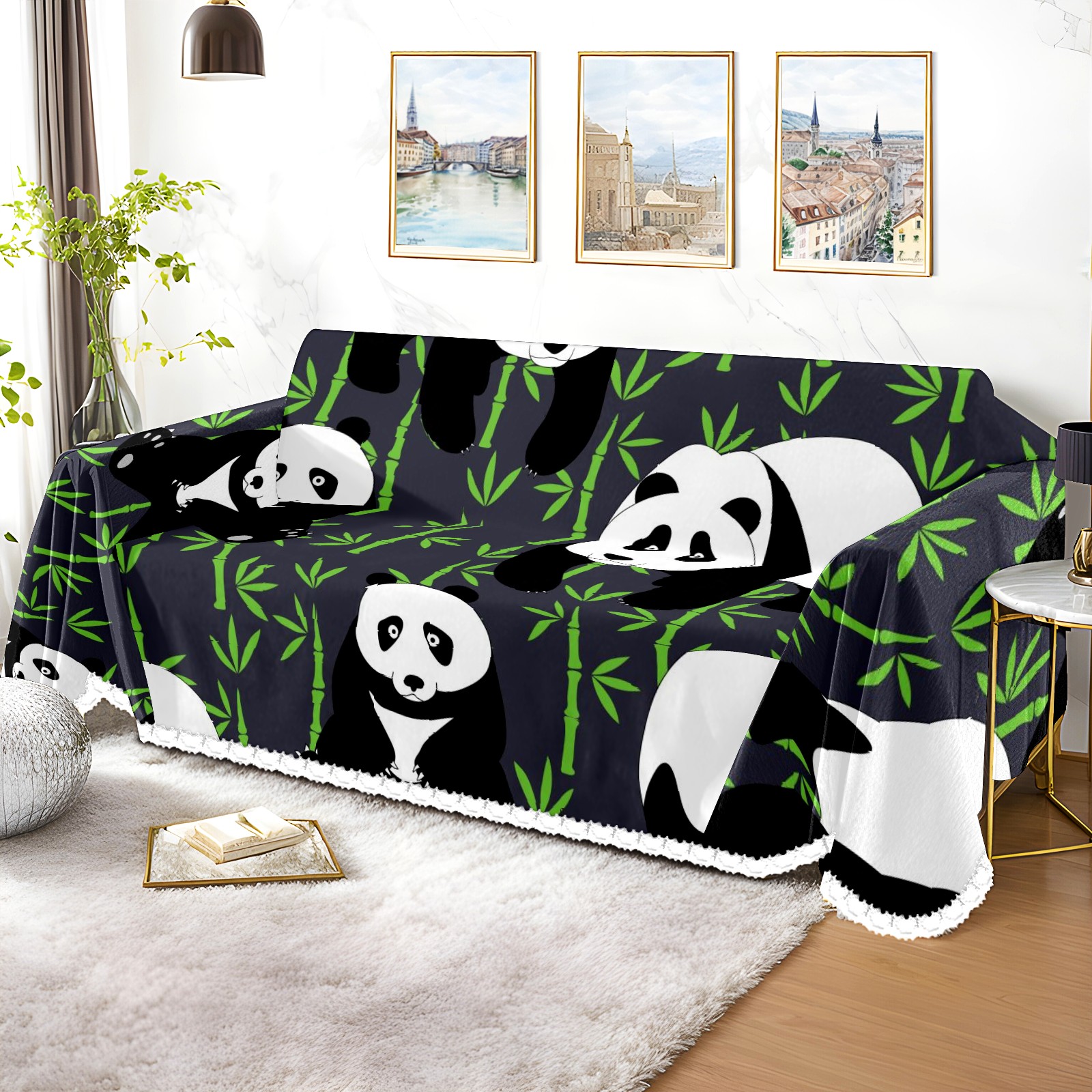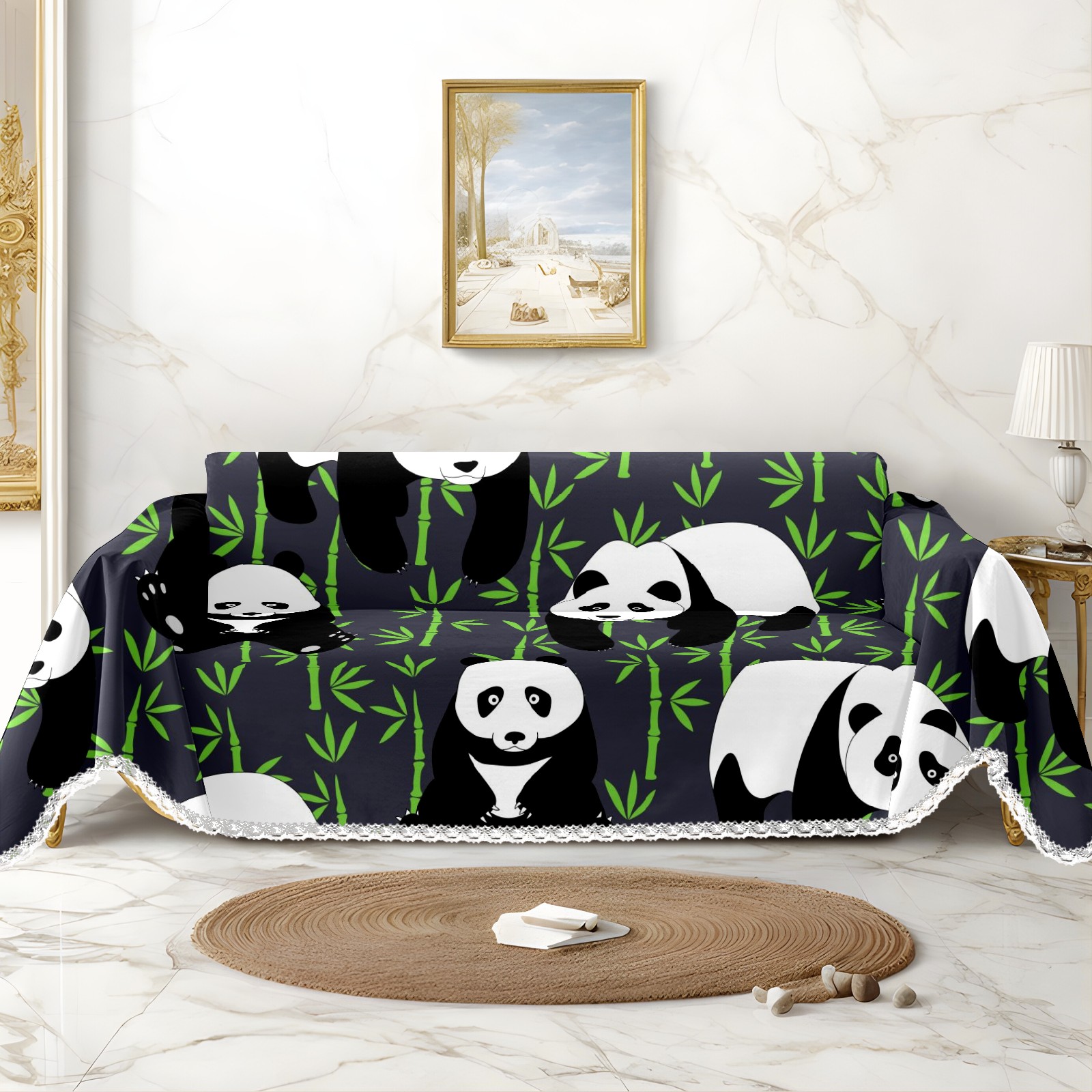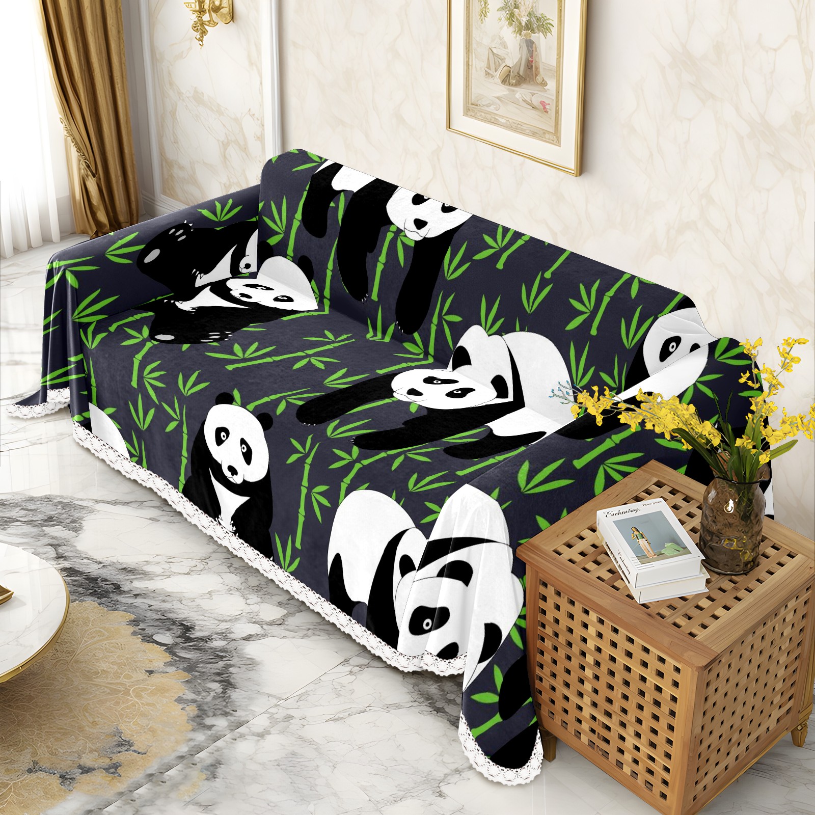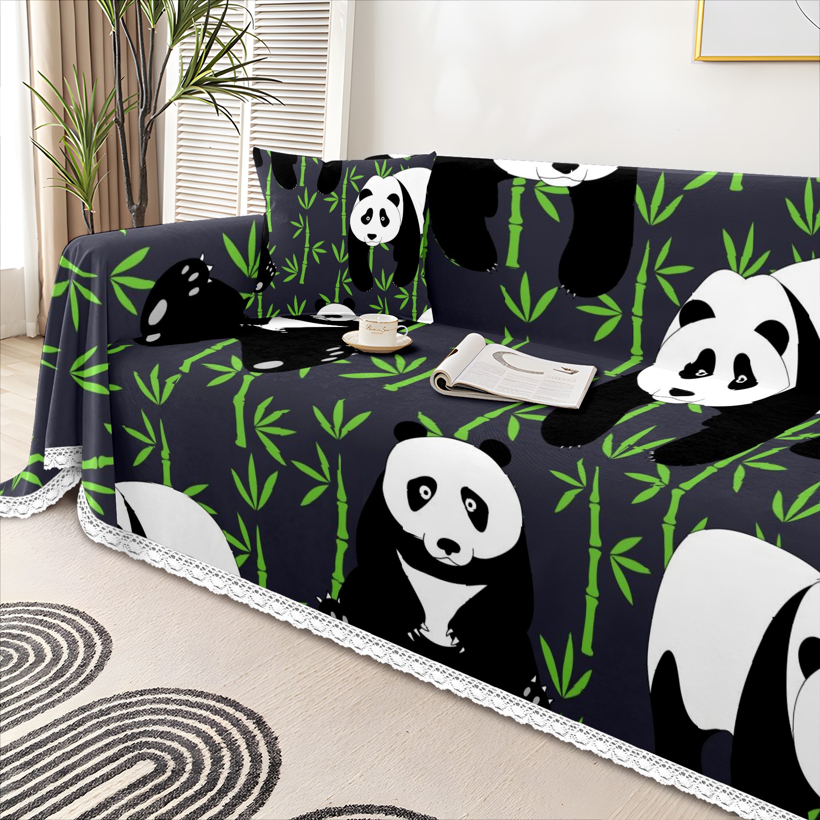 Panda Banboo Pattern Sofa Cover-Soft Poly-Cotton Blend, Machine Washable Couch Protector for Home Decor - 71x91 in Couch Covers
