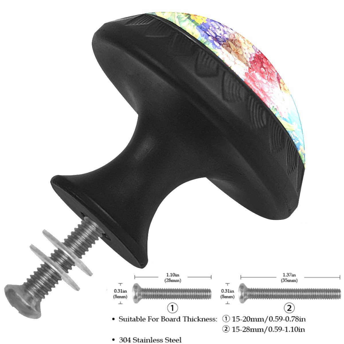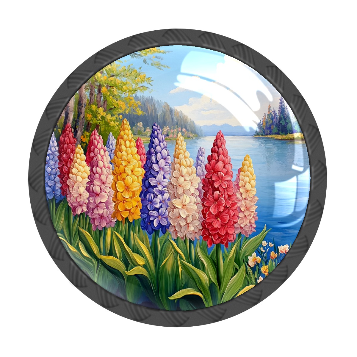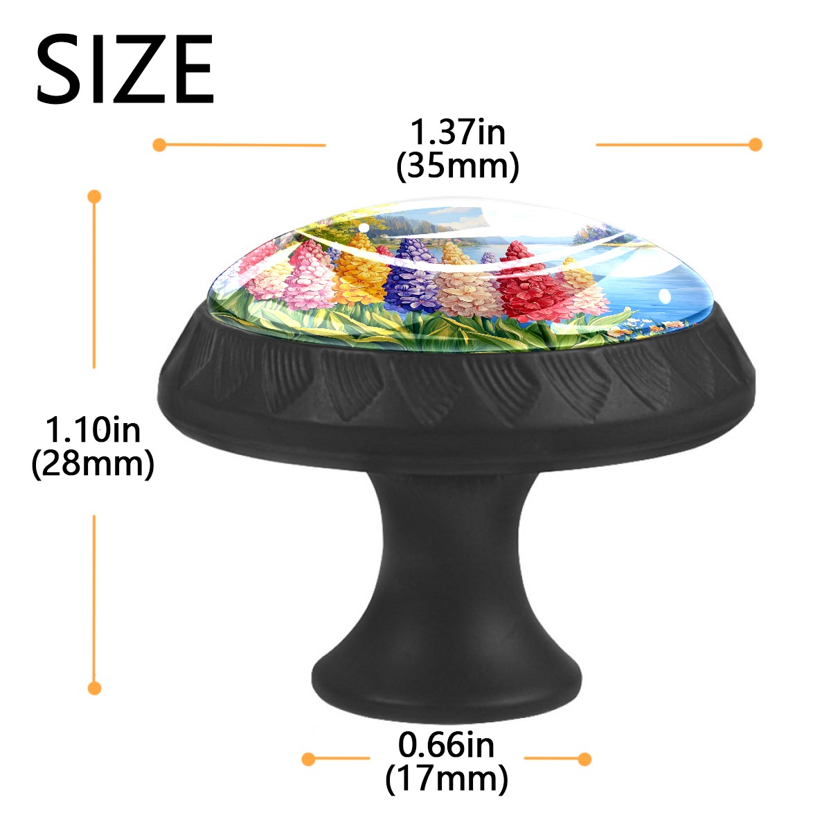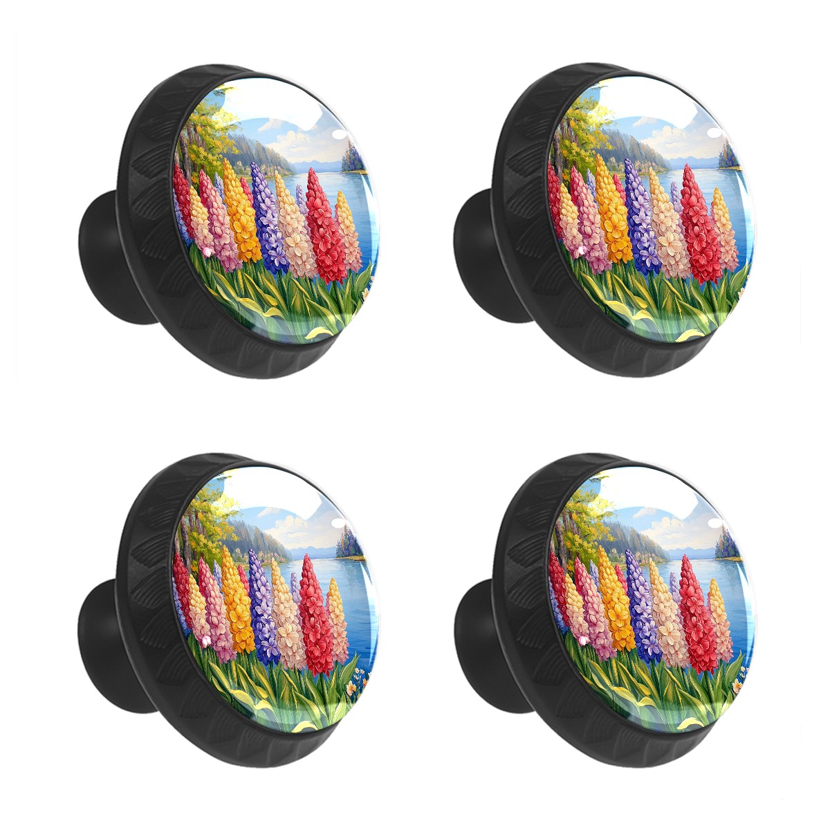 4 Pack Cabinet Drawer Knobs Colorful Hyacinths Flowers Crystal Glass Pull Knobs for Dresser Bathroom Kitchen Cabinet Cupboard Wardrobe Pulls Handles Black Round, 1-3/8''