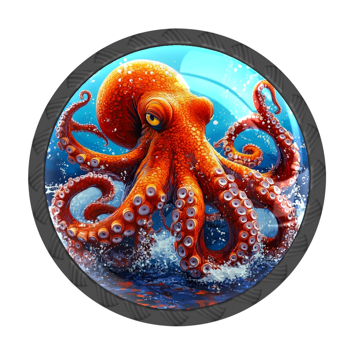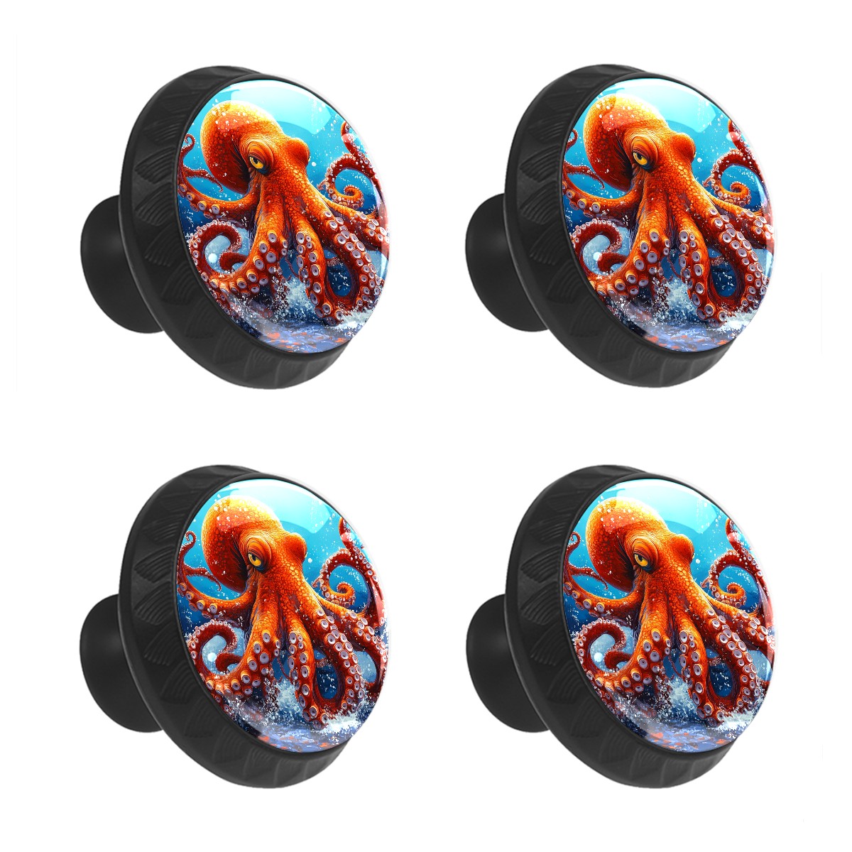 4 Pack Cabinet Drawer Knobs Red Octopus Crystal Glass Pull Knobs for Dresser Bathroom Kitchen Cabinet Cupboard Wardrobe Pulls Handles Black Round, 1-3/8''