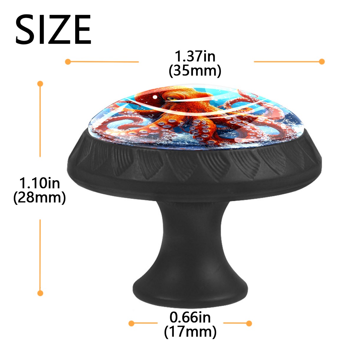 <p><b>Package Includes:</b></p> <p>Drawer Knobs x 4</p> <p>1.10 Inches Mounting Screws x 4</p> <p>1.37 Inches Mounting Screws x 4</p> <p><br></p> <p>Crystal Glass Diameter: 1.37 inches (35mm)</p> <p>Knob Height: 1.10 inches (28mm)</p> <p>Base Diameter: 0.66 inches (17mm)</p> <p><br></p> <p><b>Practical and Aesthetic:</b></p> <p>The cute drawer pulls combine the durability of an ABS base with the high transparency of glass, enhanced by unique patterns that add decoration and cuteness. It’s both practical and visually appealing.</p> <p><b>Pattern Design:</b></p> <p>Clear patterns add decoration and personalization. They enhance visual appeal and can match different home styles, meeting diverse design needs.</p> <p><b>Easy Installation:</b></p> <p>Equipped with mounting screws, the ABS base can be securely attached to the drawer with ease.</p> <p><b>Easy Cleaning:</b></p> <p>The smooth surface of the round glass pull resists dust and stains, making it easy to clean with just a damp cloth.</p> <p><b>Wear-Resistant:</b></p> <p>The cabinet knobs are designed to resist scratches and fading, maintaining their good appearance over long-term use.</p>