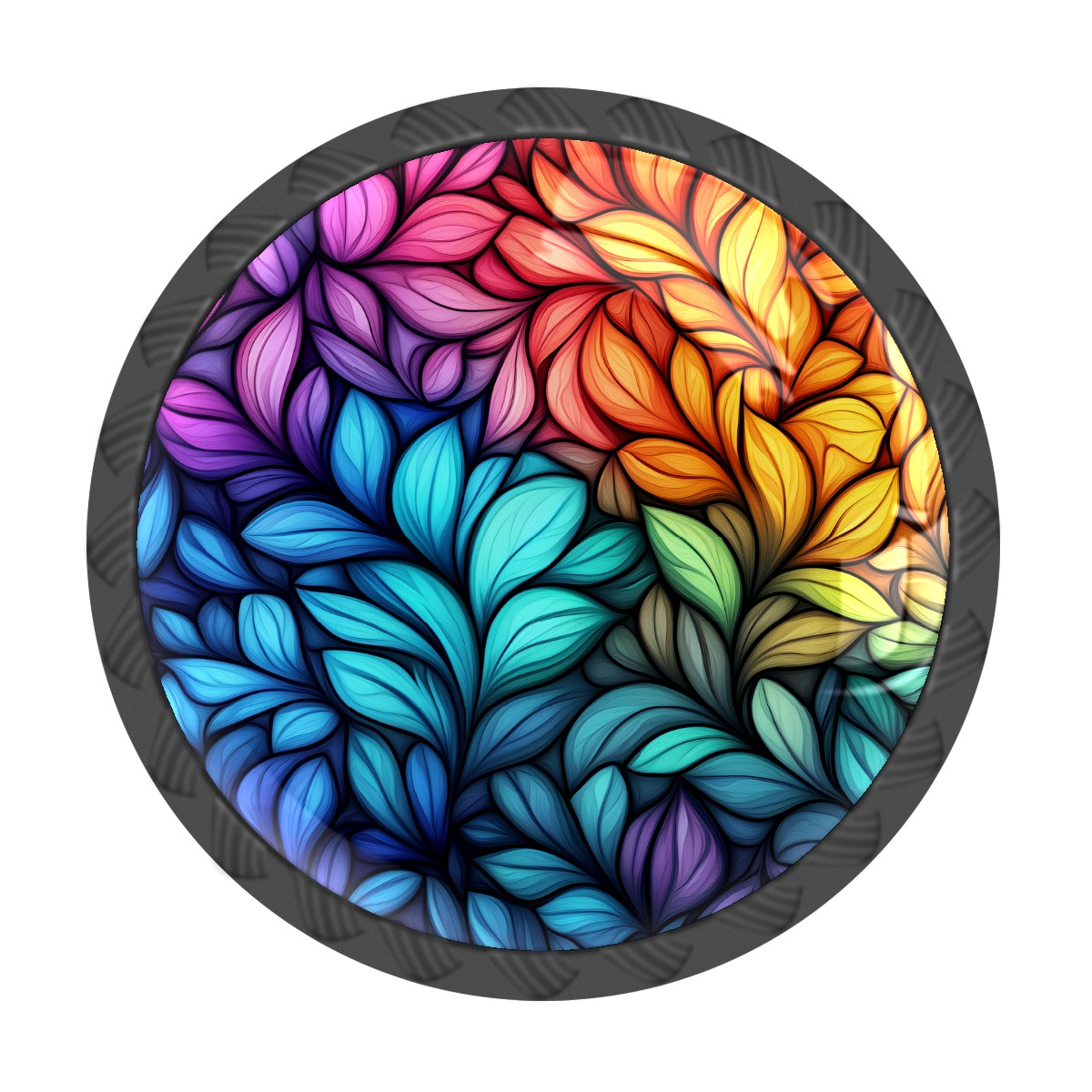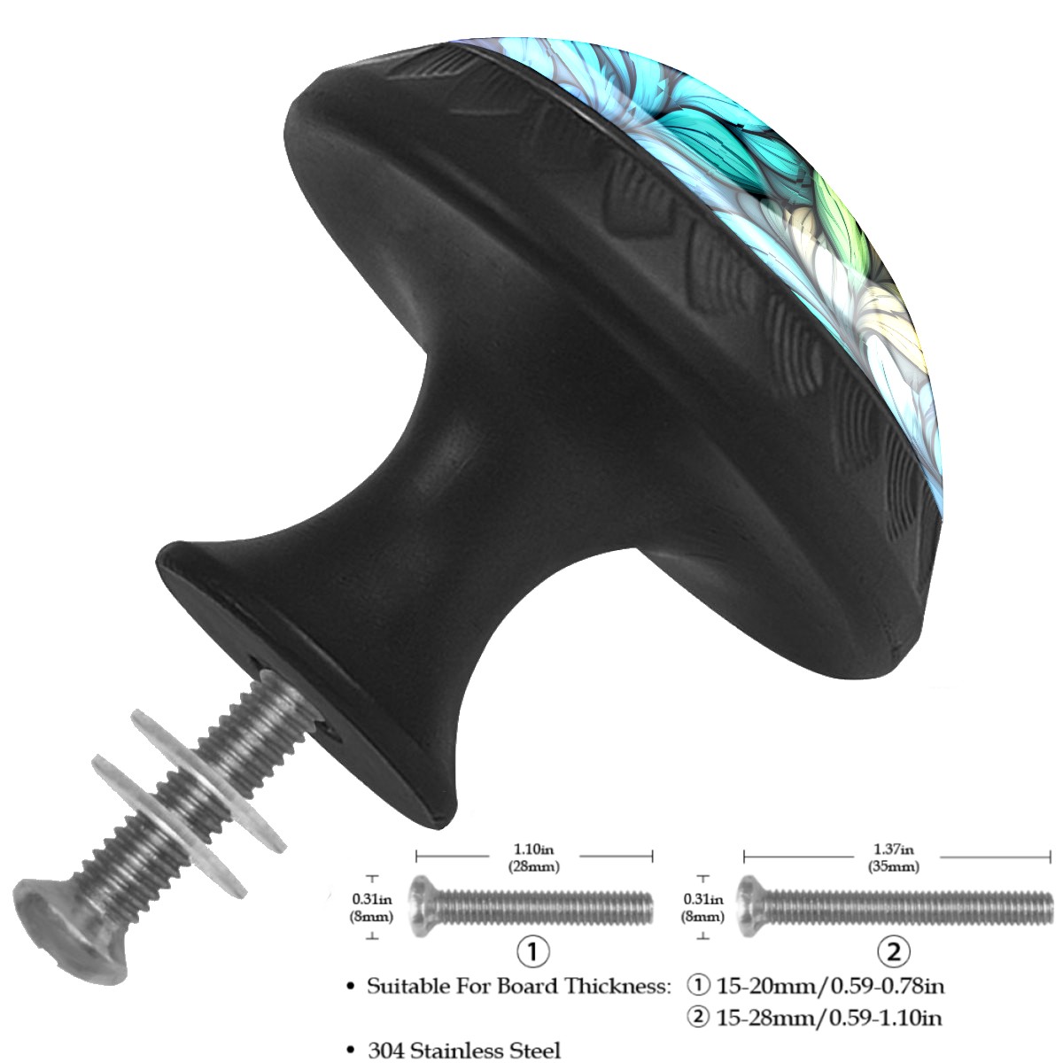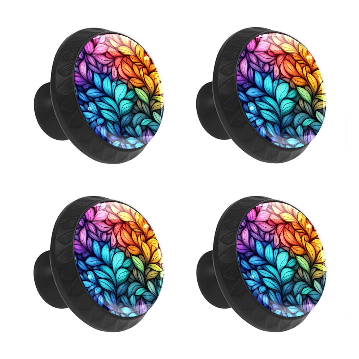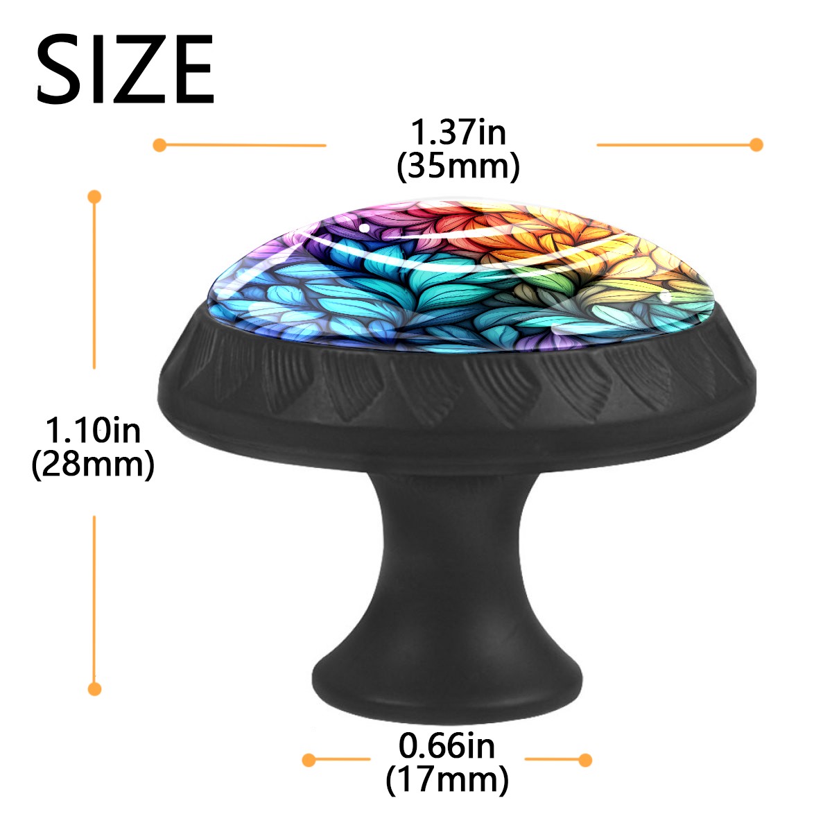 4 Pack Cabinet Drawer Knobs Colorful Leaves Crystal Glass Pull Knobs for Dresser Bathroom Kitchen Cabinet Cupboard Wardrobe Pulls Handles Black Round, 1-3/8''