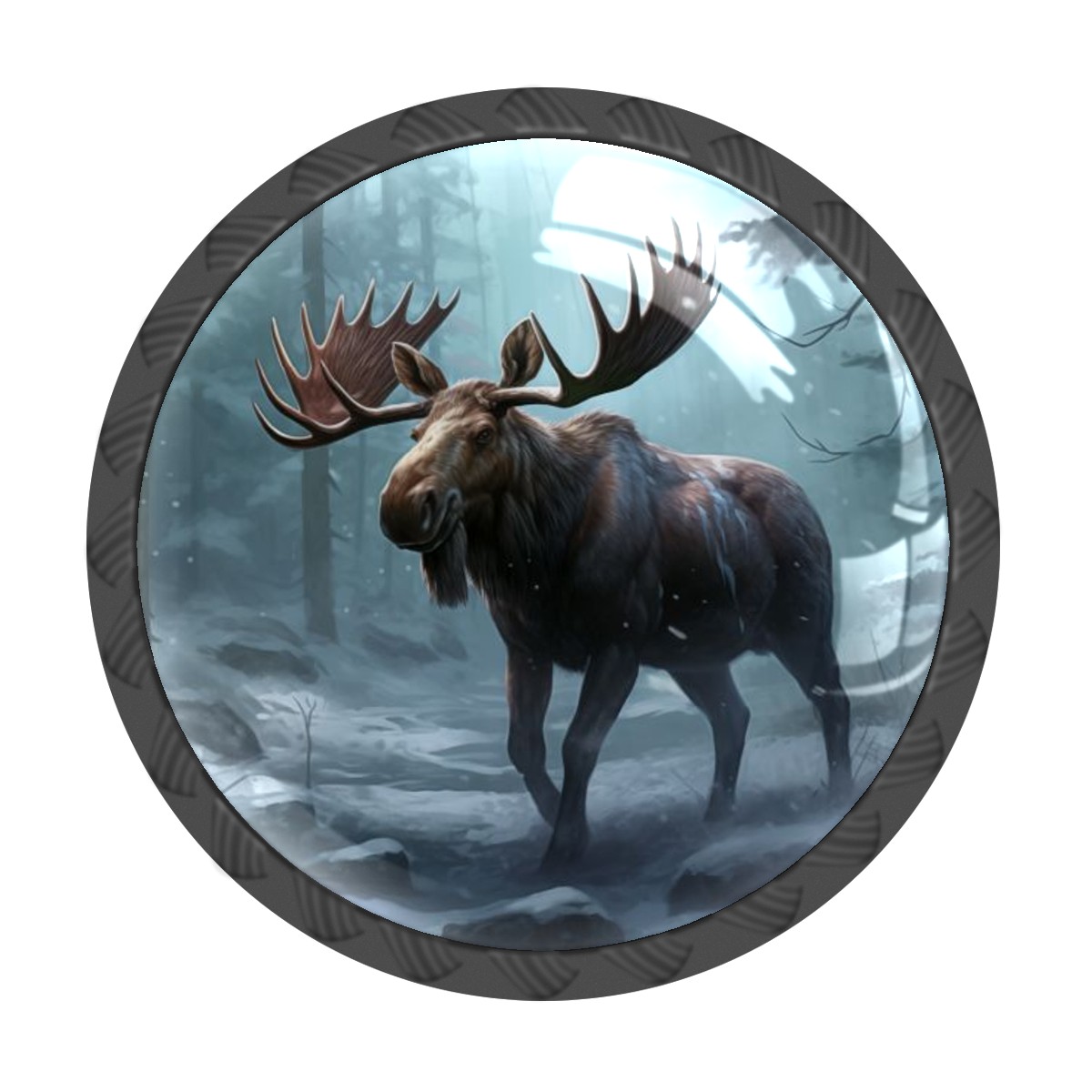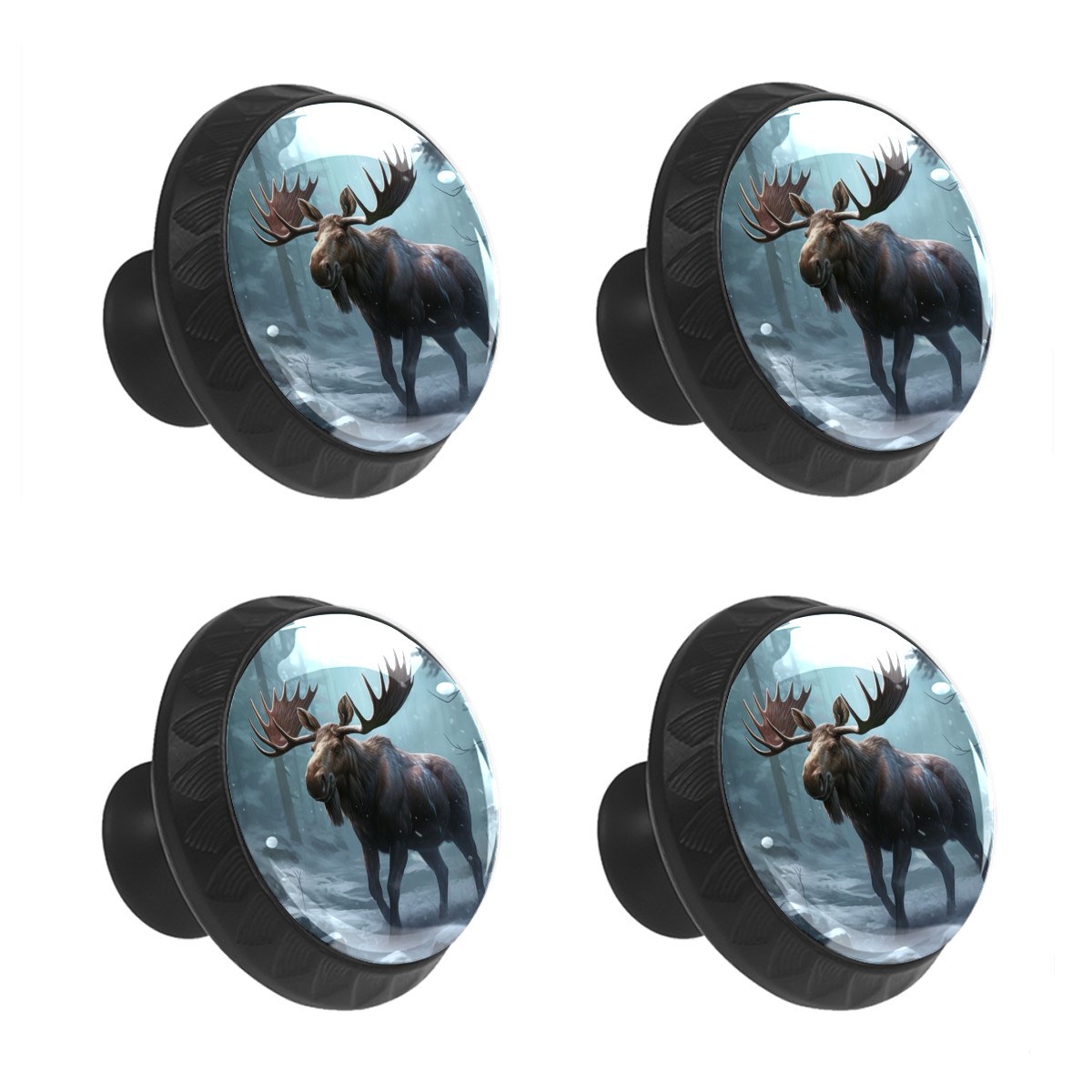 4 Pack Cabinet Drawer Knobs Moose Forest Winter Crystal Glass Pull Knobs for Dresser Bathroom Kitchen Cabinet Cupboard Wardrobe Pulls Handles Black Round, 1-3/8''