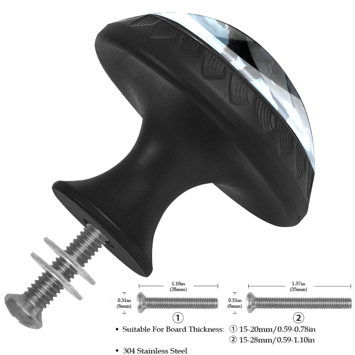 • <p><b>Package Includes:</b></p> <p>Drawer Knobs x 4</p> <p>1.10 Inches Mounting Screws x 4</p> <p>1.37 Inches Mounting Screws x 4</p> <p><br></p> <p>Crystal Glass Diameter: 1.37 inches (35mm)</p> <p>Knob Height: 1.10 inches (28mm)</p> <p>Base Diameter: 0.66 inches (17mm)</p> <p><br></p> <p><b>Practical and Aesthetic:</b></p> <p>The cute drawer pulls combine the durability of an ABS base with the high transparency of glass, enhanced by unique patterns that add decoration and cuteness. It’s both practical and visually appealing.</p> <p><b>Pattern Design:</b></p> <p>Clear patterns add decoration and personalization. They enhance visual appeal and can match different home styles, meeting diverse design needs.</p> <p><b>Easy Installation:</b></p> <p>Equipped with mounting screws, the ABS base can be securely attached to the drawer with ease.</p> <p><b>Easy Cleaning:</b></p> <p>The smooth surface of the round glass pull resists dust and stains, making it easy to clean with just a damp cloth.</p> <p><b>Wear-Resistant:</b></p> <p>The cabinet knobs are designed to resist scratches and fading, maintaining their good appearance over long-term use.</p>