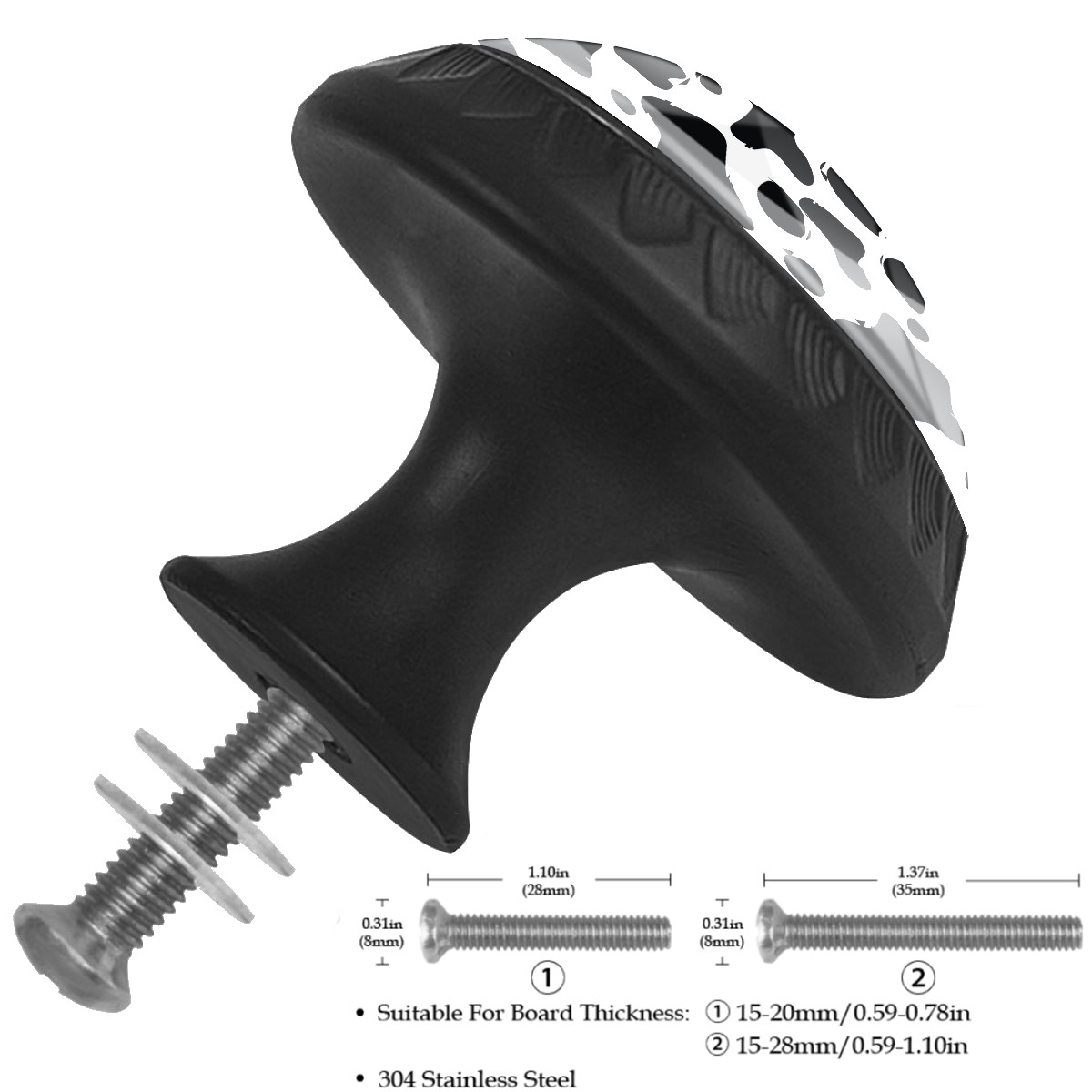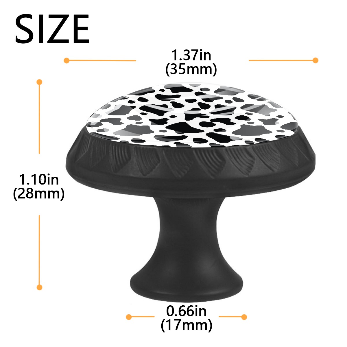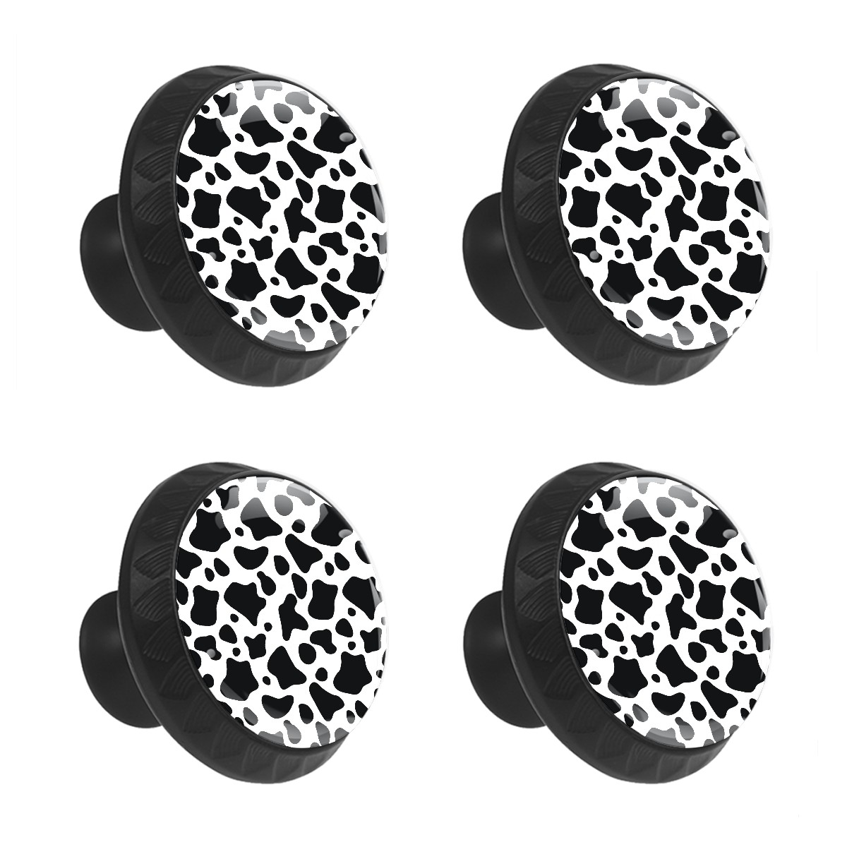 4 Pack Cabinet Drawer Knobs Cow Print Crystal Glass Pull Knobs for Dresser Bathroom Kitchen Cabinet Cupboard Wardrobe Pulls Handles Black Round, 1-3/8''