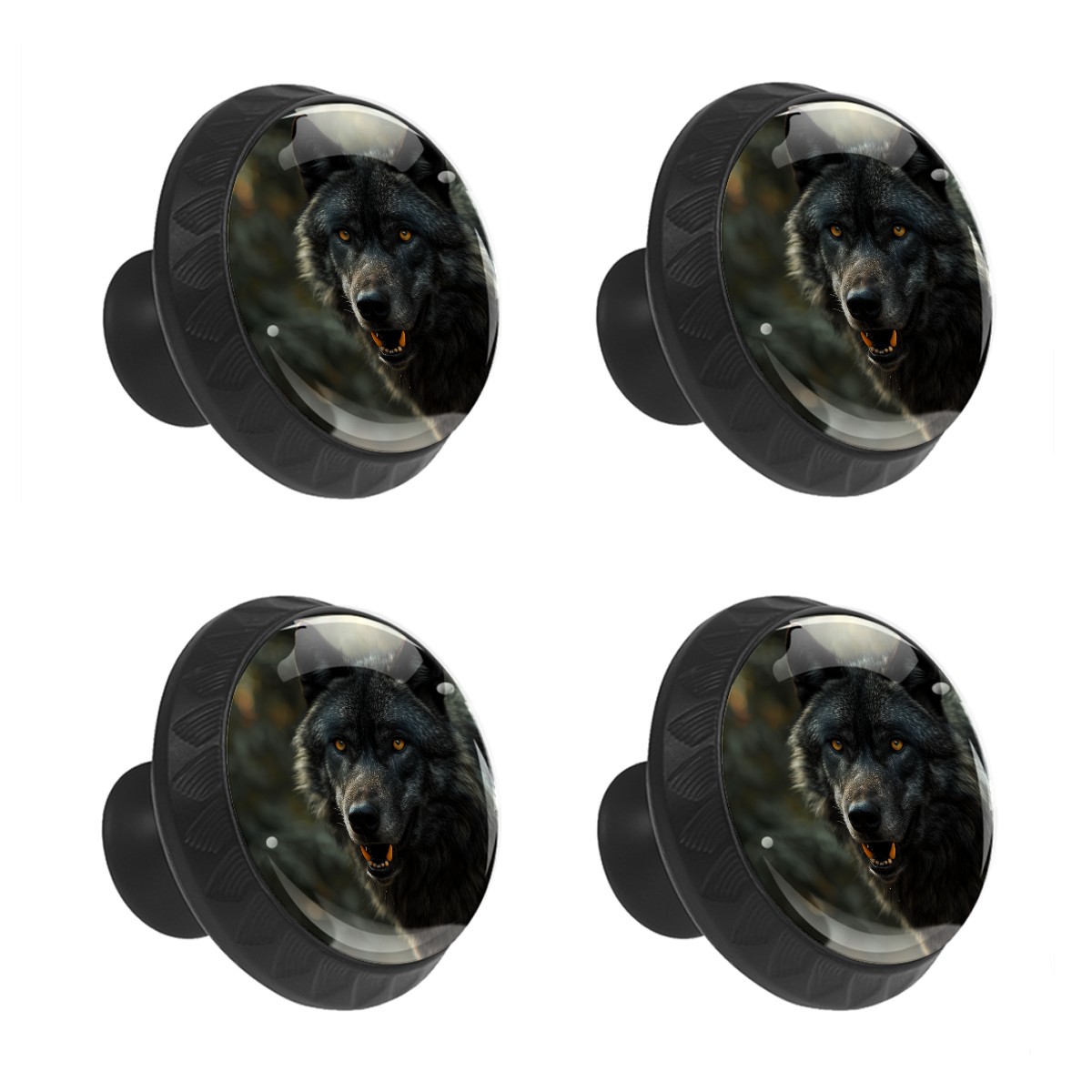 4 Pack Cabinet Drawer Knobs Black Wolf Crystal Glass Pull Knobs for Dresser Bathroom Kitchen Cabinet Cupboard Wardrobe Pulls Handles Black Round, 1-3/8''