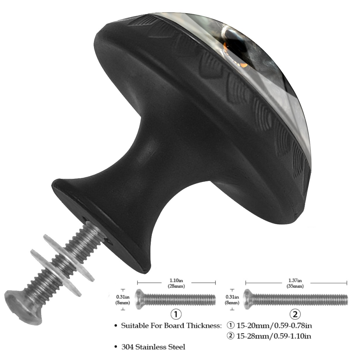 <p><b>Package Includes:</b></p> <p>Drawer Knobs x 4</p> <p>1.10 Inches Mounting Screws x 4</p> <p>1.37 Inches Mounting Screws x 4</p> <p><br></p> <p>Crystal Glass Diameter: 1.37 inches (35mm)</p> <p>Knob Height: 1.10 inches (28mm)</p> <p>Base Diameter: 0.66 inches (17mm)</p> <p><br></p> <p><b>Practical and Aesthetic:</b></p> <p>The cute drawer pulls combine the durability of an ABS base with the high transparency of glass, enhanced by unique patterns that add decoration and cuteness. It’s both practical and visually appealing.</p> <p><b>Pattern Design:</b></p> <p>Clear patterns add decoration and personalization. They enhance visual appeal and can match different home styles, meeting diverse design needs.</p> <p><b>Easy Installation:</b></p> <p>Equipped with mounting screws, the ABS base can be securely attached to the drawer with ease.</p> <p><b>Easy Cleaning:</b></p> <p>The smooth surface of the round glass pull resists dust and stains, making it easy to clean with just a damp cloth.</p> <p><b>Wear-Resistant:</b></p> <p>The cabinet knobs are designed to resist scratches and fading, maintaining their good appearance over long-term use.</p>