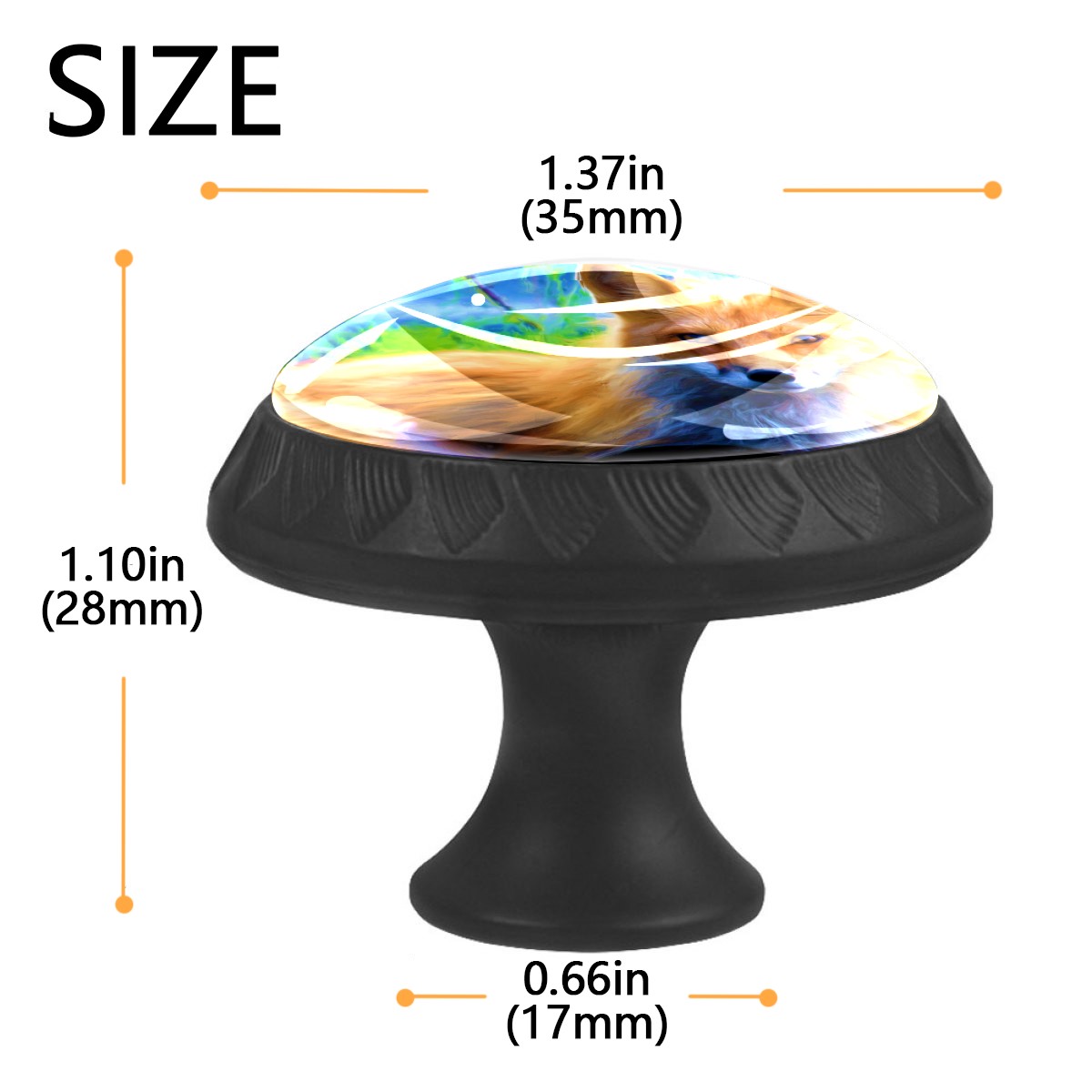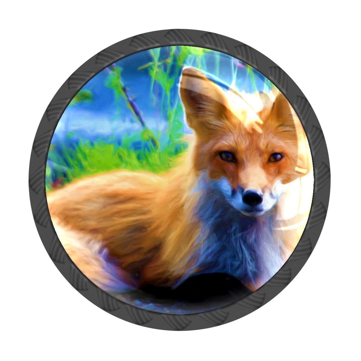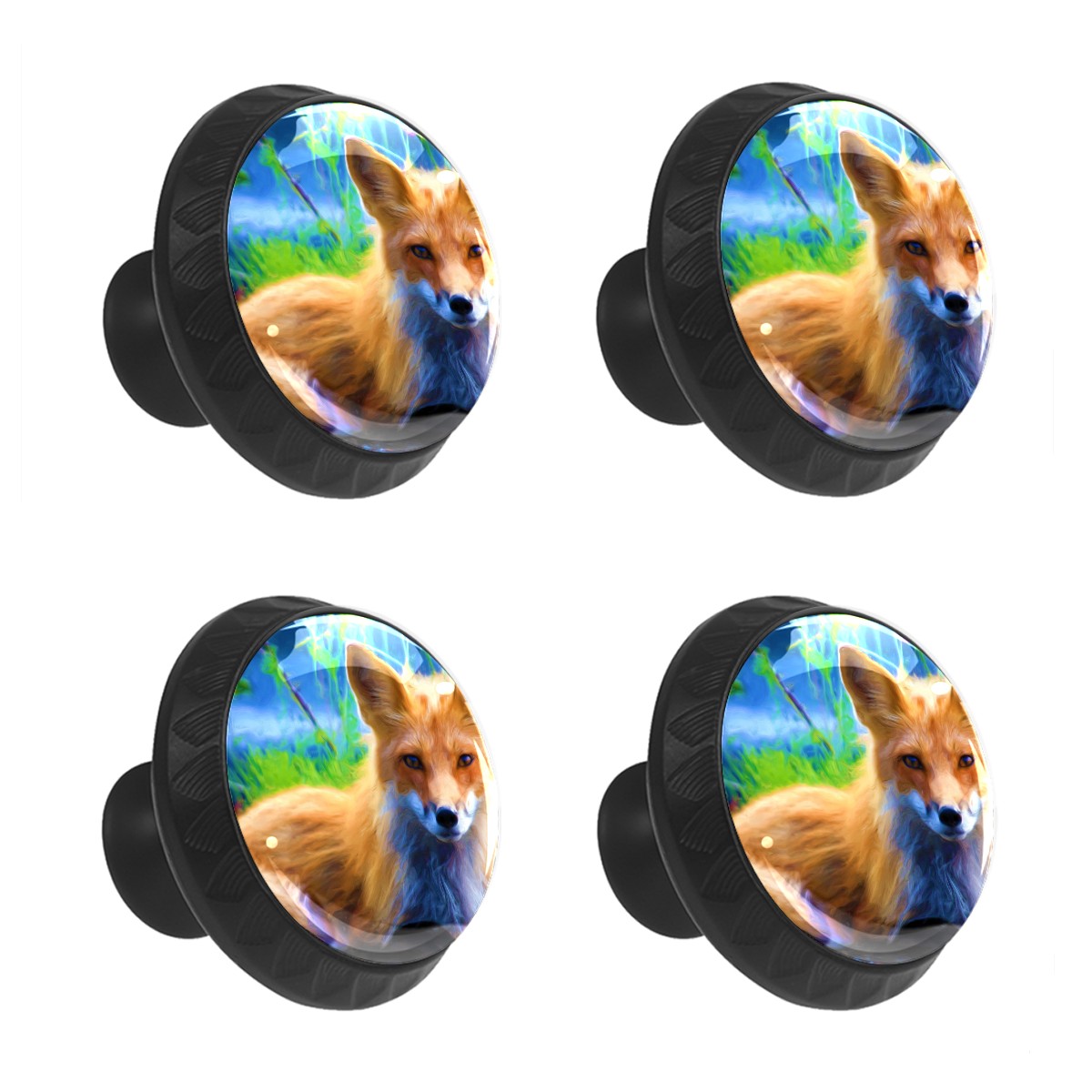 4 Pack Cabinet Drawer Knobs Cute Fox Animal Crystal Glass Pull Knobs for Dresser Bathroom Kitchen Cabinet Cupboard Wardrobe Pulls Handles Black Round, 1-3/8''