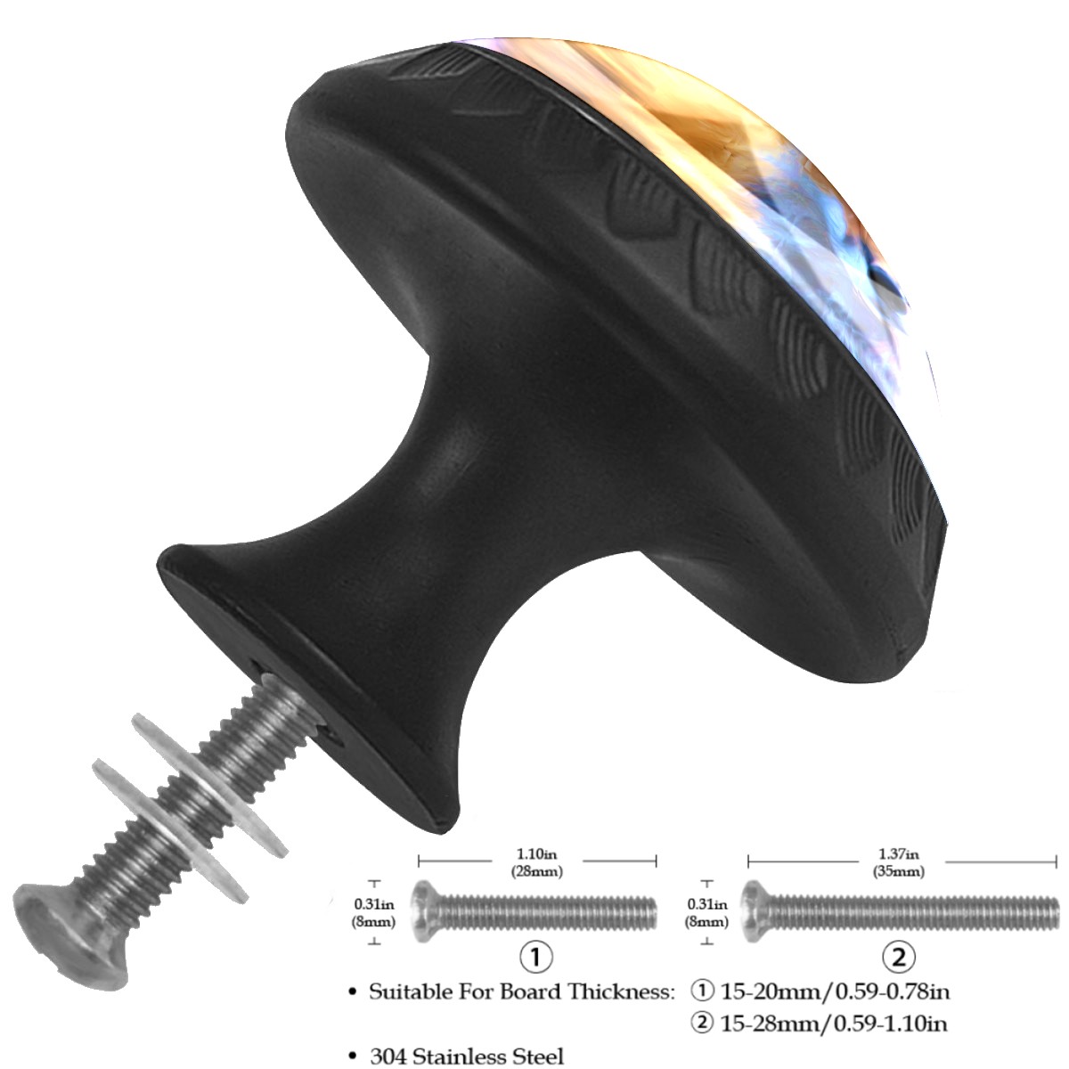 <p><b>Package Includes:</b></p> <p>Drawer Knobs x 4</p> <p>1.10 Inches Mounting Screws x 4</p> <p>1.37 Inches Mounting Screws x 4</p> <p><br></p> <p>Crystal Glass Diameter: 1.37 inches (35mm)</p> <p>Knob Height: 1.10 inches (28mm)</p> <p>Base Diameter: 0.66 inches (17mm)</p> <p><br></p> <p><b>Practical and Aesthetic:</b></p> <p>The cute drawer pulls combine the durability of an ABS base with the high transparency of glass, enhanced by unique patterns that add decoration and cuteness. It’s both practical and visually appealing.</p> <p><b>Pattern Design:</b></p> <p>Clear patterns add decoration and personalization. They enhance visual appeal and can match different home styles, meeting diverse design needs.</p> <p><b>Easy Installation:</b></p> <p>Equipped with mounting screws, the ABS base can be securely attached to the drawer with ease.</p> <p><b>Easy Cleaning:</b></p> <p>The smooth surface of the round glass pull resists dust and stains, making it easy to clean with just a damp cloth.</p> <p><b>Wear-Resistant:</b></p> <p>The cabinet knobs are designed to resist scratches and fading, maintaining their good appearance over long-term use.</p>