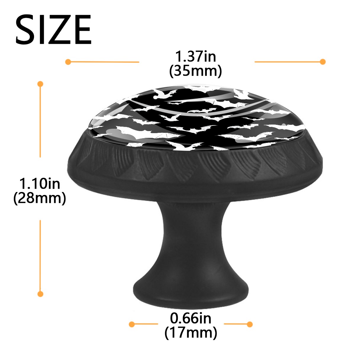 4 Pack Cabinet Drawer Knobs Black And White Goth Bats Crystal Glass Pull Knobs for Dresser Bathroom Kitchen Cabinet Cupboard Wardrobe Pulls Handles Black Round, 1-3/8''
