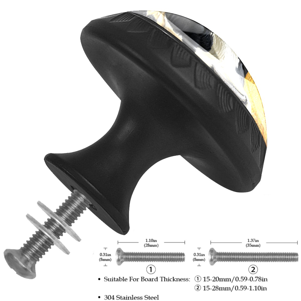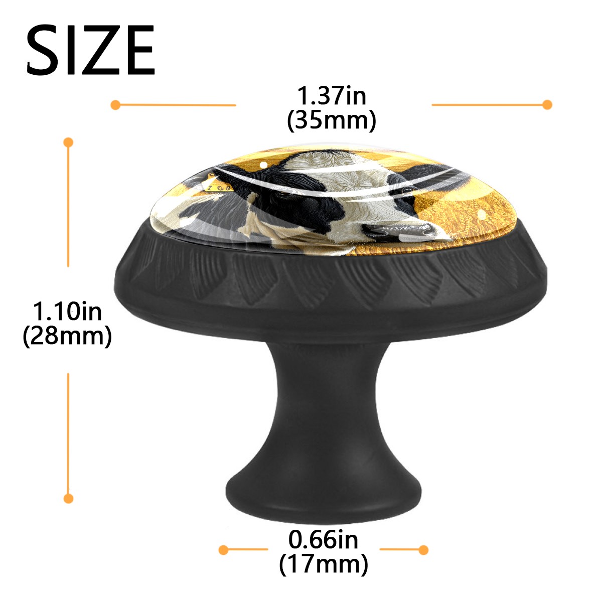 <p><b>Package Includes:</b></p> <p>Drawer Knobs x 4</p> <p>1.10 Inches Mounting Screws x 4</p> <p>1.37 Inches Mounting Screws x 4</p> <p><br></p> <p>Crystal Glass Diameter: 1.37 inches (35mm)</p> <p>Knob Height: 1.10 inches (28mm)</p> <p>Base Diameter: 0.66 inches (17mm)</p> <p><br></p> <p><b>Practical and Aesthetic:</b></p> <p>The cute drawer pulls combine the durability of an ABS base with the high transparency of glass, enhanced by unique patterns that add decoration and cuteness. It’s both practical and visually appealing.</p> <p><b>Pattern Design:</b></p> <p>Clear patterns add decoration and personalization. They enhance visual appeal and can match different home styles, meeting diverse design needs.</p> <p><b>Easy Installation:</b></p> <p>Equipped with mounting screws, the ABS base can be securely attached to the drawer with ease.</p> <p><b>Easy Cleaning:</b></p> <p>The smooth surface of the round glass pull resists dust and stains, making it easy to clean with just a damp cloth.</p> <p><b>Wear-Resistant:</b></p> <p>The cabinet knobs are designed to resist scratches and fading, maintaining their good appearance over long-term use.</p>
