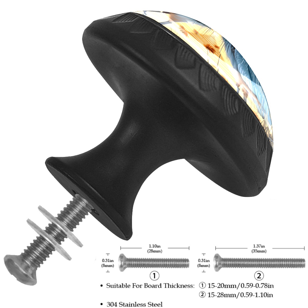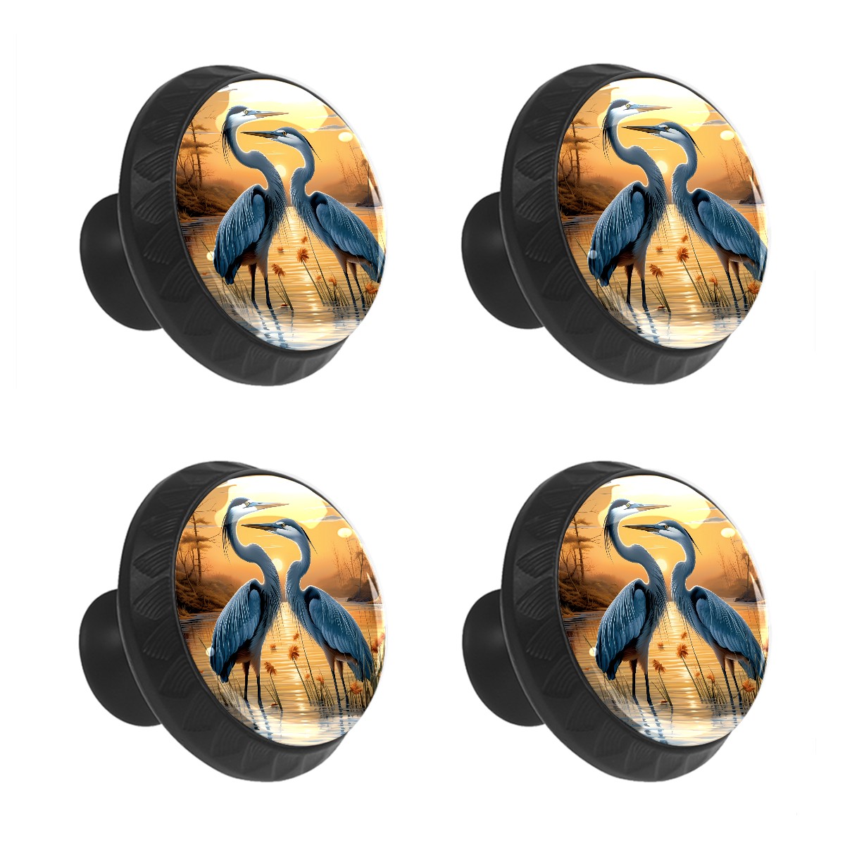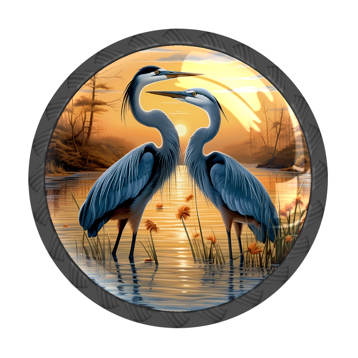 4 Pcs Drawer Knobs Two Blue Herons Standing Round Crystal Glass Knobs Pulls for Dressers Kitchen Cabinets Drawers Wardrobe Cupboard Furniture Hardware Handles