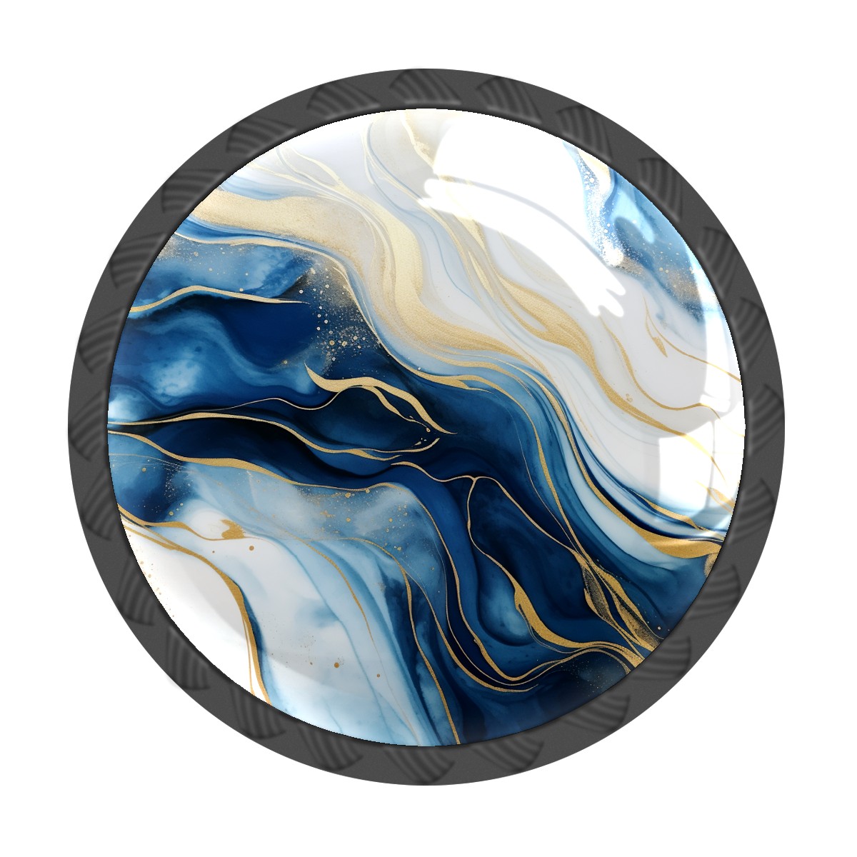 4 Pcs Drawer Knobs Marble Blue (1) Round Crystal Glass Knobs Pulls for Dressers Kitchen Cabinets Drawers Wardrobe Cupboard Furniture Hardware Handles