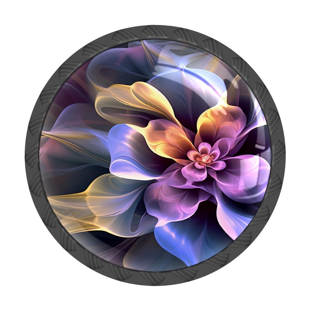 4 Pcs Drawer Knobs Bjkj_a_purple_flower_with_blue_and_yellow_swirls_in_the_style__9be9853f-a287-42ad-98f3-1db5bb62ddf7 (1) Round Crystal Glass Knobs Pulls for Dressers Kitchen Cabinets Drawers Wardrobe Cupboard Furniture Hardware Handles