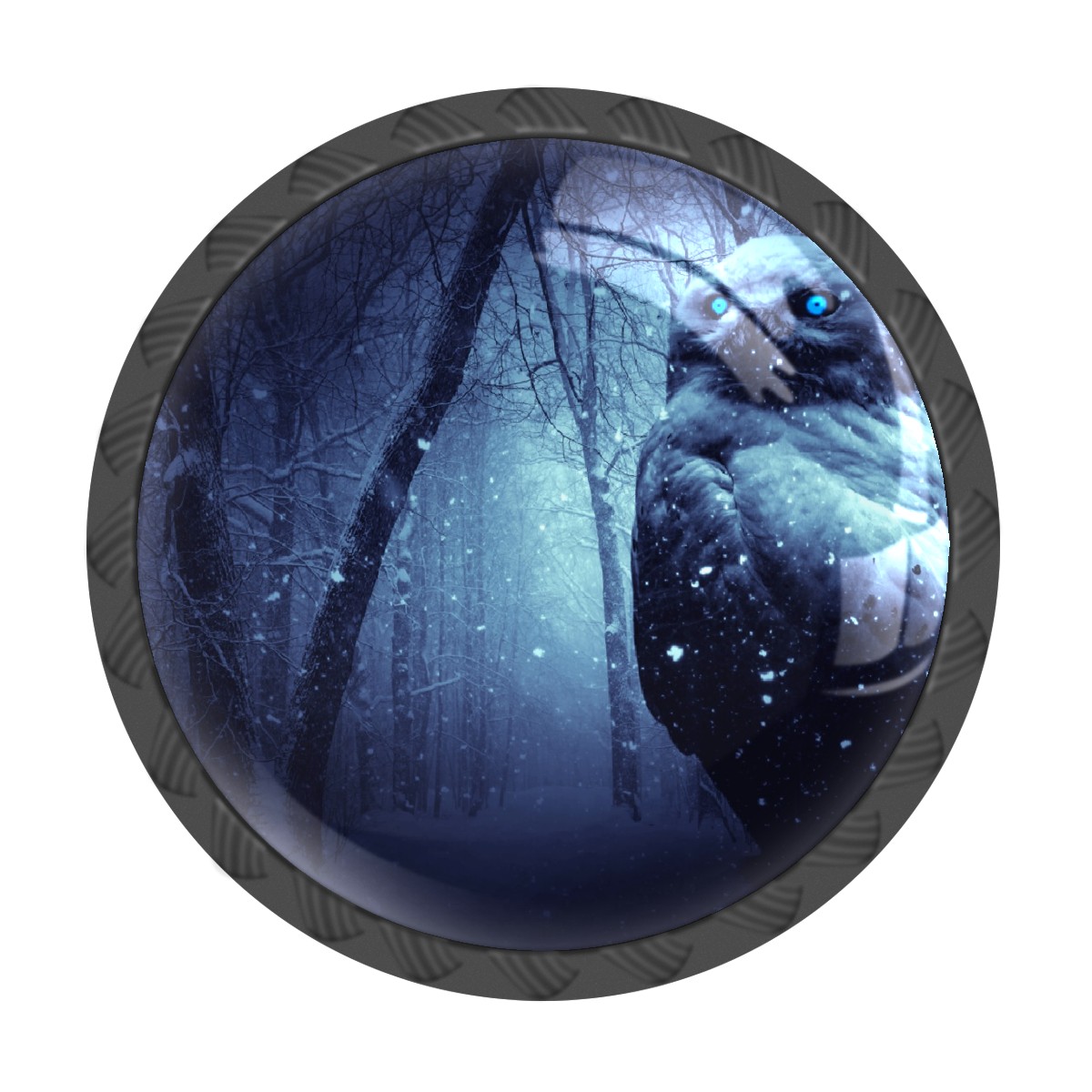 4 Pcs Drawer Knobs Owl-forest-winter-dark-night-blue-eyes-scary-snowfall-5k-5616x3744-910 Round Crystal Glass Knobs Pulls for Dressers Kitchen Cabinets Drawers Wardrobe Cupboard Furniture Hardware Handles