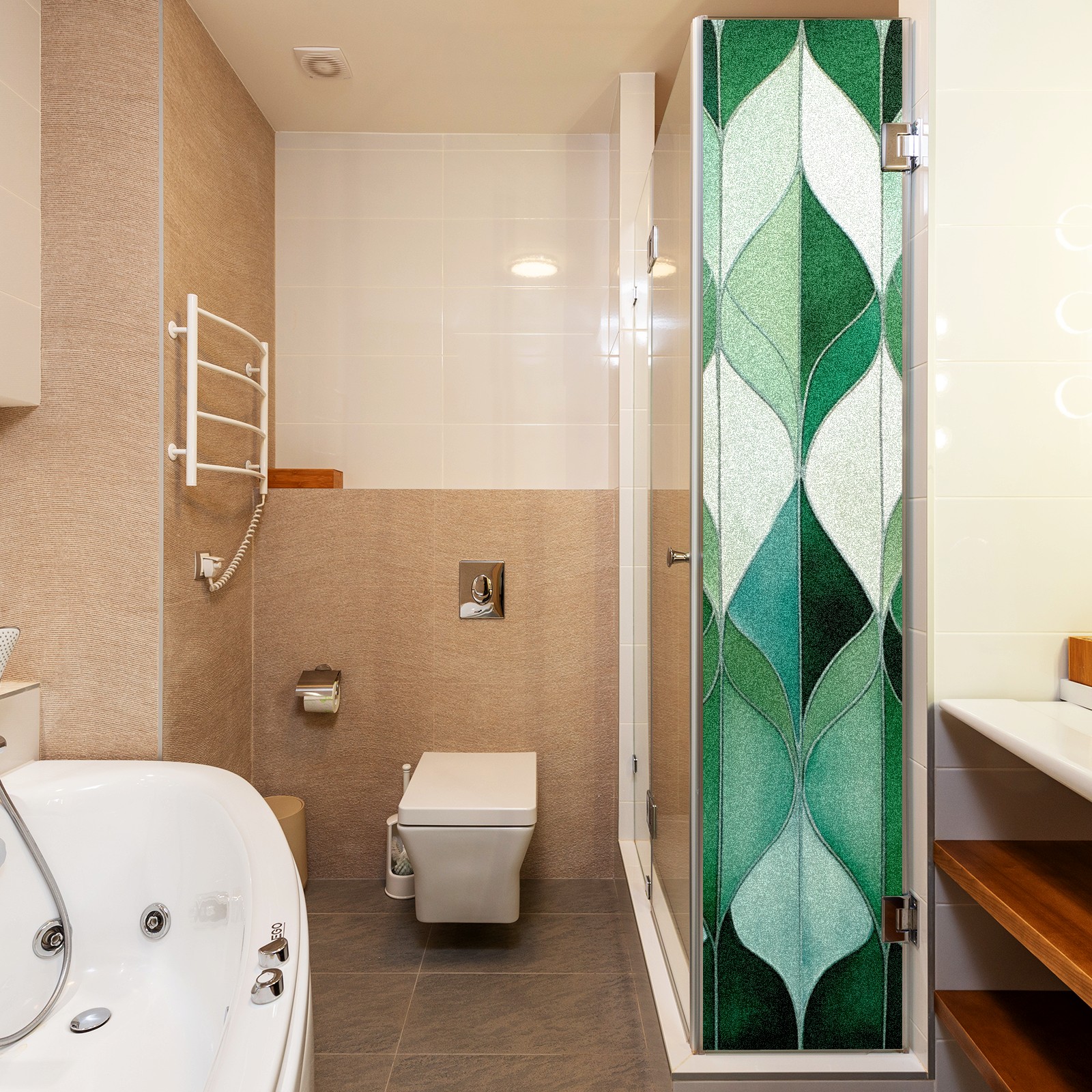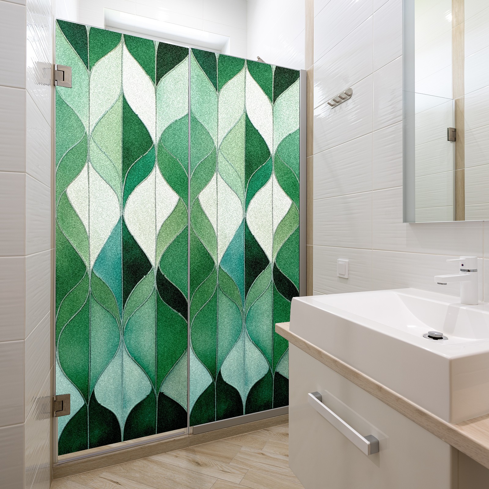 Window Privacy Film Frosted Stained Glass Film Decorative Static Cling for Bathroom Home Office Peel and Stick Window Film Stained Glass Green Leaves(17.7x23.6in)