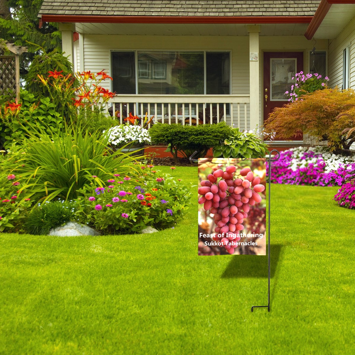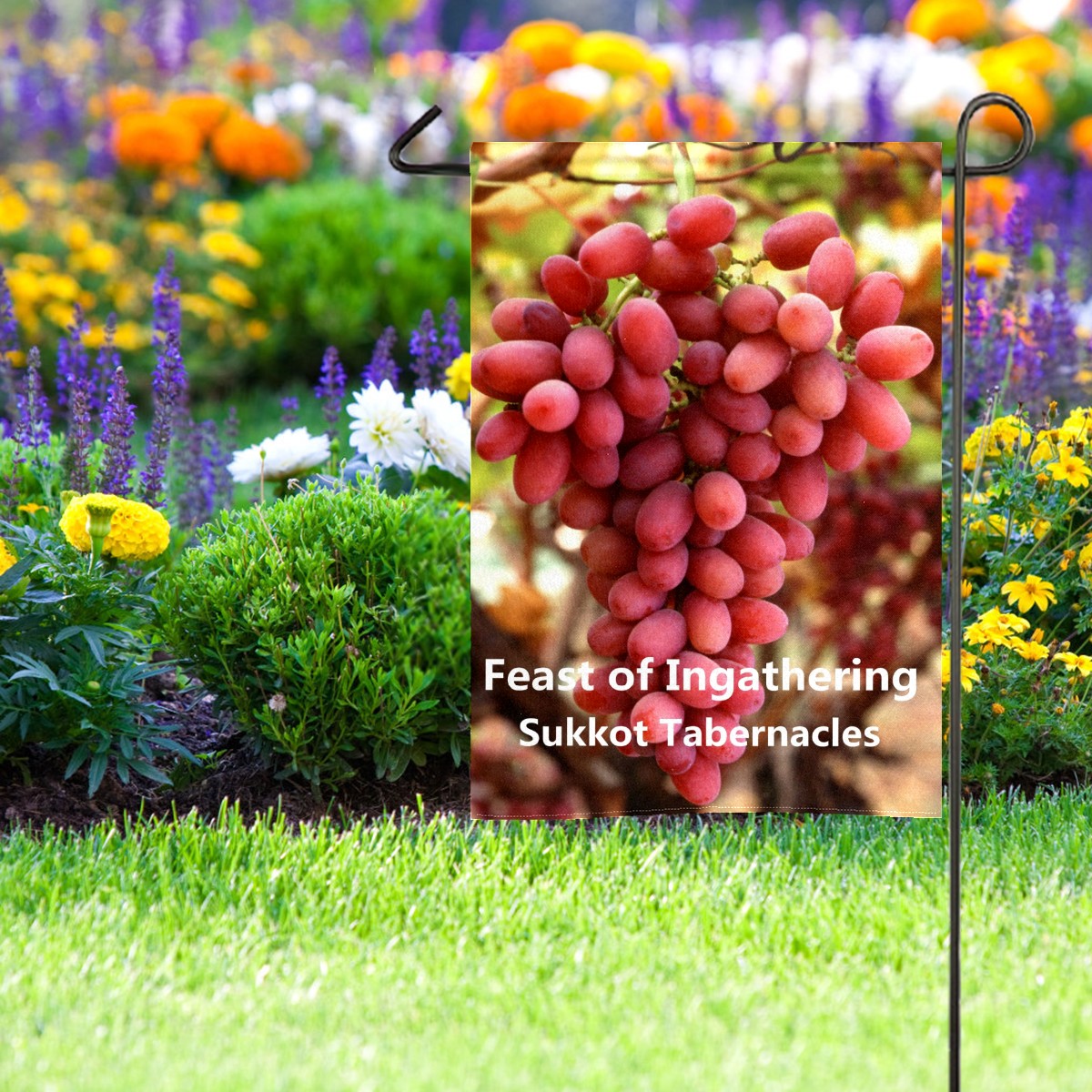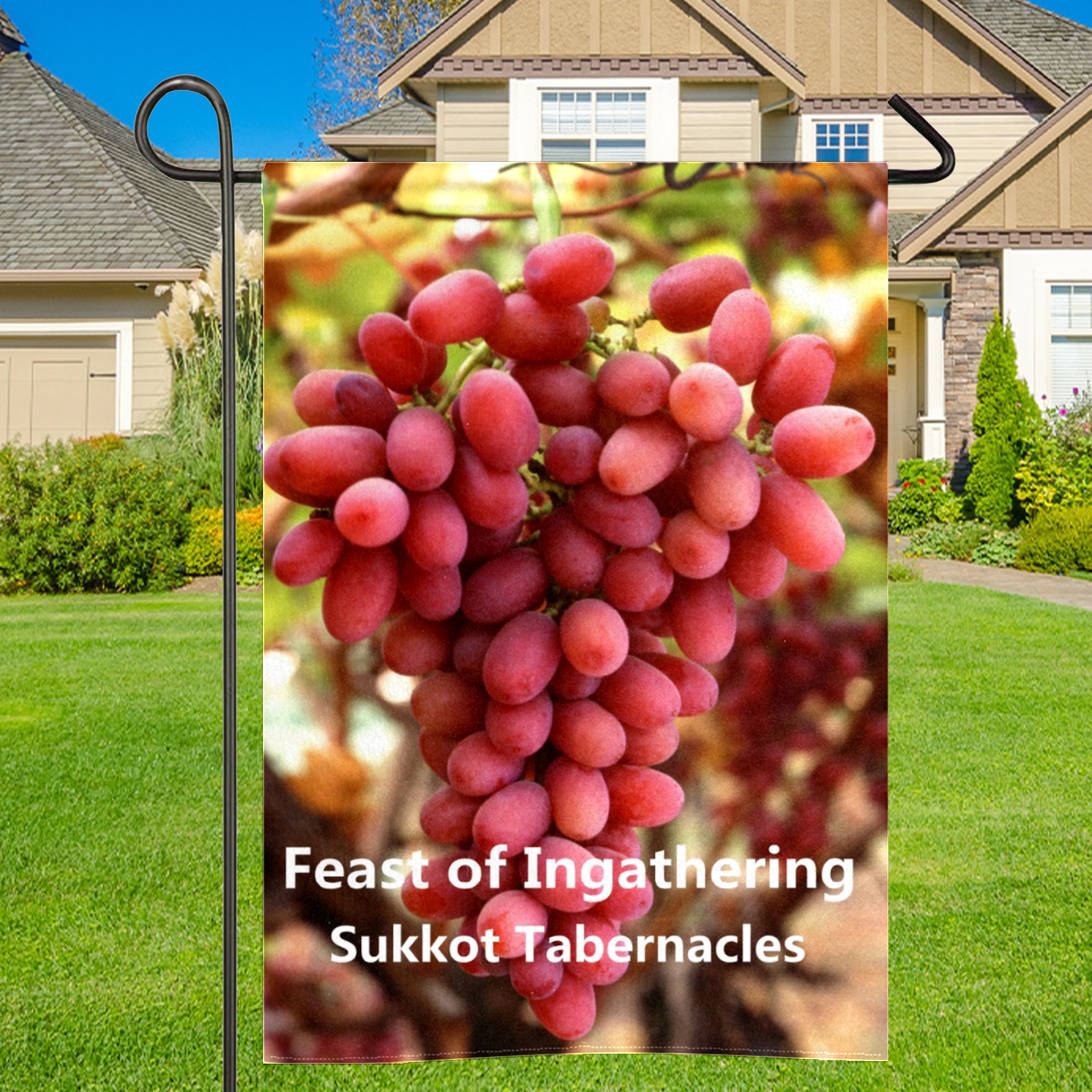 Feast Of Ingathering Sukkot Tabernacles Grape Waterproof Garden Flag for Outdoor Yard, Lawn, Porch Decor - All-Season Holiday Party/Patio Landscape Decoration (12x18 Inch)