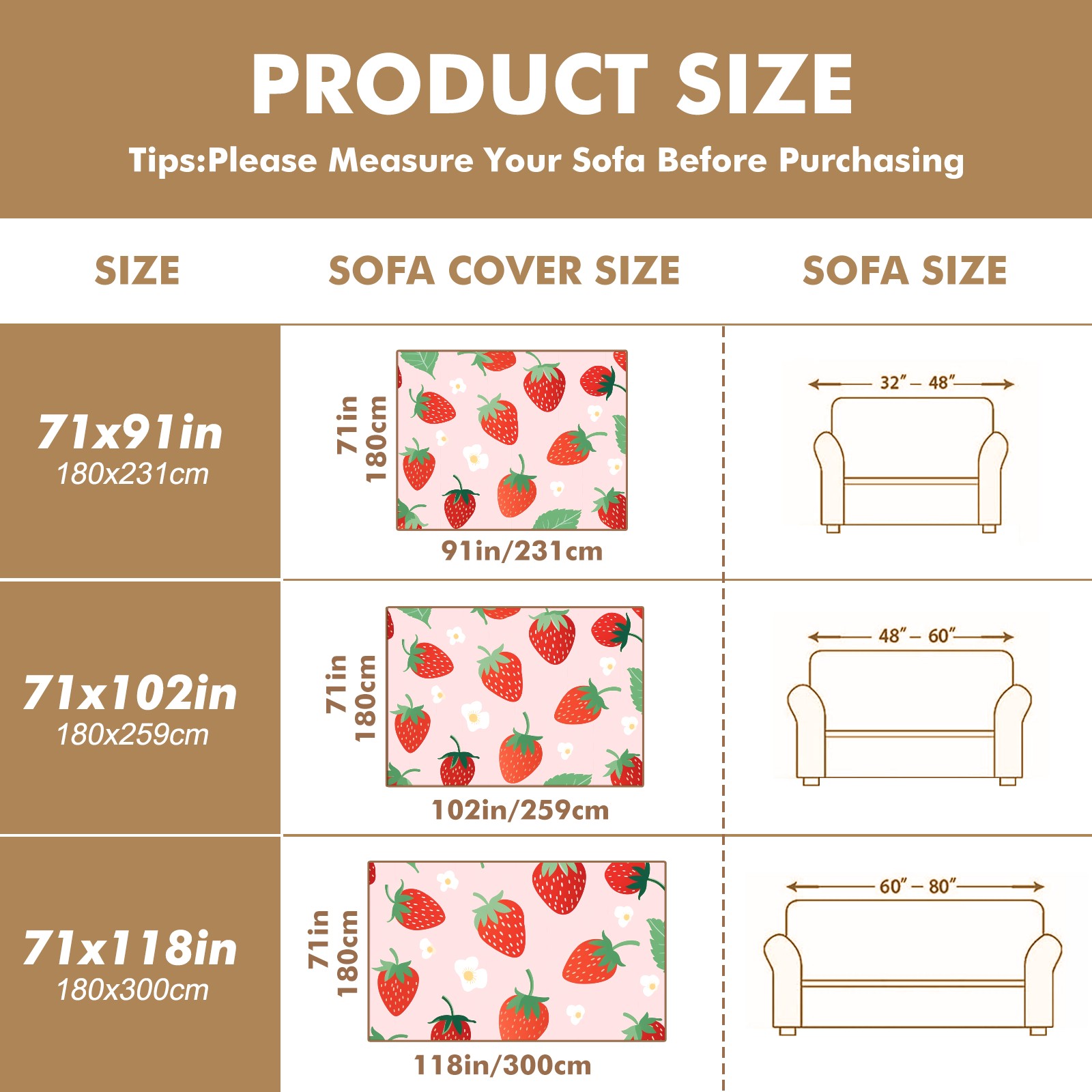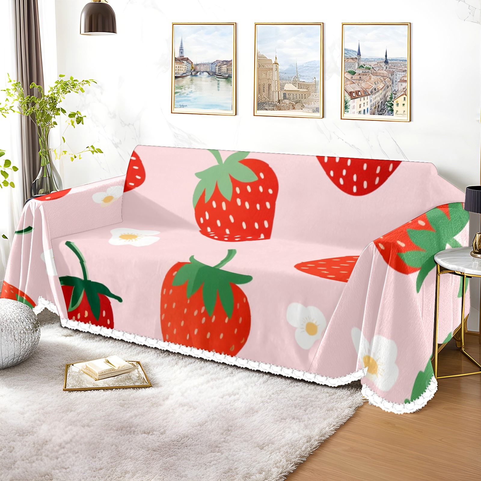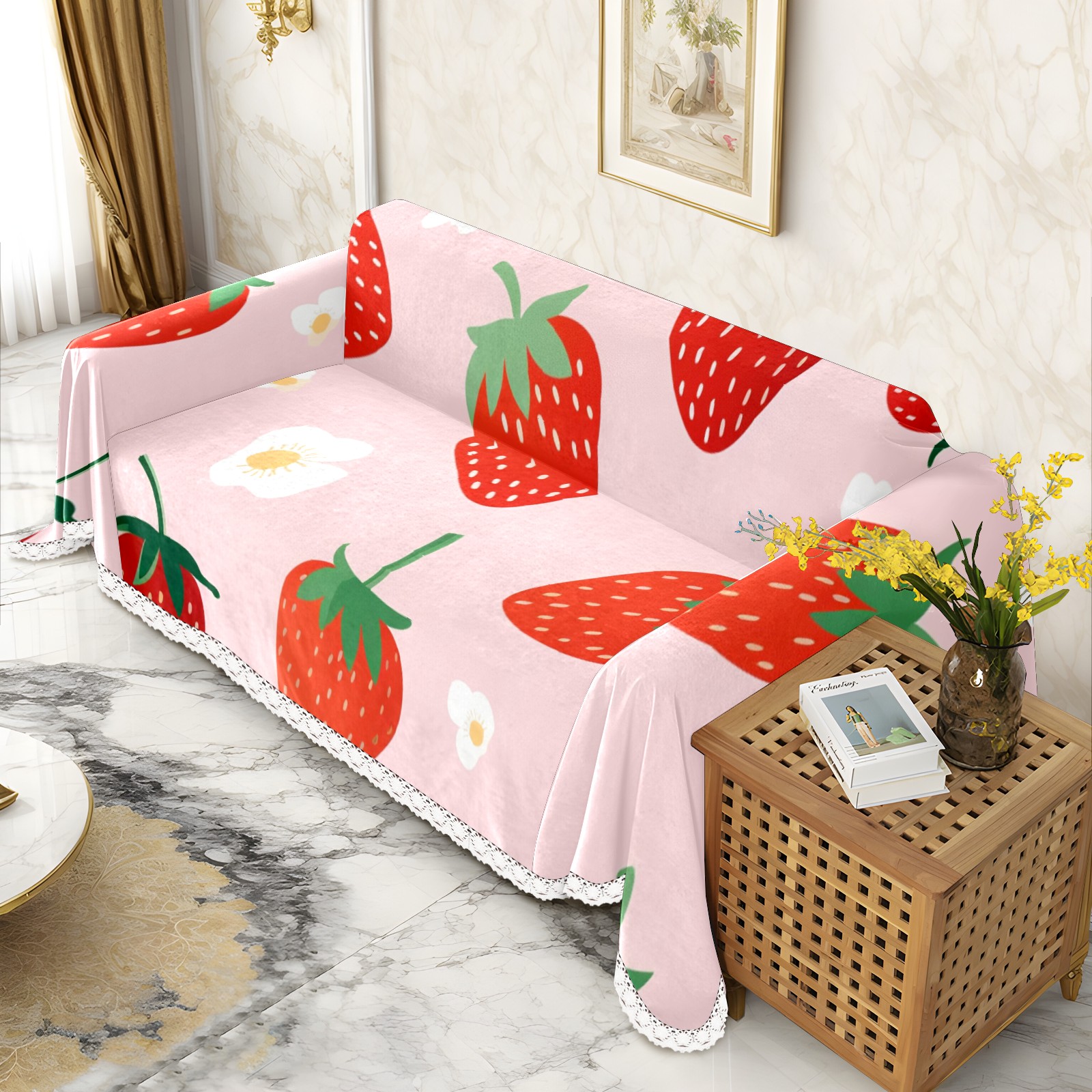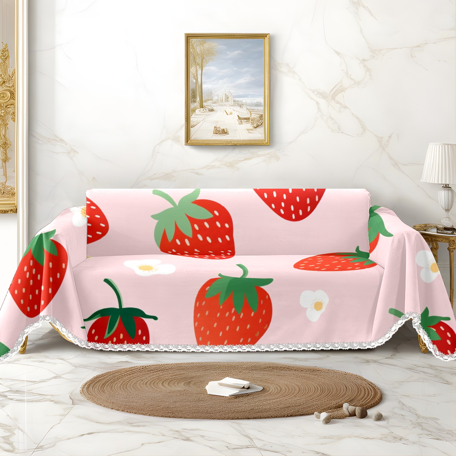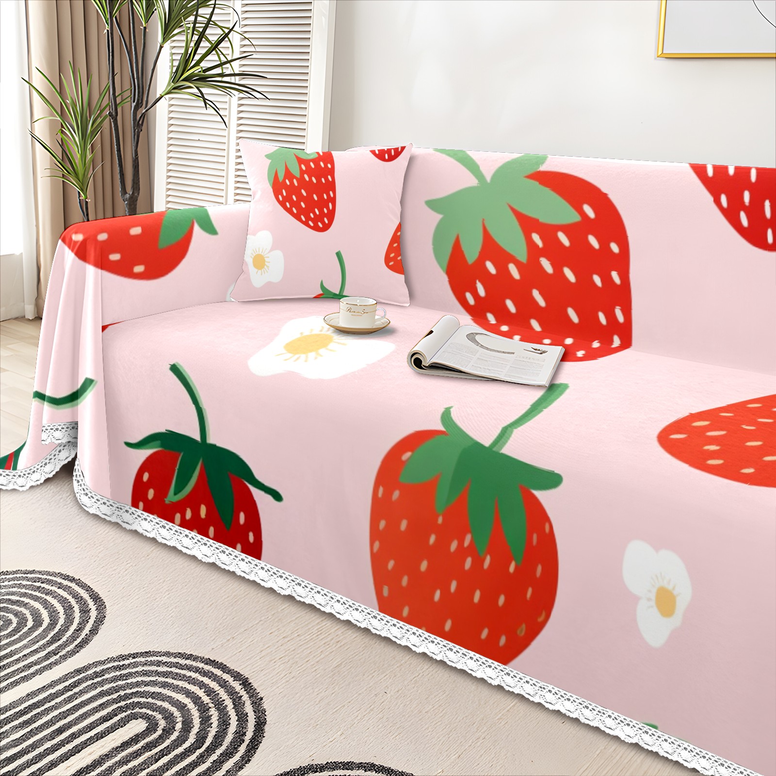 Cute Strawberry Sofa Cover-Soft Poly-Cotton Blend, Machine Washable Couch Protector for Home Decor - 71x91 in Couch Covers