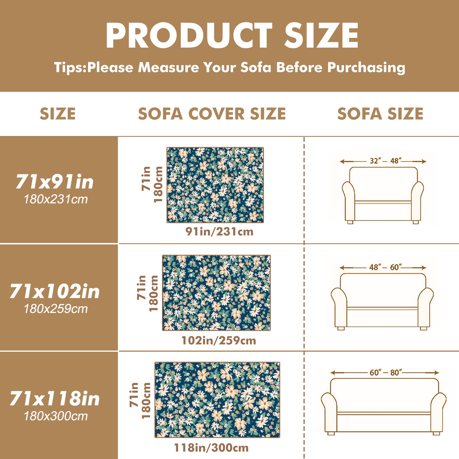 <p>Where Comfort Meets Everyday Elegance</p> <p>Engineered with a breakthrough polyester-cotton blend, these 4-size sofa covers deliver plush protection while enhancing your living space aesthetics.Precision-Crafted Details</p> <p>65% heavy-duty polyester + 35% combed cotton, brushed to create a velvety layer ideal for bare-skin contact during relaxation.</p> <p>Dimensions: 71x91/102/118/134in (±2cm). Elastic hemming + corner straps maintain smooth coverage on L-shaped curves and high-back designs.</p> <p>Dust Defense: Tight plain weave minimizes particle accumulation; easy shake-off maintenance</p> <p>Easy Maintenance: Machine washable at 86°F (30°C) without fading or shrinkage</p> <p>From quiet afternoon naps to lively gatherings, experience lasting softness and reliable protection that evolves with your lifestyle.</p>