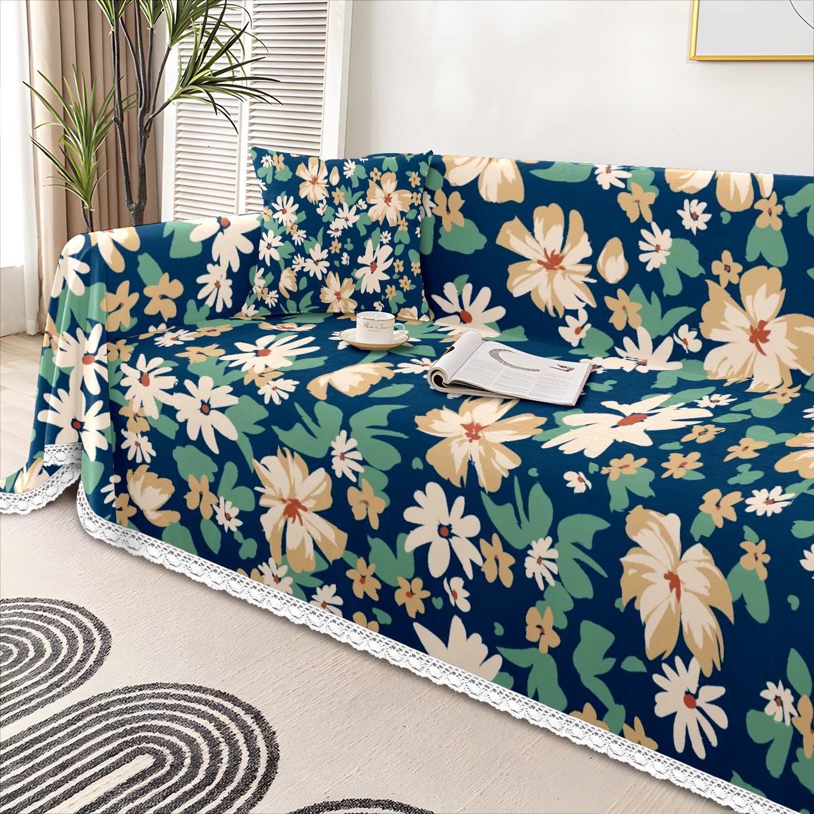 Beautiful Flowers Sofa Cover-Soft Poly-Cotton Blend, Machine Washable Couch Protector for Home Decor - 71x91 in Couch Covers