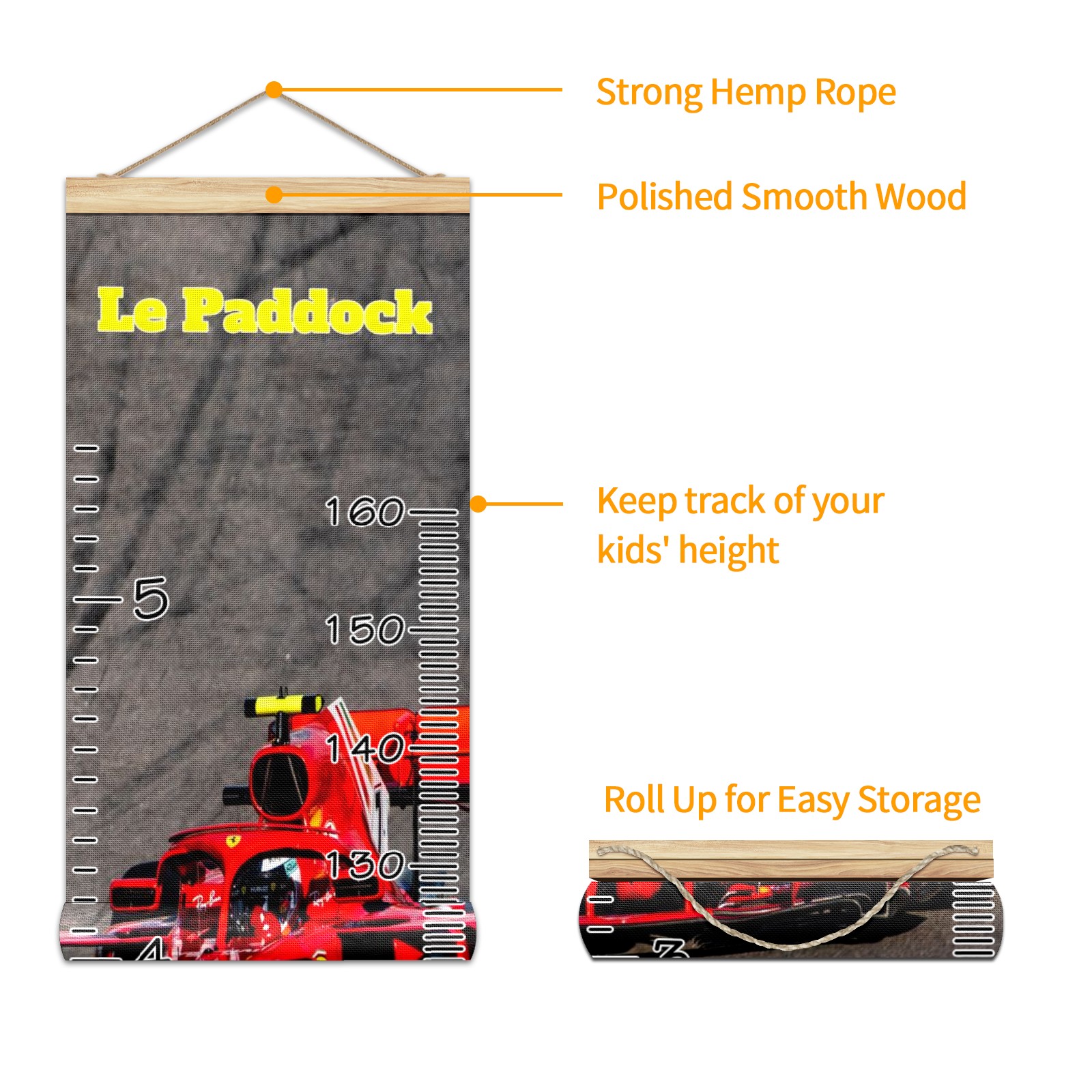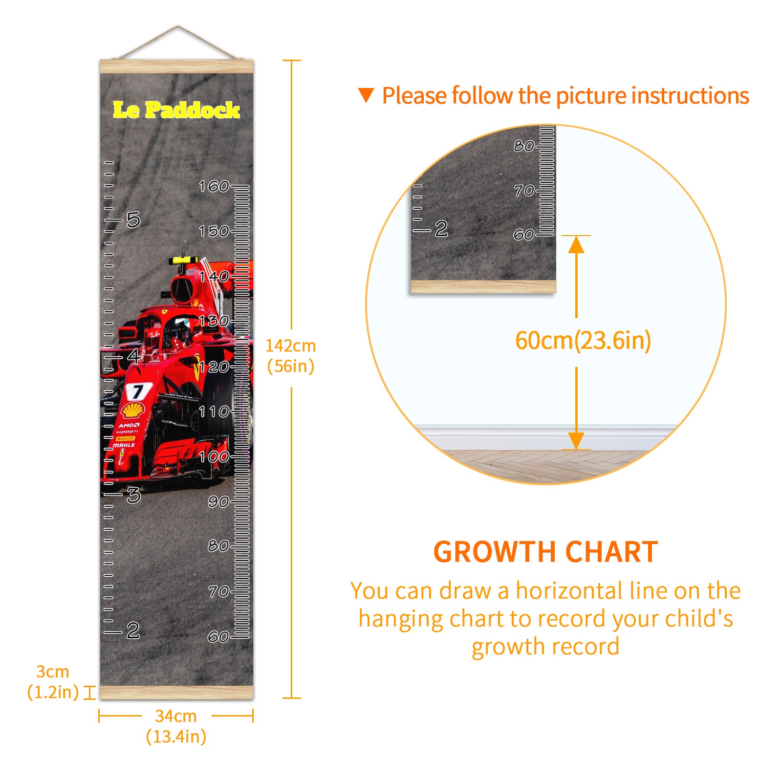Personalized Kids Name Growth Chart Ruler for Wall Wood Frame Canvas Height Measure Chart 13.4x56 in Hanging Growth Chart RACE CAR3.21-1 Boys Girls Room Decor