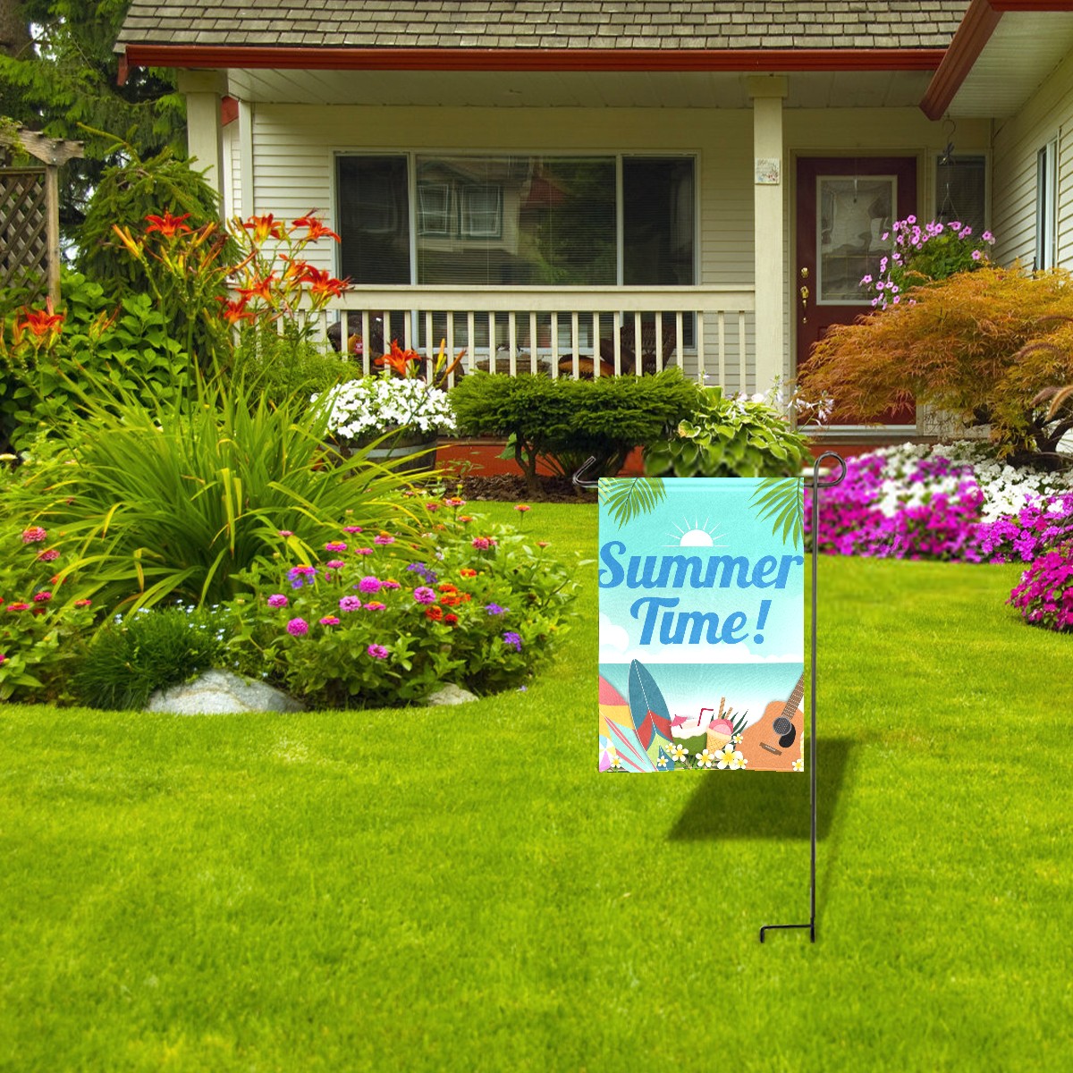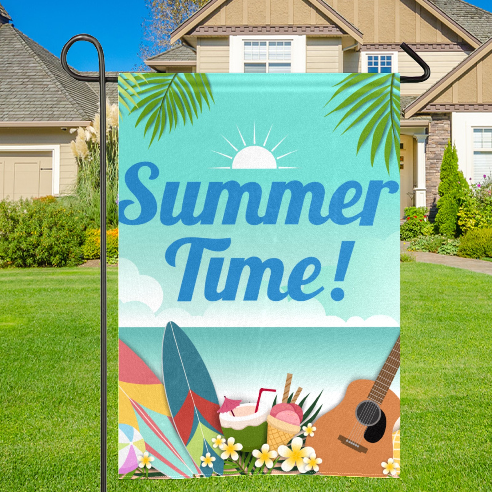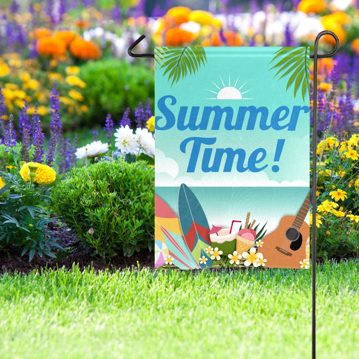 Summer Time Waterproof Garden Flag for Outdoor Yard, Lawn, Porch Decor - All-Season Holiday Party/Patio Landscape Decoration (12x18 Inch)