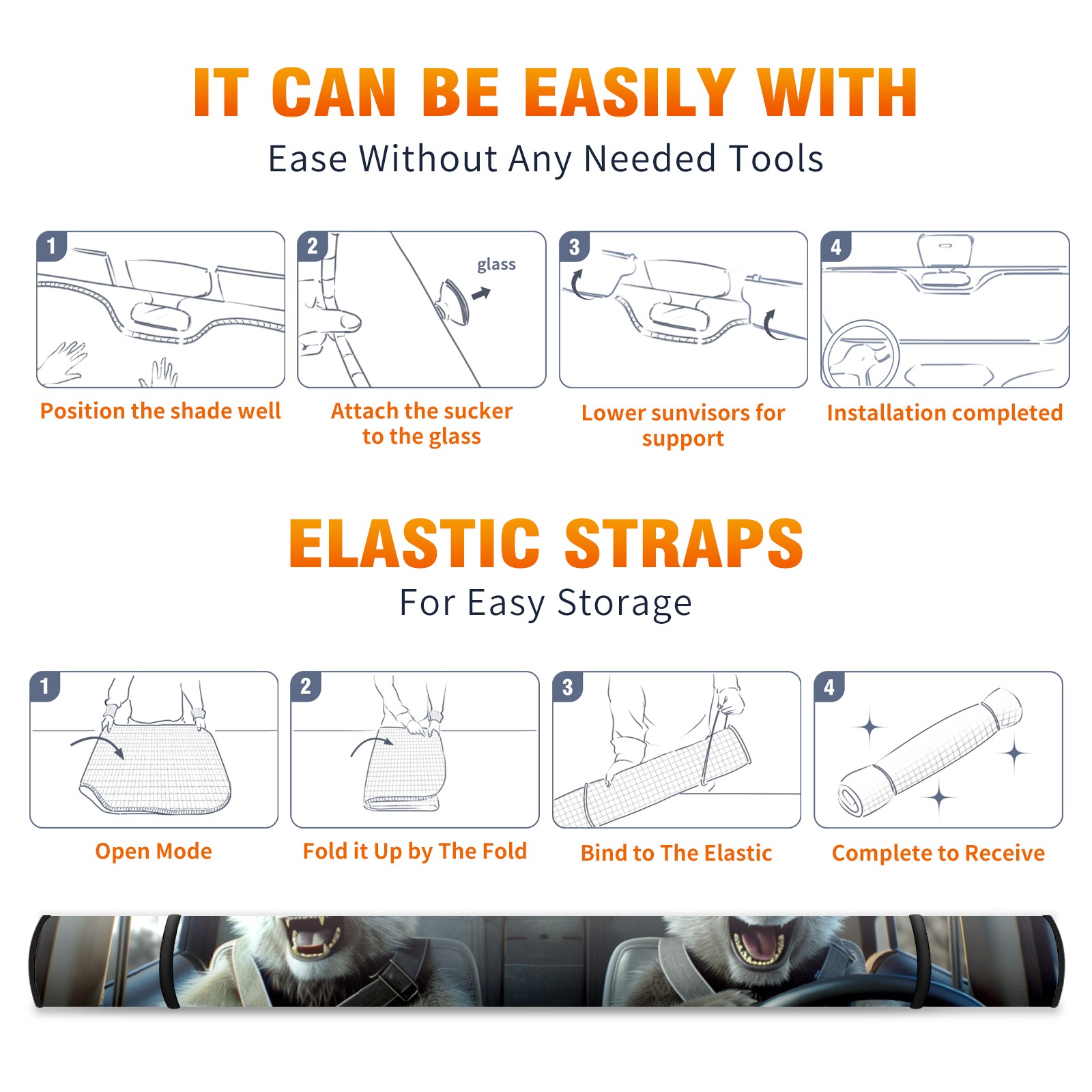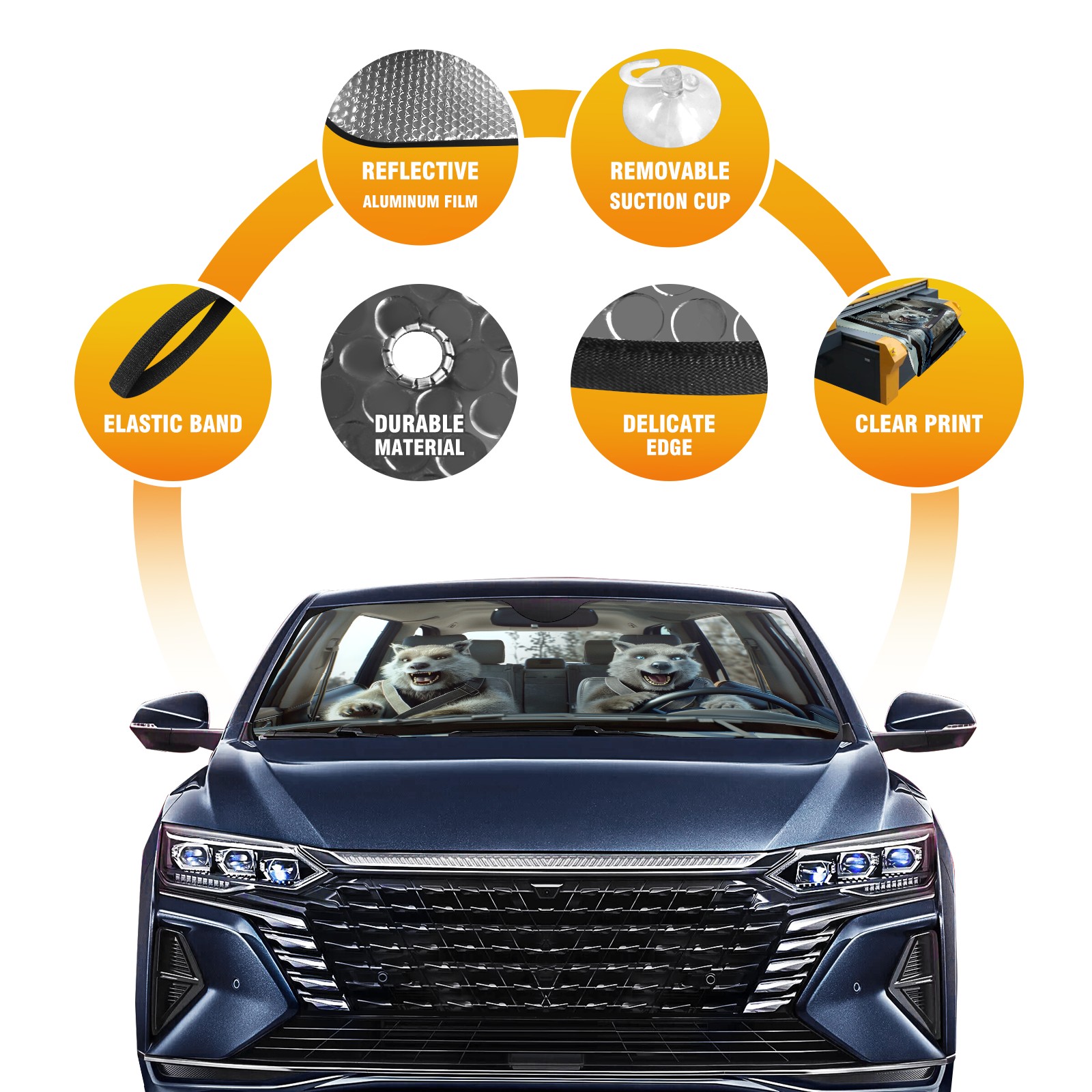 • <p><b>Foldable Premium Car Windshield Sunshade is your great solution to reduce your car’s interior temperature dramatically! This is definitely a must-have item for your summer travel!</b></p><p><b>【Precision Fit, Stylish Protection】</b></p><p>55"x30" (140x76cm) universal size with 3cm flexible margins fits curved windshields of most sedans/SUVs.</p><p><b>【Blocking Uv Rays &amp; Heat Insulation】</b></p><p>Our vehicle sunshade provides effective UV, sun, and summer heat protection, preventing leather fading and plastic cracking to keep your car interior pristine.</p><p><b>【Zero-Mark Installation &amp; Space-Saving】</b></p><p>Equipped with dual scratch-free silicone suction cups + adjustable straps: Medical-grade silicone cups hold firmly yet remove cleanly. Folds to A3 size (42x30cm x &lt;2cm thick), tucks discreetly into glove compartments or door pockets.&nbsp;</p>