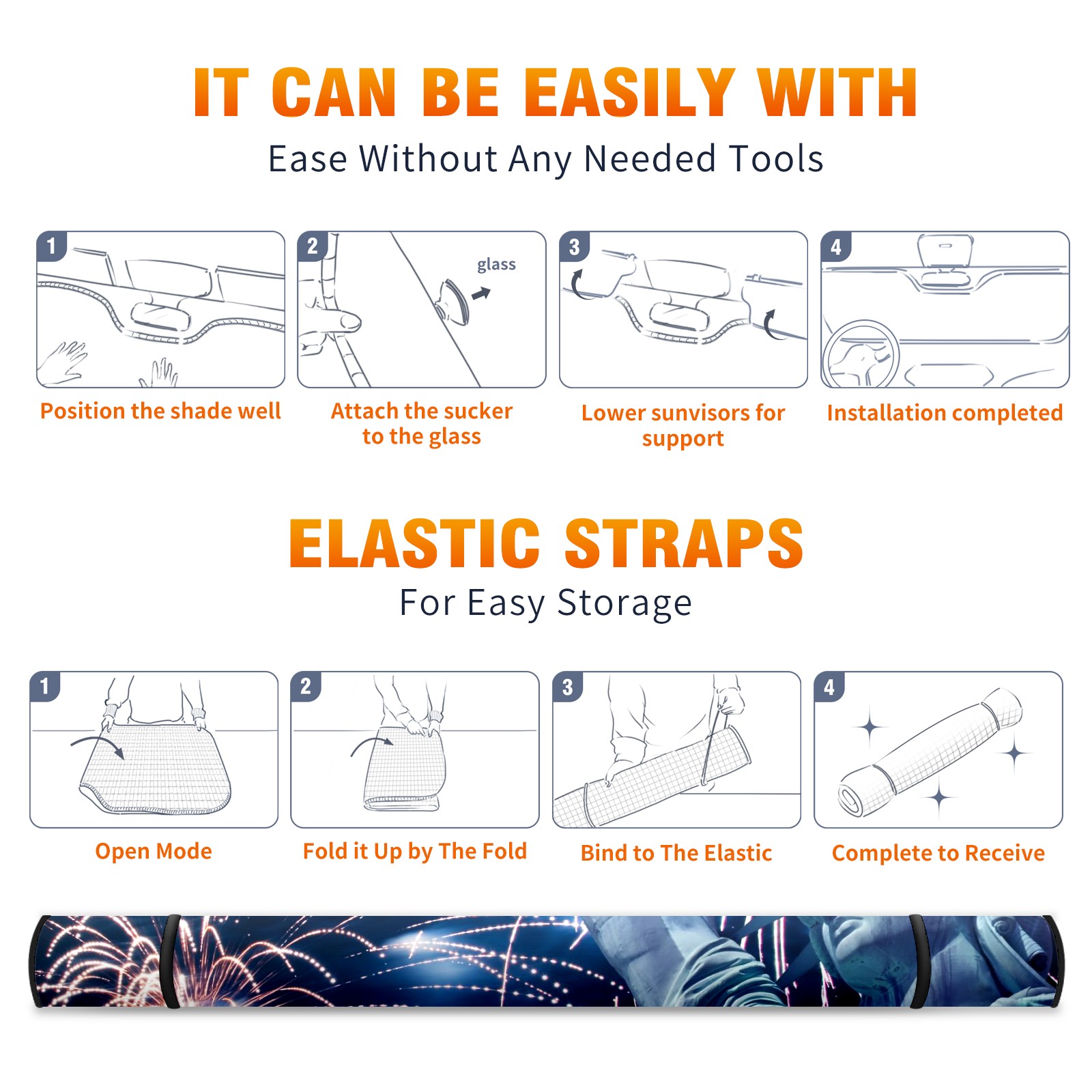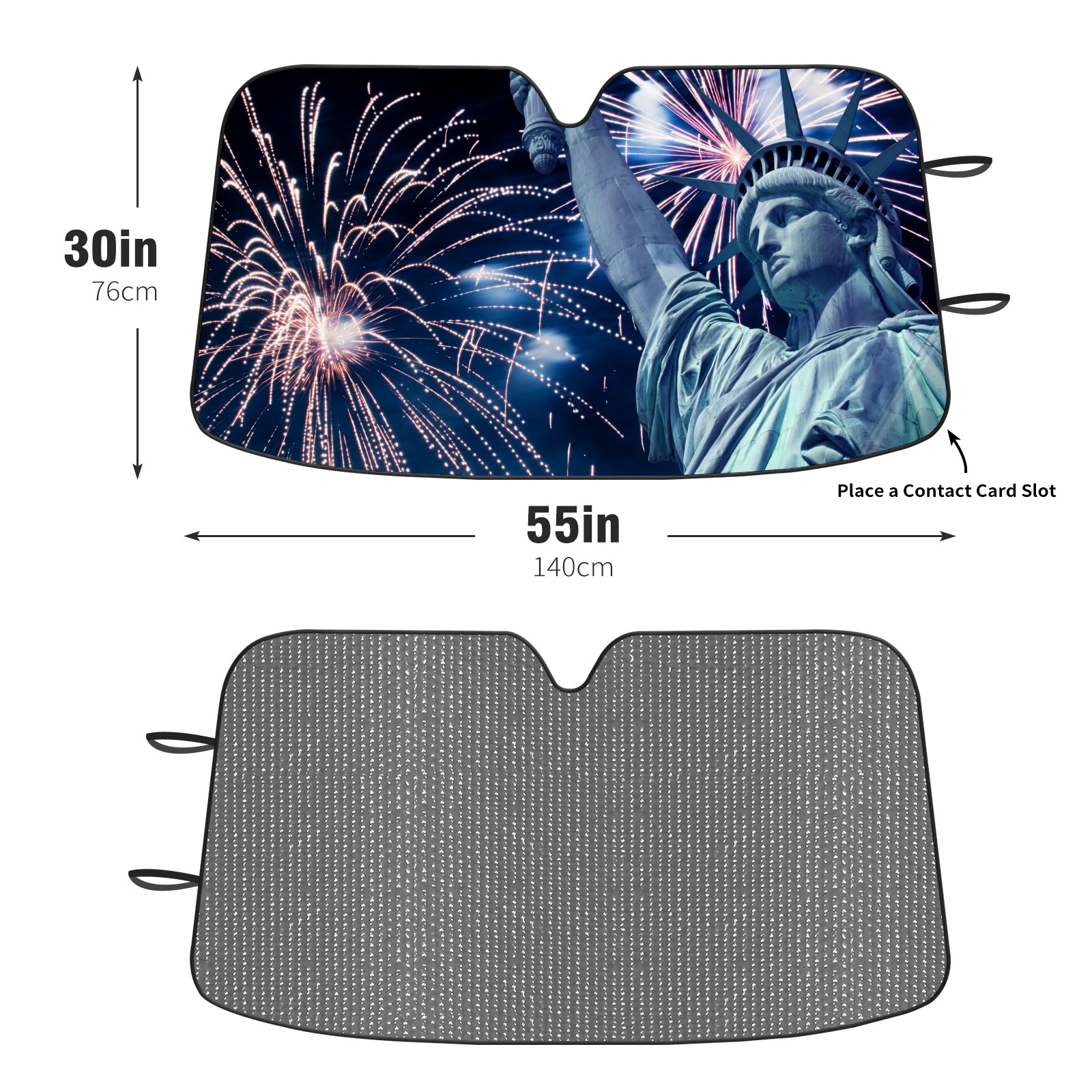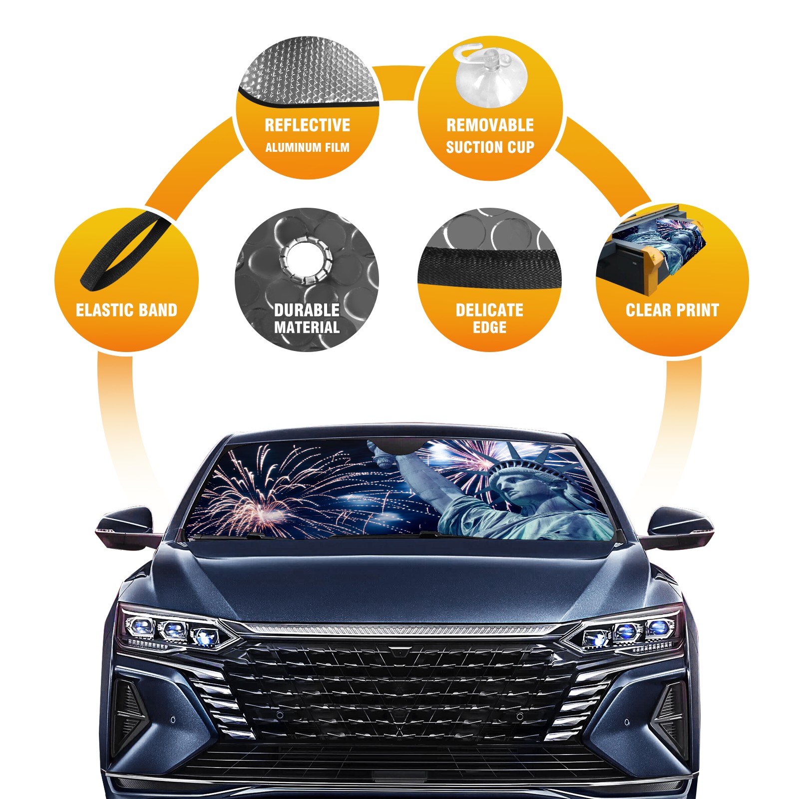 • <p><b>Foldable Premium Car Windshield Sunshade is your great solution to reduce your car’s interior temperature dramatically! This is definitely a must-have item for your summer travel!</b></p><p><b>【Precision Fit, Stylish Protection】</b></p><p>55"x30" (140x76cm) universal size with 3cm flexible margins fits curved windshields of most sedans/SUVs.</p><p><b>【Blocking Uv Rays &amp; Heat Insulation】</b></p><p>Our vehicle sunshade provides effective UV, sun, and summer heat protection, preventing leather fading and plastic cracking to keep your car interior pristine.</p><p><b>【Zero-Mark Installation &amp; Space-Saving】</b></p><p>Equipped with dual scratch-free silicone suction cups + adjustable straps: Medical-grade silicone cups hold firmly yet remove cleanly. Folds to A3 size (42x30cm x &lt;2cm thick), tucks discreetly into glove compartments or door pockets.&nbsp;</p>