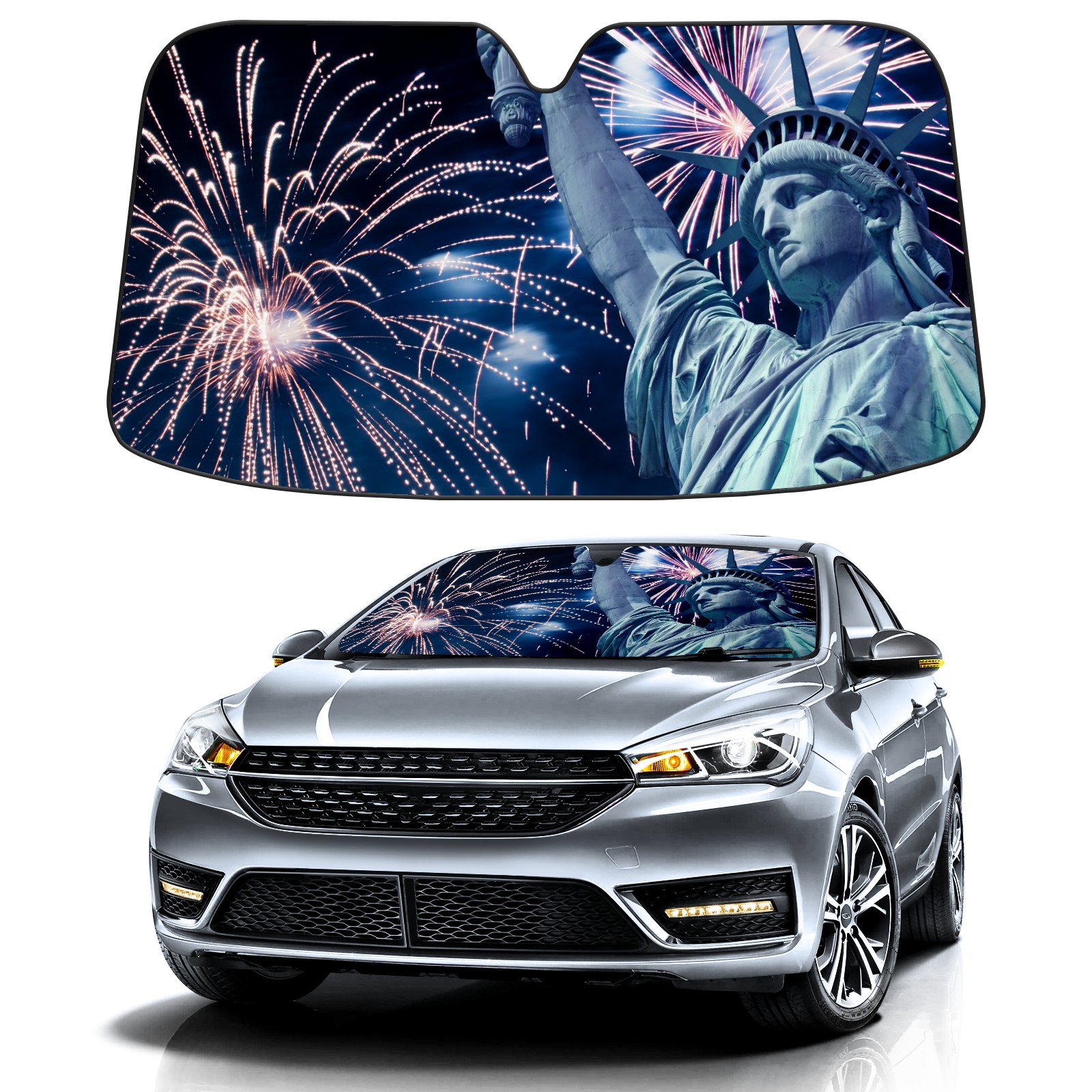 USA American Statue Of Liberty Car Sun Shade UV Protection Foldable Sunshade for Windshield Heat Insulation Portable Sun Shield for Car Interior Protection Automotive Window Protector
