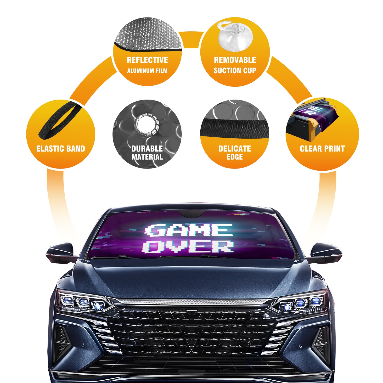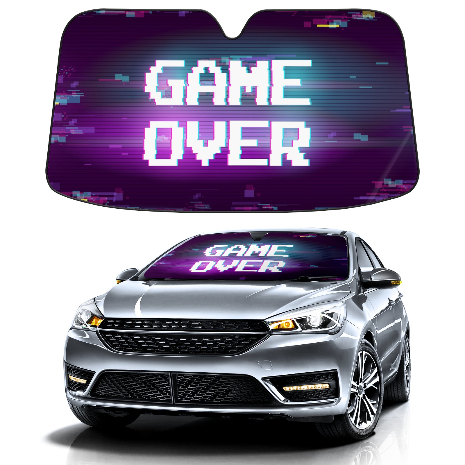 Game Over Gamer Car Sun Shade UV Protection Foldable Sunshade for Windshield Heat Insulation Portable Sun Shield for Car Interior Protection Automotive Window Protector