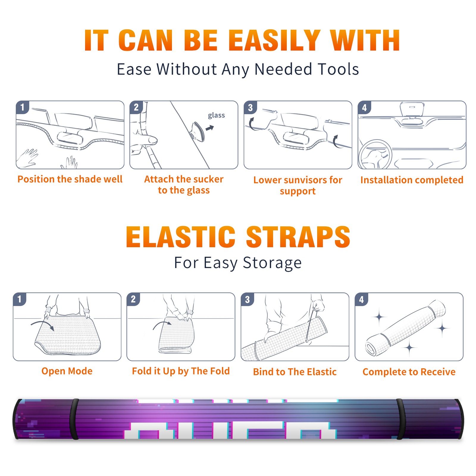• <p><b>Foldable Premium Car Windshield Sunshade is your great solution to reduce your car’s interior temperature dramatically! This is definitely a must-have item for your summer travel!</b></p><p><b>【Precision Fit, Stylish Protection】</b></p><p>55"x30" (140x76cm) universal size with 3cm flexible margins fits curved windshields of most sedans/SUVs.</p><p><b>【Blocking Uv Rays &amp; Heat Insulation】</b></p><p>Our vehicle sunshade provides effective UV, sun, and summer heat protection, preventing leather fading and plastic cracking to keep your car interior pristine.</p><p><b>【Zero-Mark Installation &amp; Space-Saving】</b></p><p>Equipped with dual scratch-free silicone suction cups + adjustable straps: Medical-grade silicone cups hold firmly yet remove cleanly. Folds to A3 size (42x30cm x &lt;2cm thick), tucks discreetly into glove compartments or door pockets.&nbsp;</p>