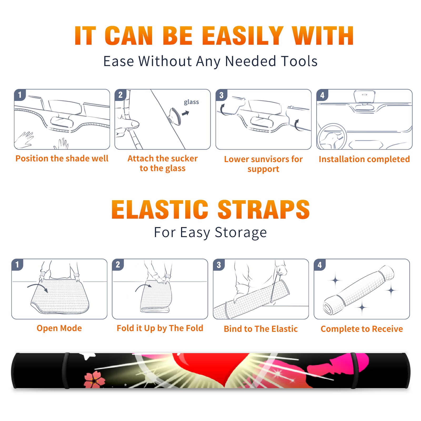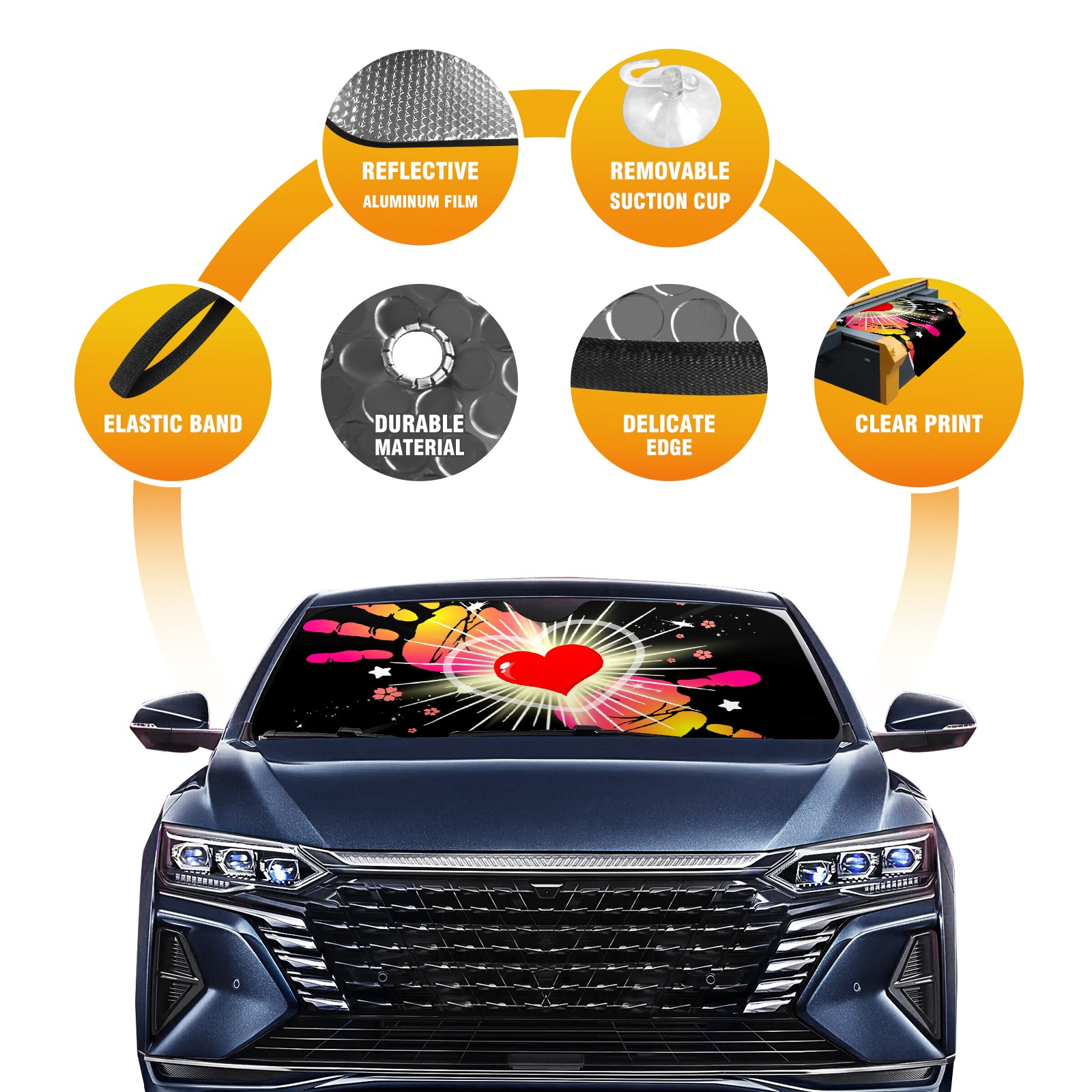 • <p><b>Foldable Premium Car Windshield Sunshade is your great solution to reduce your car’s interior temperature dramatically! This is definitely a must-have item for your summer travel!</b></p><p><b>【Precision Fit, Stylish Protection】</b></p><p>55"x30" (140x76cm) universal size with 3cm flexible margins fits curved windshields of most sedans/SUVs.</p><p><b>【Blocking Uv Rays &amp; Heat Insulation】</b></p><p>Our vehicle sunshade provides effective UV, sun, and summer heat protection, preventing leather fading and plastic cracking to keep your car interior pristine.</p><p><b>【Zero-Mark Installation &amp; Space-Saving】</b></p><p>Equipped with dual scratch-free silicone suction cups + adjustable straps: Medical-grade silicone cups hold firmly yet remove cleanly. Folds to A3 size (42x30cm x &lt;2cm thick), tucks discreetly into glove compartments or door pockets.&nbsp;</p>