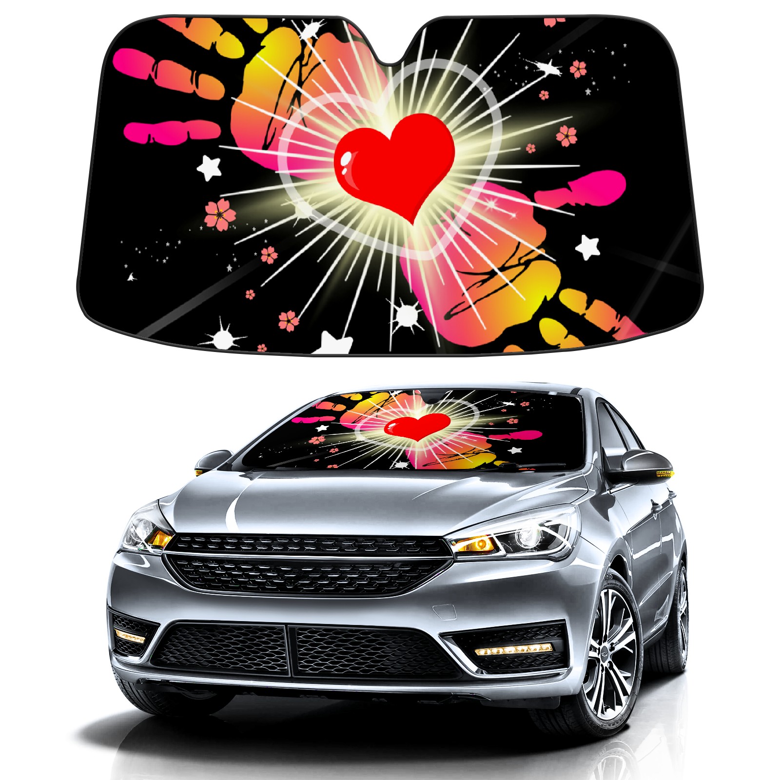 Love Light Wave Car Sun Shade UV Protection Foldable Sunshade for Windshield Heat Insulation Portable Sun Shield for Car Interior Protection Automotive Window Protector