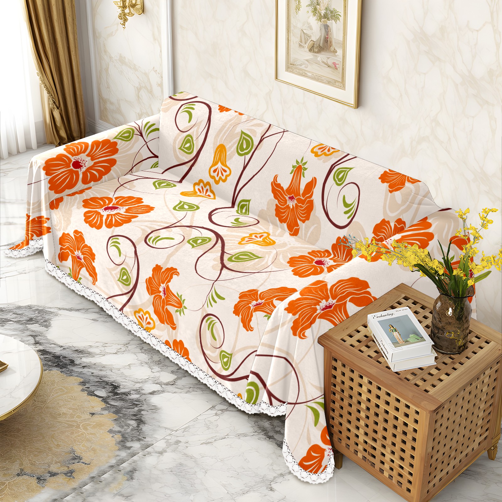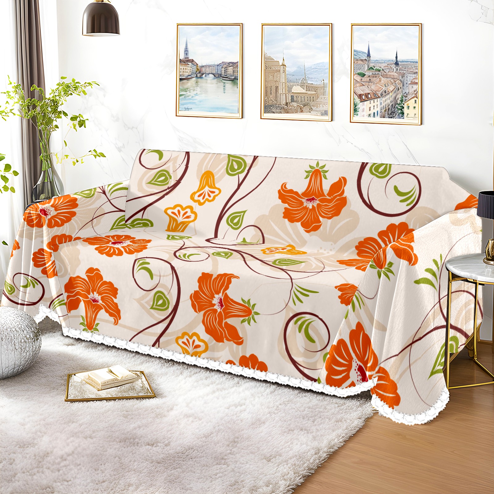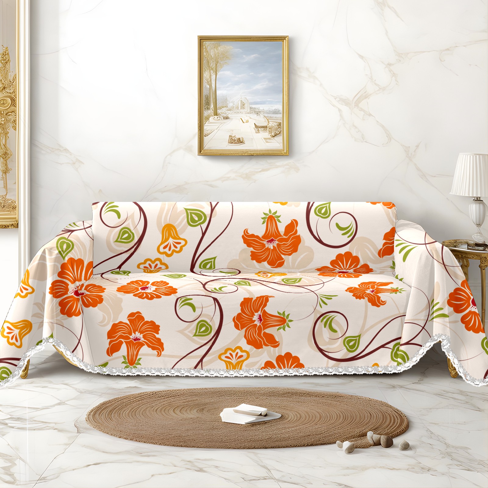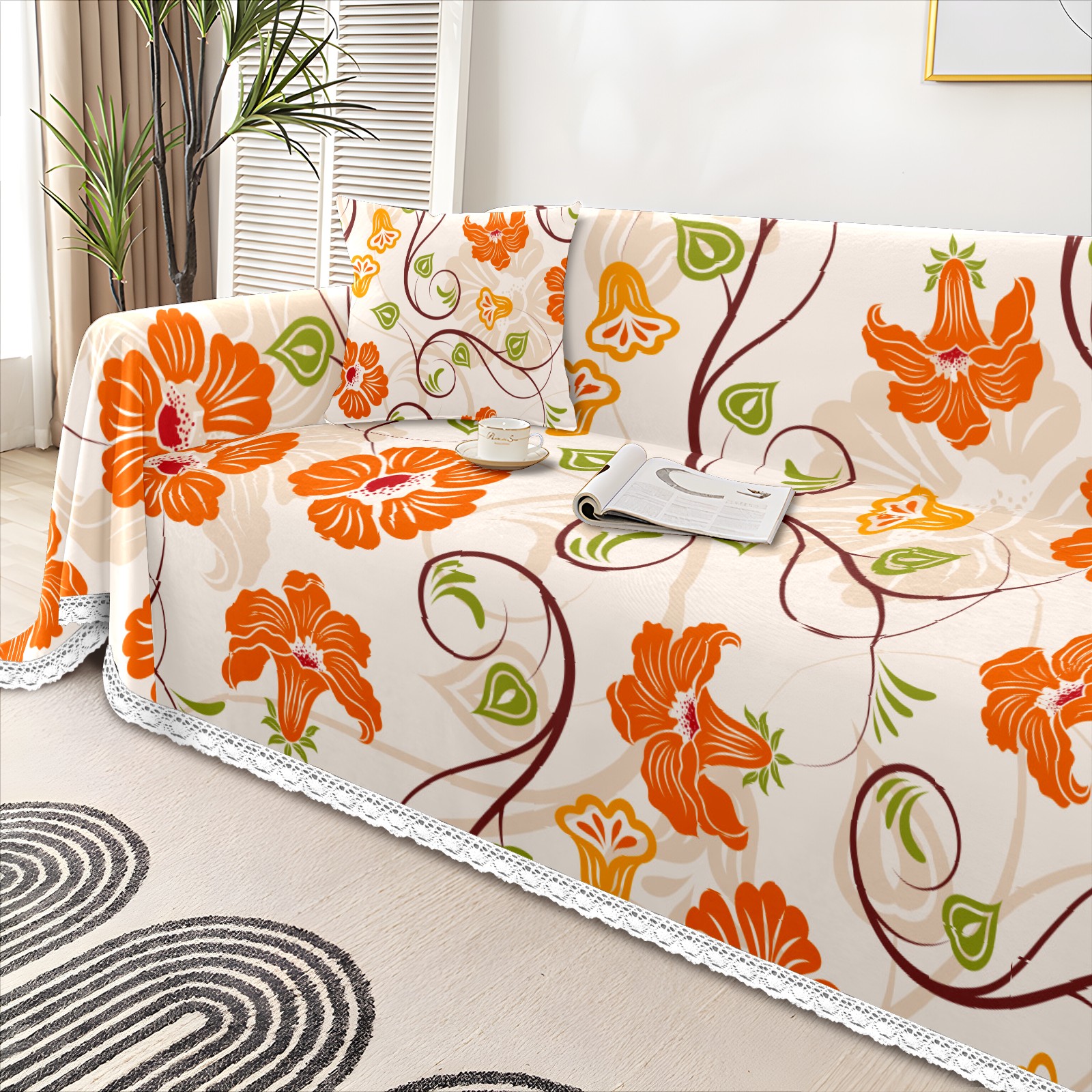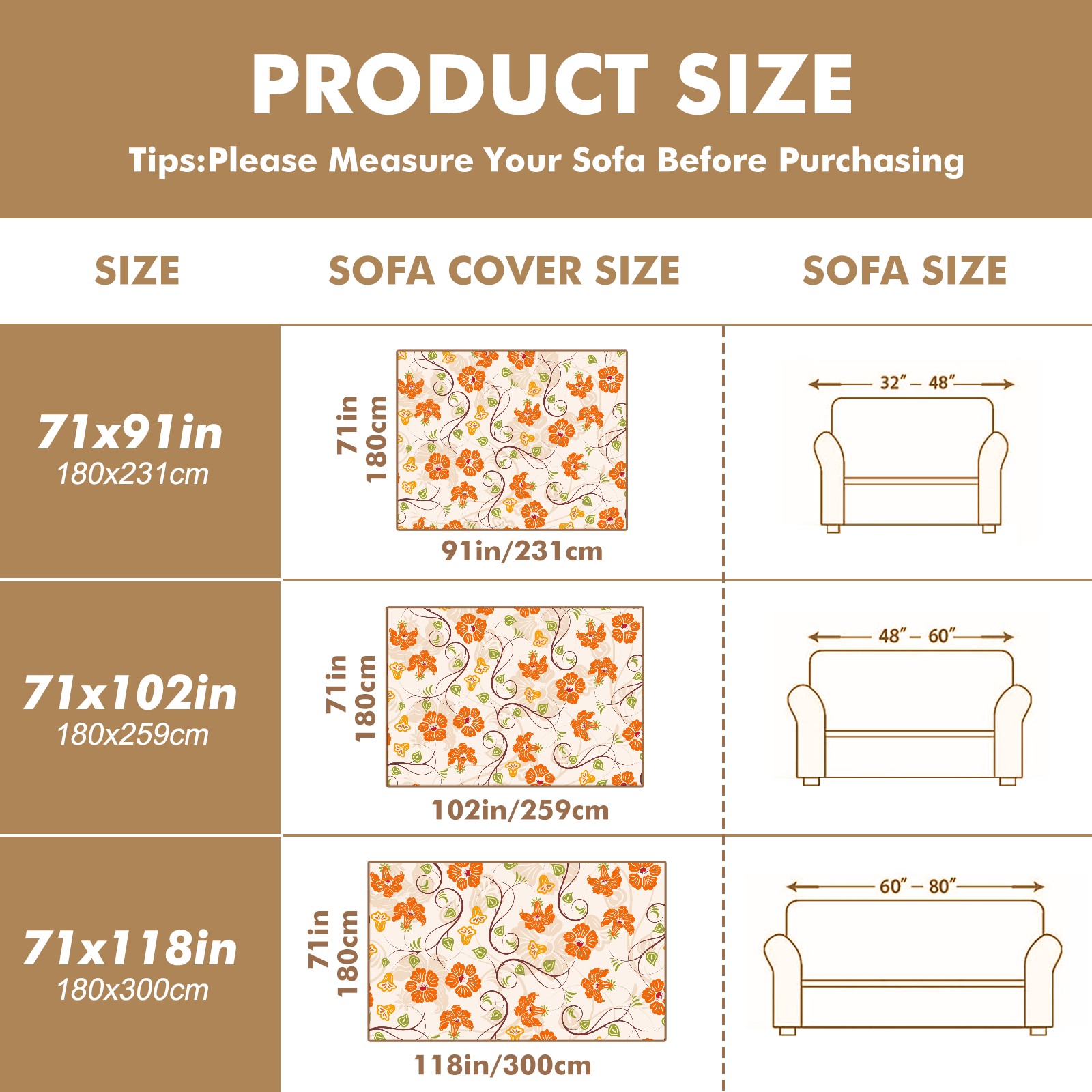 orange flower leaves Sofa Cover-Soft Poly-Cotton Blend, Machine Washable Couch Protector for Home Decor - 71x91 in Couch Covers