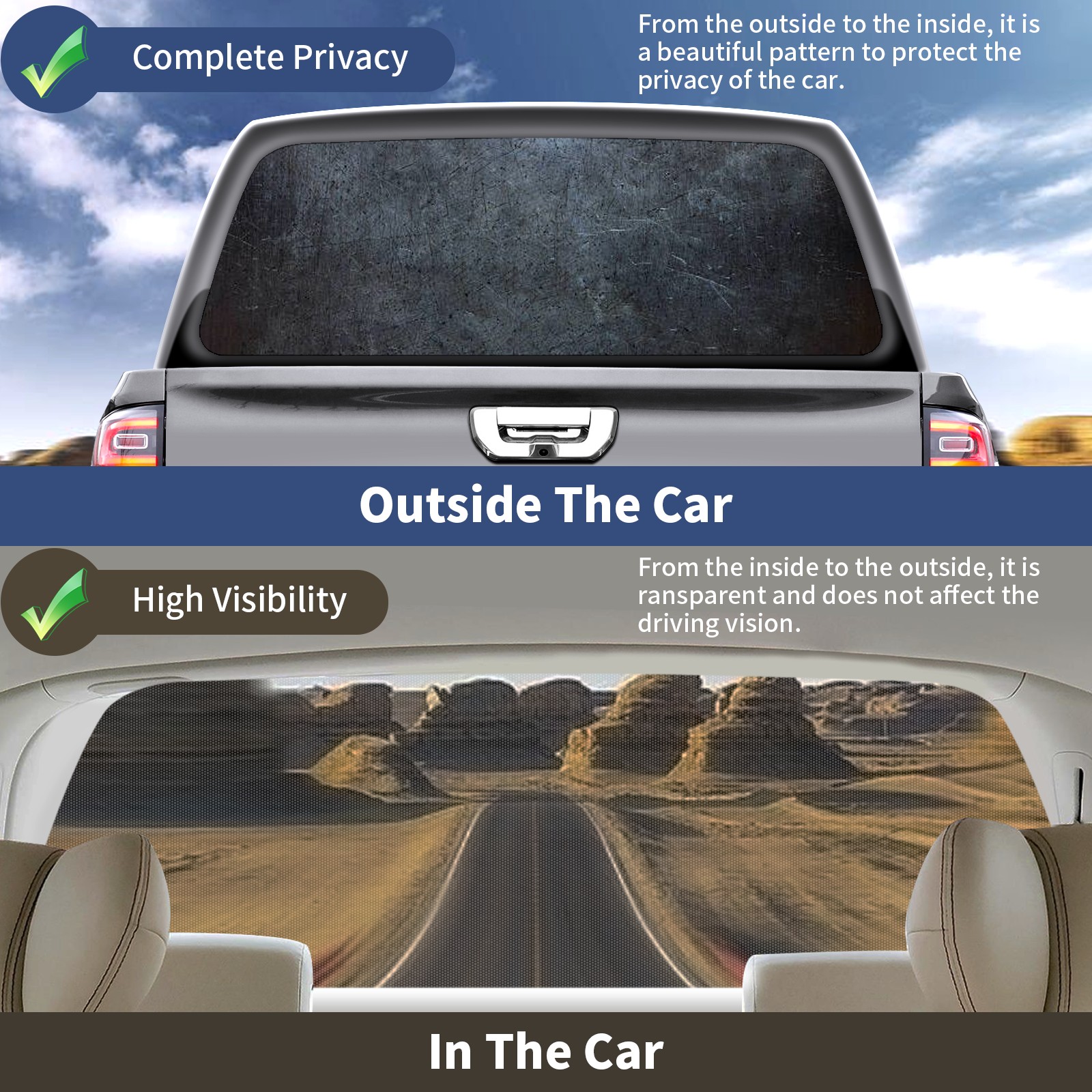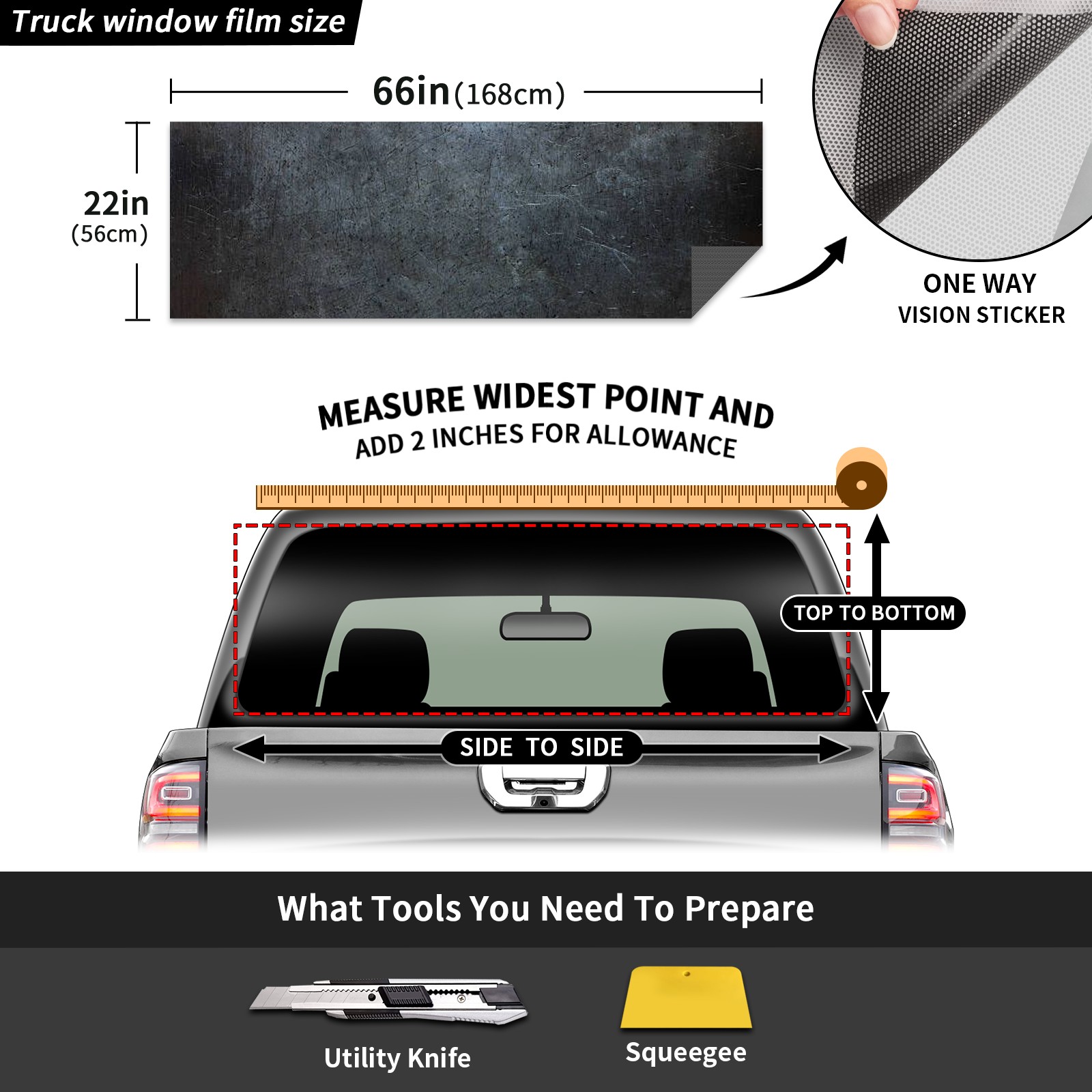 <p><strong>Truck Rear Window Graphics Decals Pickup Trucks Back Window Film Stickers 66" x 22" Perforated Vinyl Wrap Stickers Decorations for Car Rear Window</strong></p><p><strong><br /></strong></p><p><strong>Features :</strong></p><p>- Size of the rear window decals for trucks is 66x22 Inches (168x56cm).</p><p>- High quality perforated vinyl window film, one way vision sticker.</p><p>- Perforated is see through from the inside but not from outside.</p><p>- Clear printing, waterproof and durable.</p><p>- The car back window graphics stickers fits most truck and makes your vehicle more beautiful.&nbsp;</p><p><br /></p><p><strong>【Installation Instructions】</strong></p><p><strong>1. CLEAN SURFACE -</strong> Clean the rear window thoroughly and make sure the surface clean.</p><p><strong>2. STICK THE DECALS -</strong> Tear off the paper on the back and stick the decal on the window.</p><p><strong>3. SCRAPE OFF AIR BUBBLES -</strong> Use a squeegee or other card to scrape off the excess air bubbles.</p><p><strong>4. TRIM THE EXCESS -</strong> Use a knife to cut off the excess stickers of the window, finally complete.</p><p><br /></p><p>1. Please measure the size before purchasing, back window graphics decal for truck can be cut to your desired size.</p><p>2.The graphics stickers for truck back window is a great gift for yourself also can as a birthday / halloween / christmas gift for your friends and family.</p>