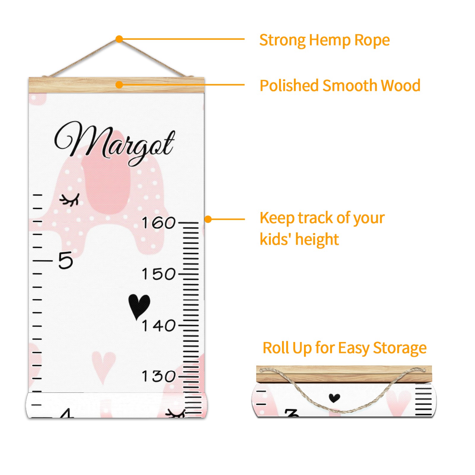 Personalized Kids Name Growth Chart Ruler for Wall Wood Frame Canvas Height Measure Chart 13.4x56 in Hanging Growth Chart Pink Elephant3.22 Boys Girls Room Decor