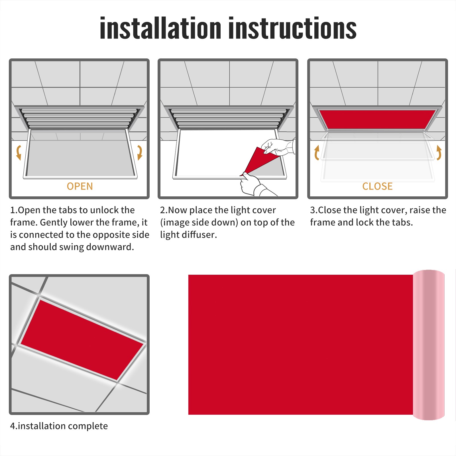 2 Pack Pure Red ColorLights Fluorescent Light Covers for Classroom Office 2x4ft Celling Fluorescent Decorative Eliminate Harsh Glare,Classroom Decorations