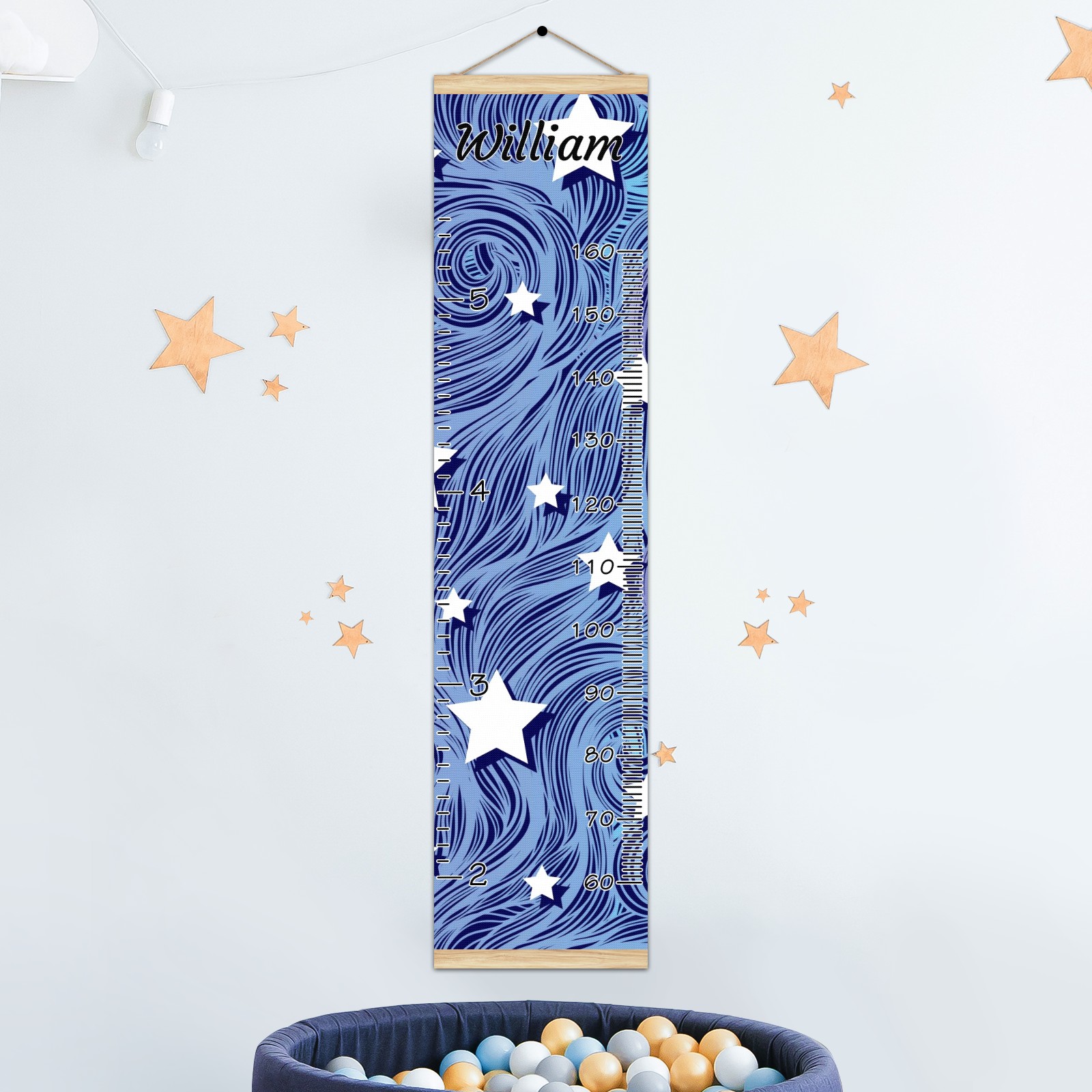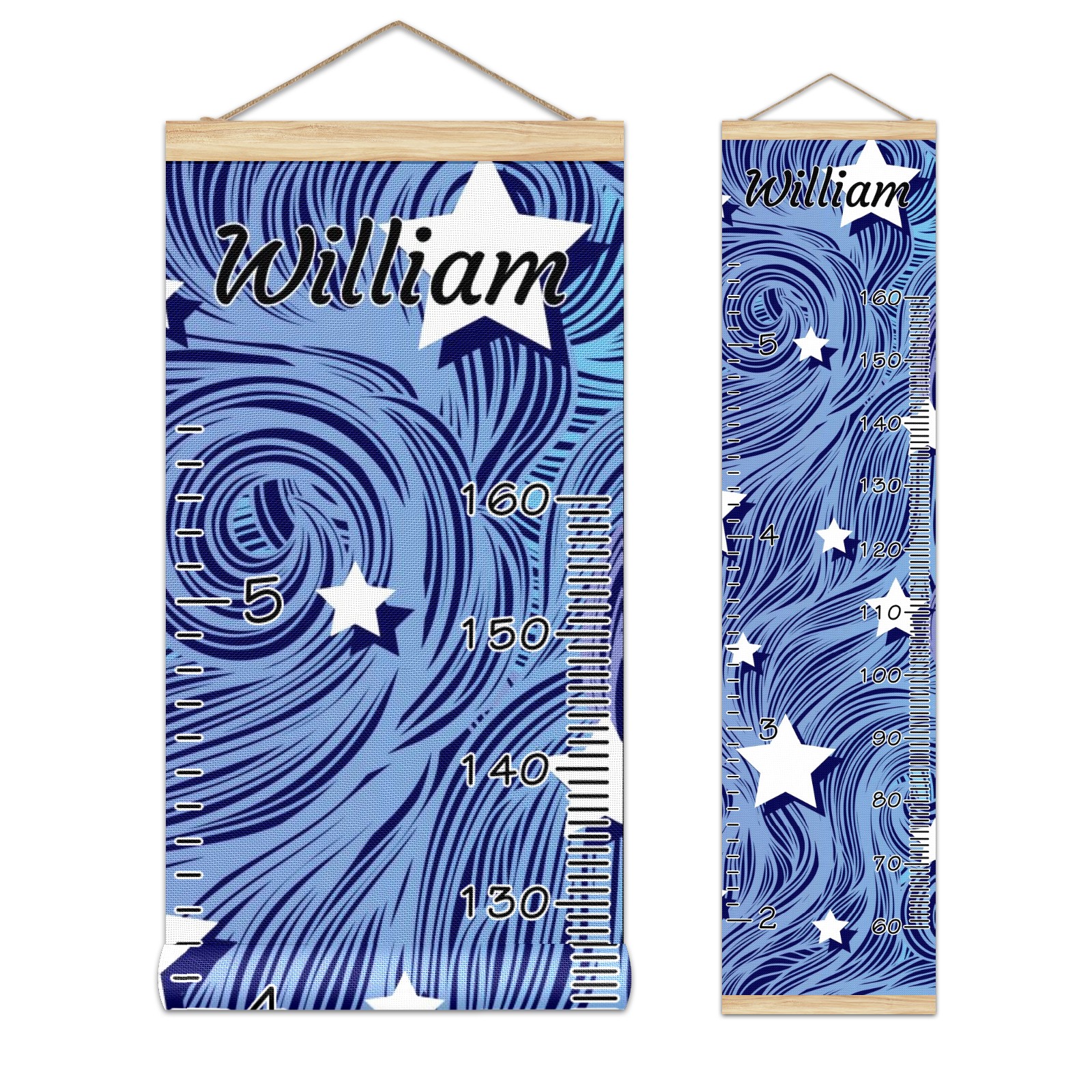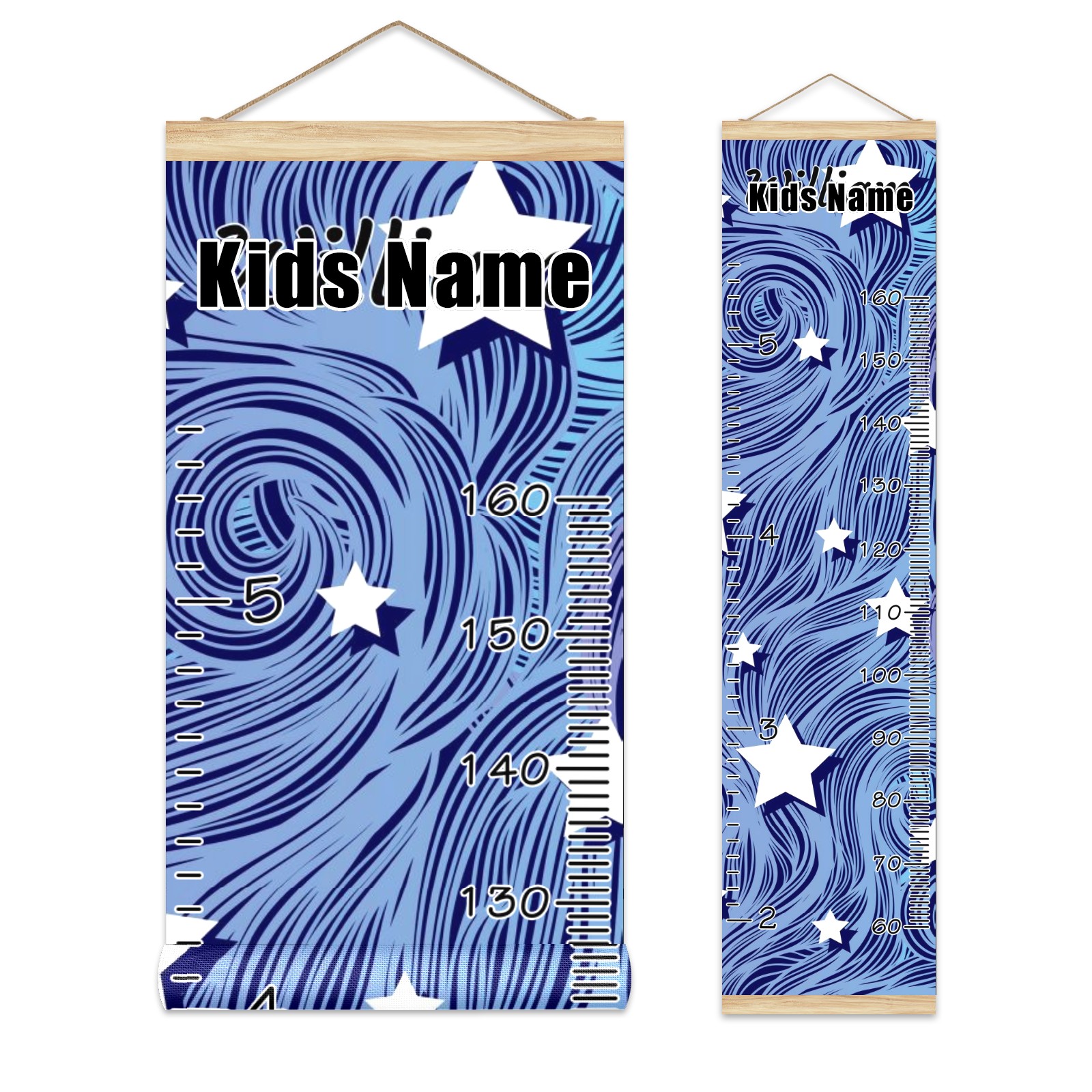 Personalized Kids Name Growth Chart Ruler for Wall Wood Frame Canvas Height Measure Chart 13.4x56 in Hanging Growth Chart Heat Wave Star Blue3.24 Boys Girls Room Decor