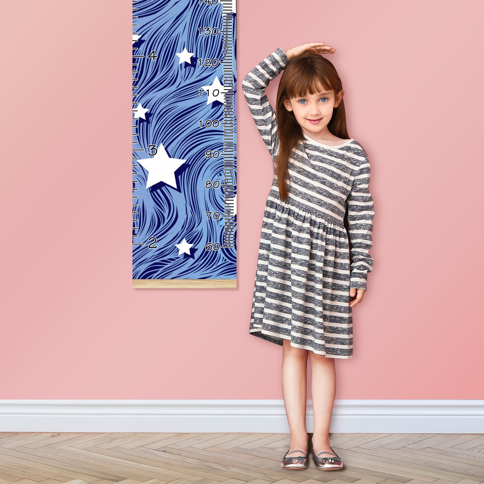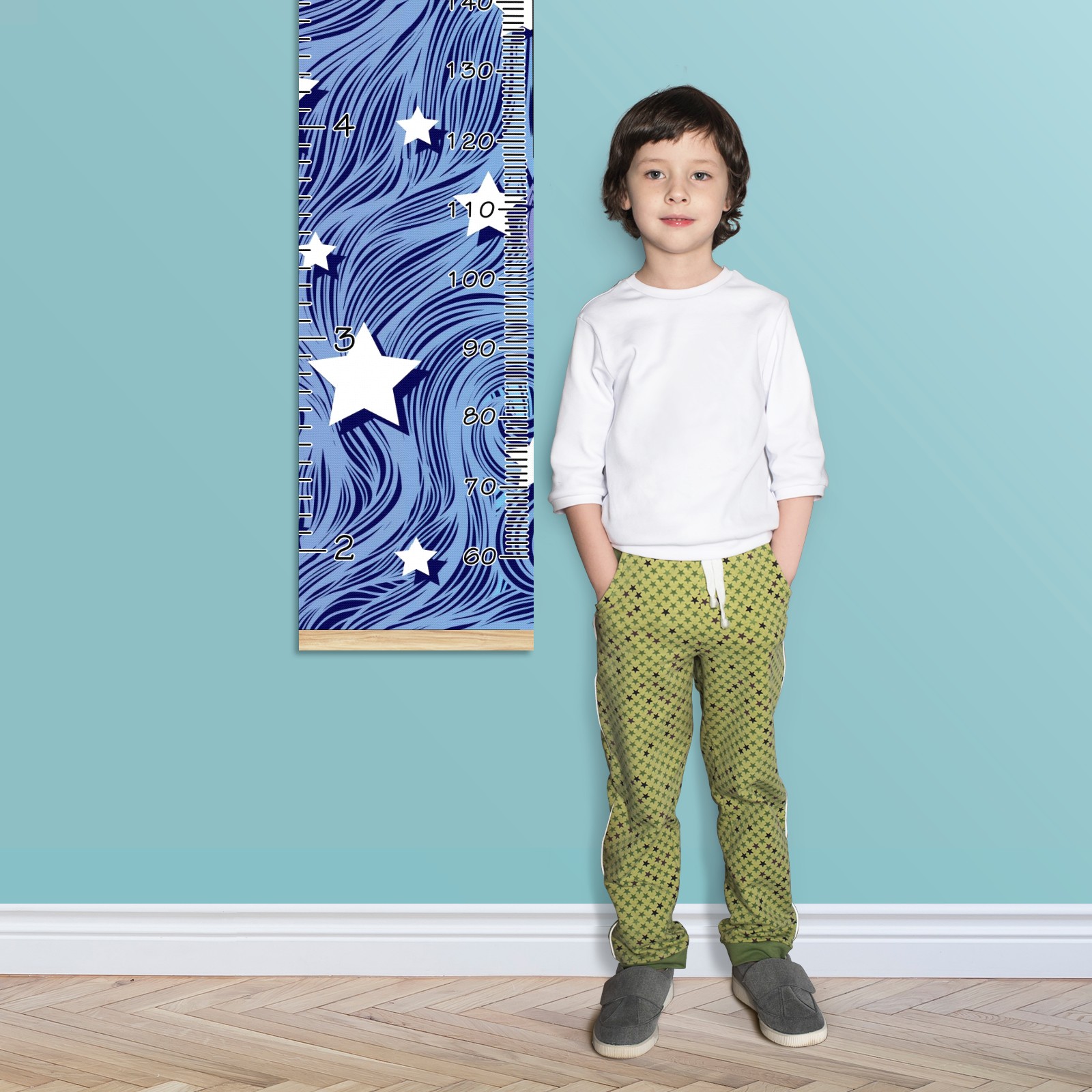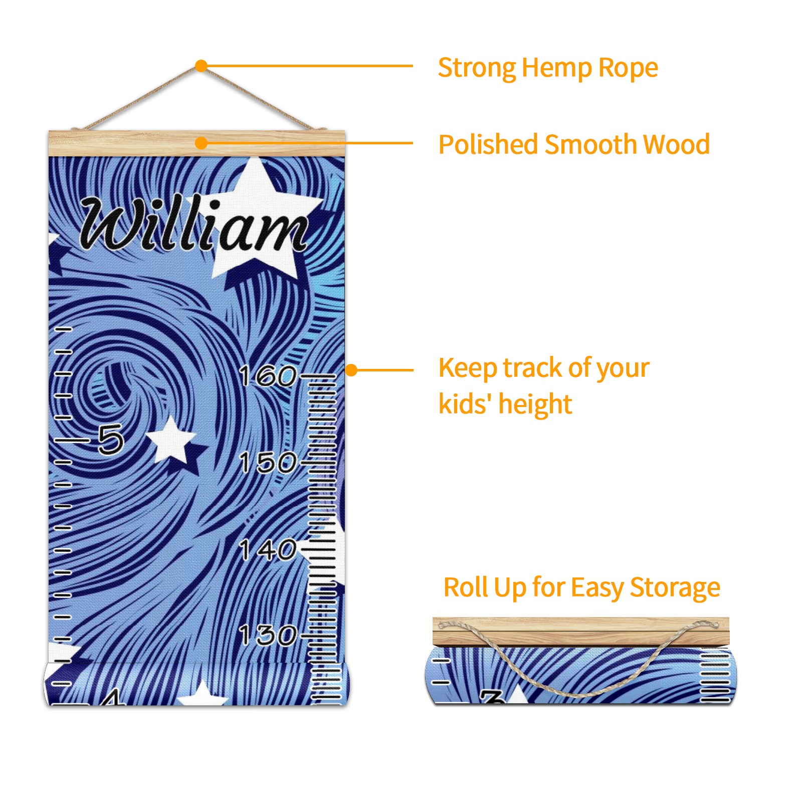 Personalized Kids Name Growth Chart Ruler for Wall Wood Frame Canvas Height Measure Chart 13.4x56 in Hanging Growth Chart Heat Wave Star Blue3.24 Boys Girls Room Decor
