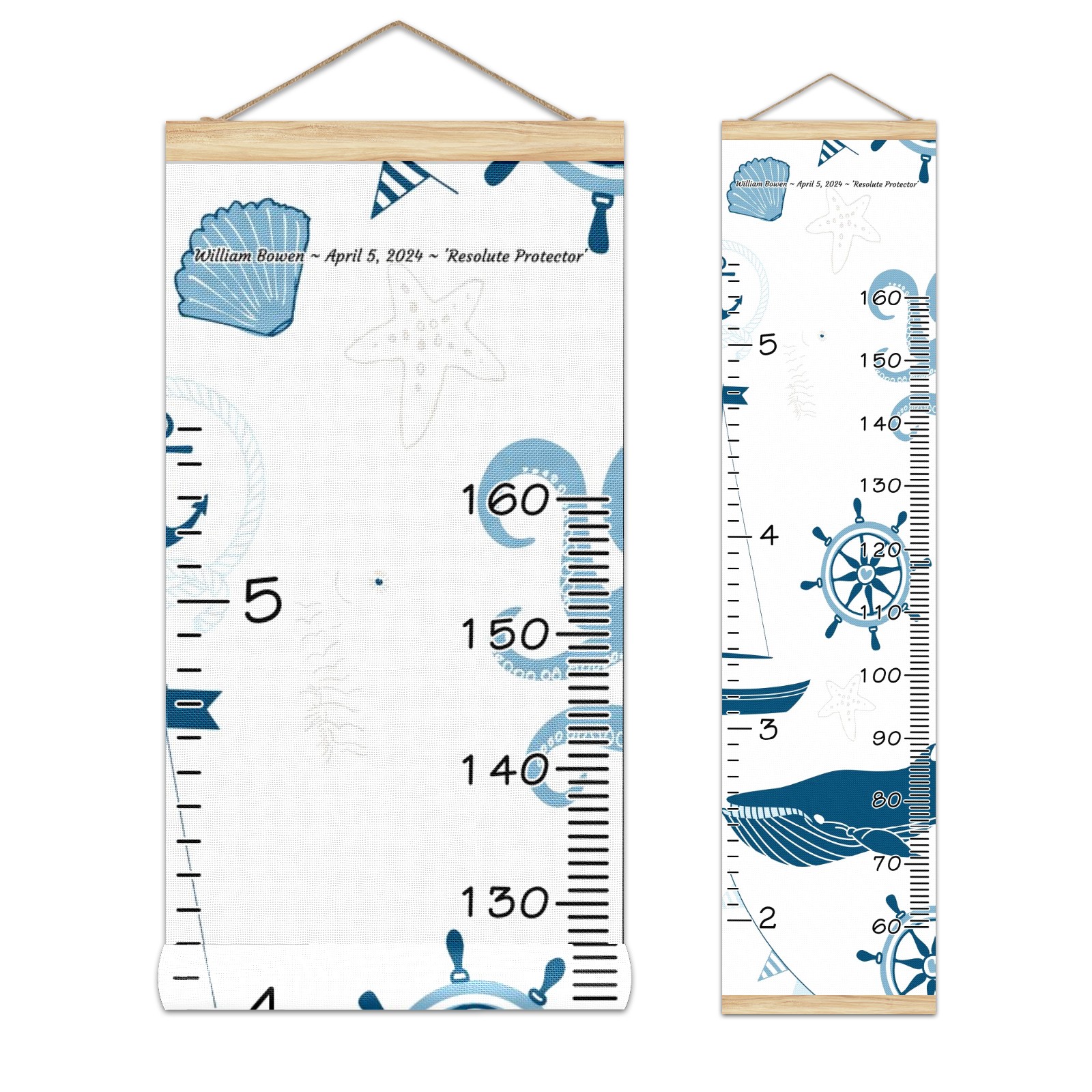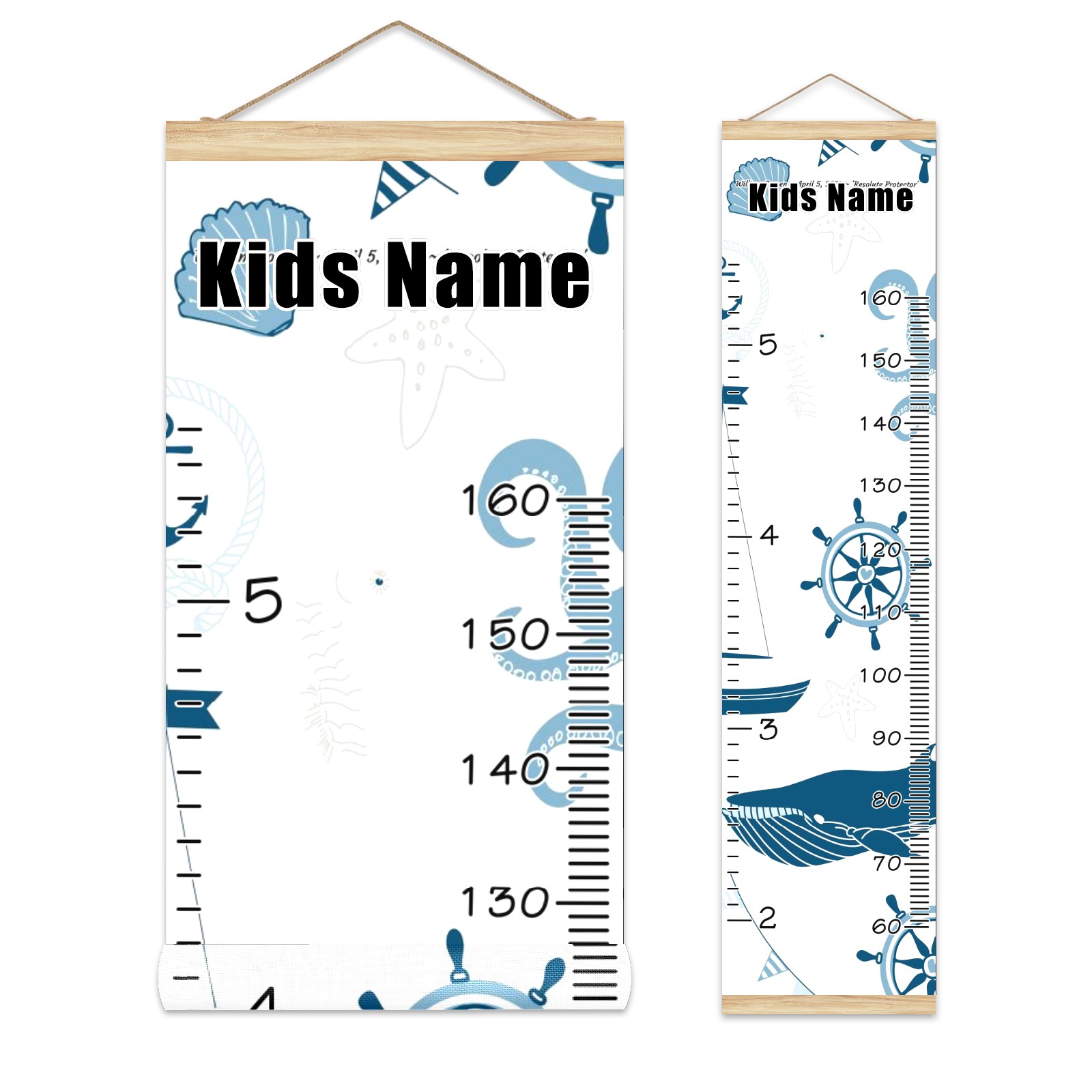 Personalized Kids Name Growth Chart Ruler for Wall Wood Frame Canvas Height Measure Chart 13.4x56 in Hanging Growth Chart Nautical Lighthouse Sailboat3.24-1 Boys Girls Room Decor