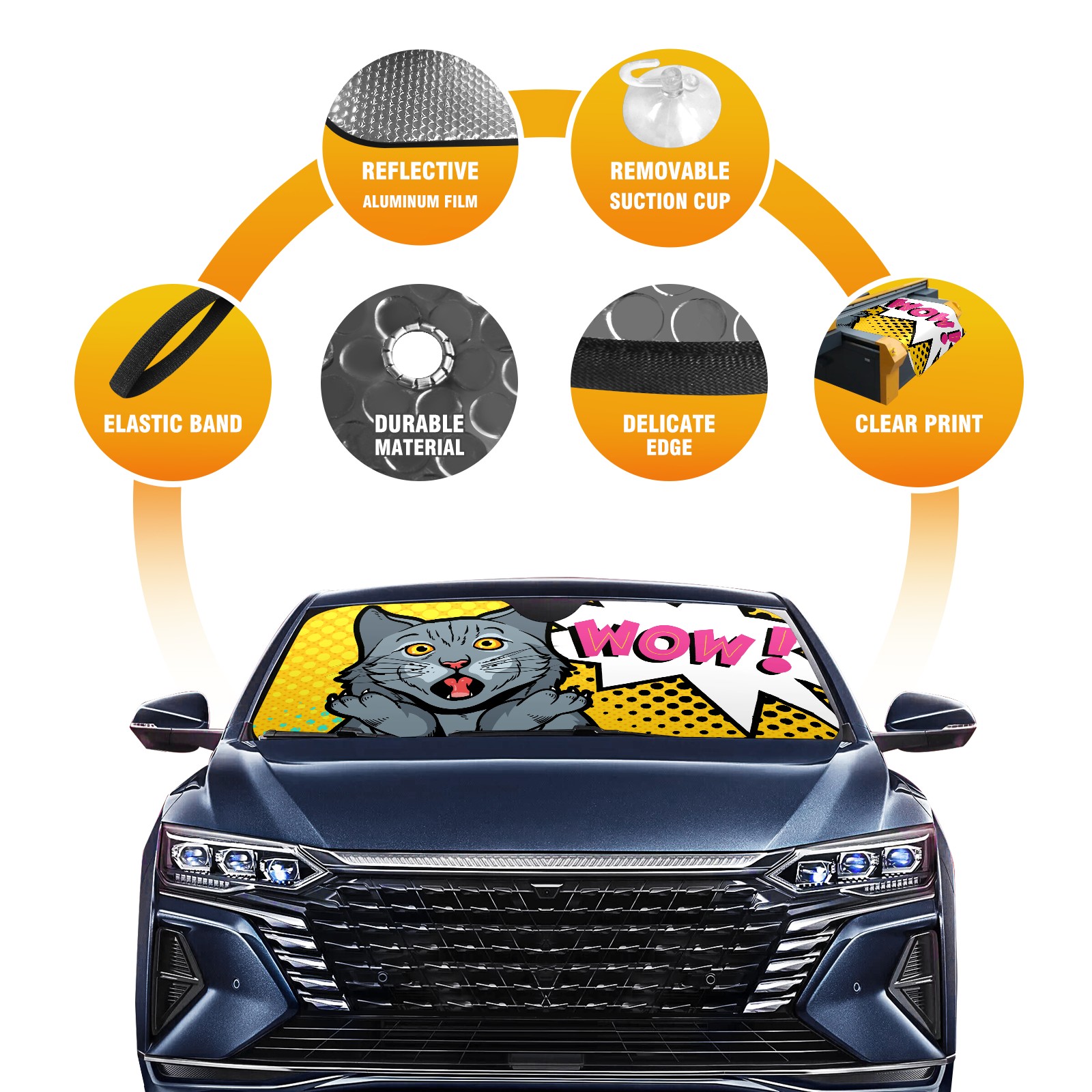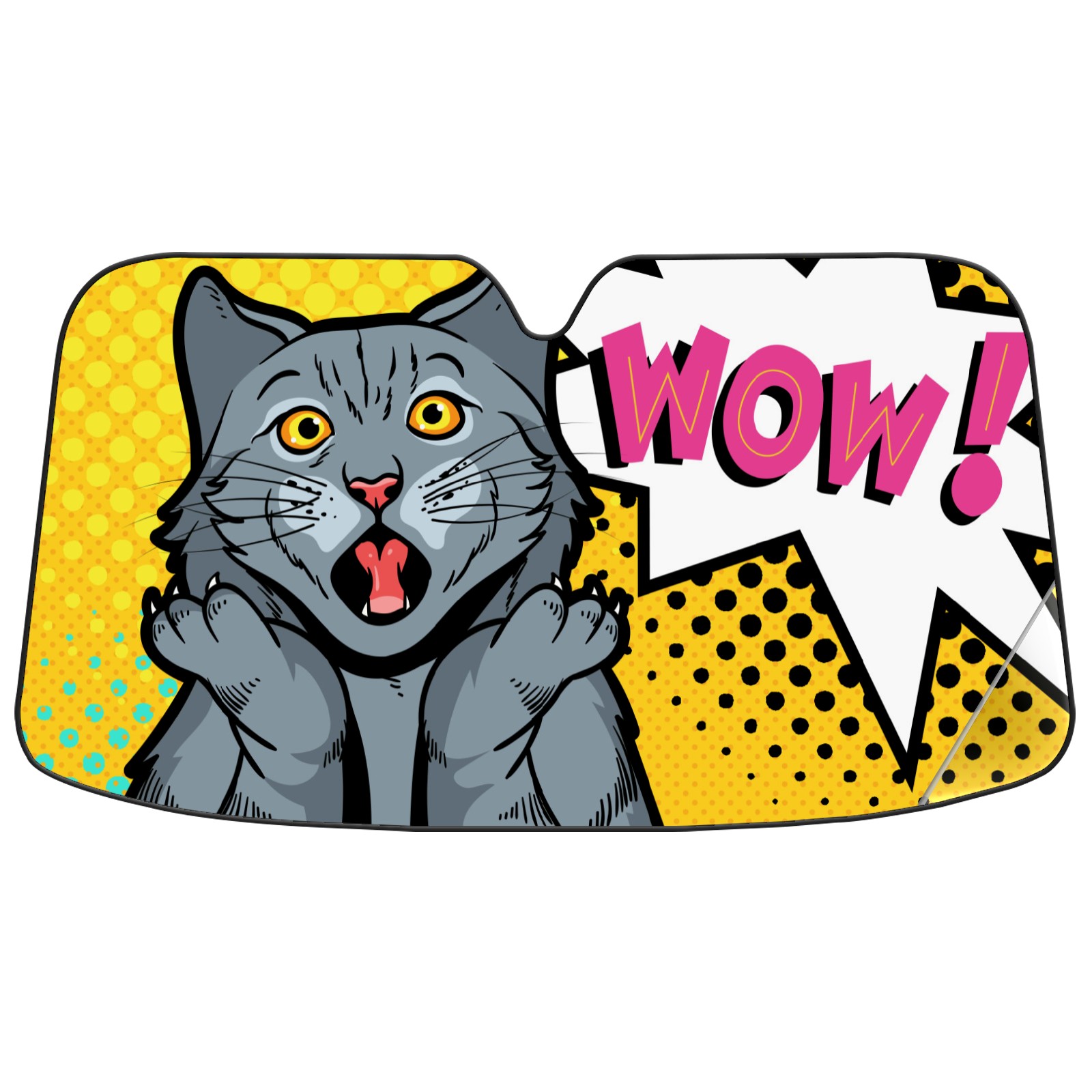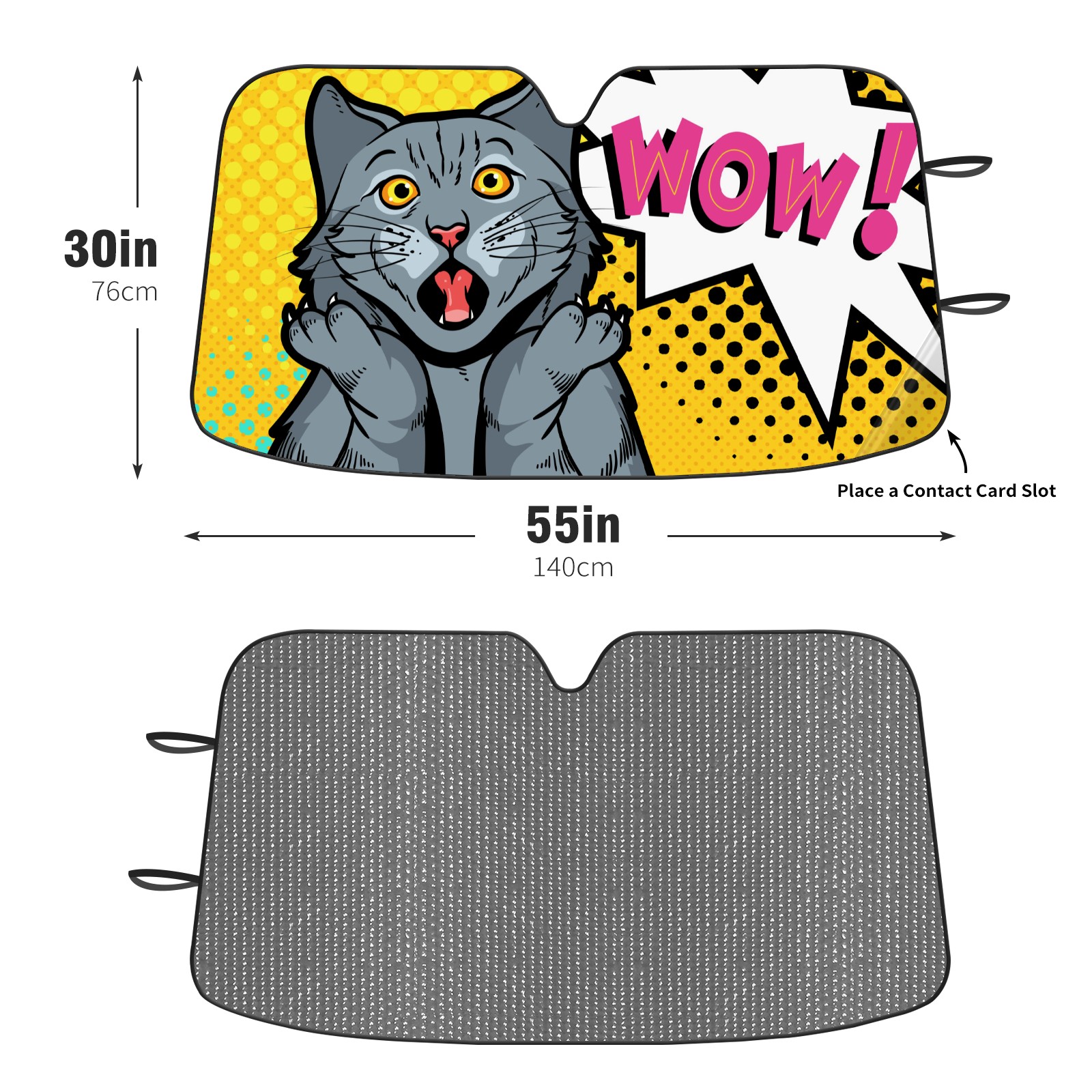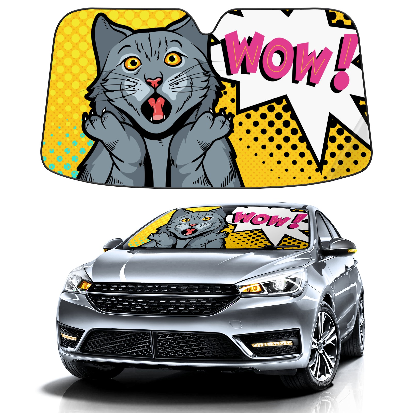 Surprise Cat Pop Art Car Sun Shade UV Protection Foldable Sunshade for Windshield Heat Insulation Portable Sun Shield for Car Interior Protection Automotive Window Protector