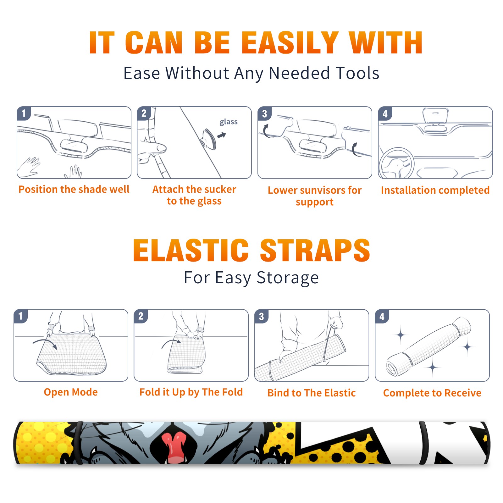• <p><b>Foldable Premium Car Windshield Sunshade is your great solution to reduce your car’s interior temperature dramatically! This is definitely a must-have item for your summer travel!</b></p><p><b>【Precision Fit, Stylish Protection】</b></p><p>55"x30" (140x76cm) universal size with 3cm flexible margins fits curved windshields of most sedans/SUVs.</p><p><b>【Blocking Uv Rays &amp; Heat Insulation】</b></p><p>Our vehicle sunshade provides effective UV, sun, and summer heat protection, preventing leather fading and plastic cracking to keep your car interior pristine.</p><p><b>【Zero-Mark Installation &amp; Space-Saving】</b></p><p>Equipped with dual scratch-free silicone suction cups + adjustable straps: Medical-grade silicone cups hold firmly yet remove cleanly. Folds to A3 size (42x30cm x &lt;2cm thick), tucks discreetly into glove compartments or door pockets.&nbsp;</p>