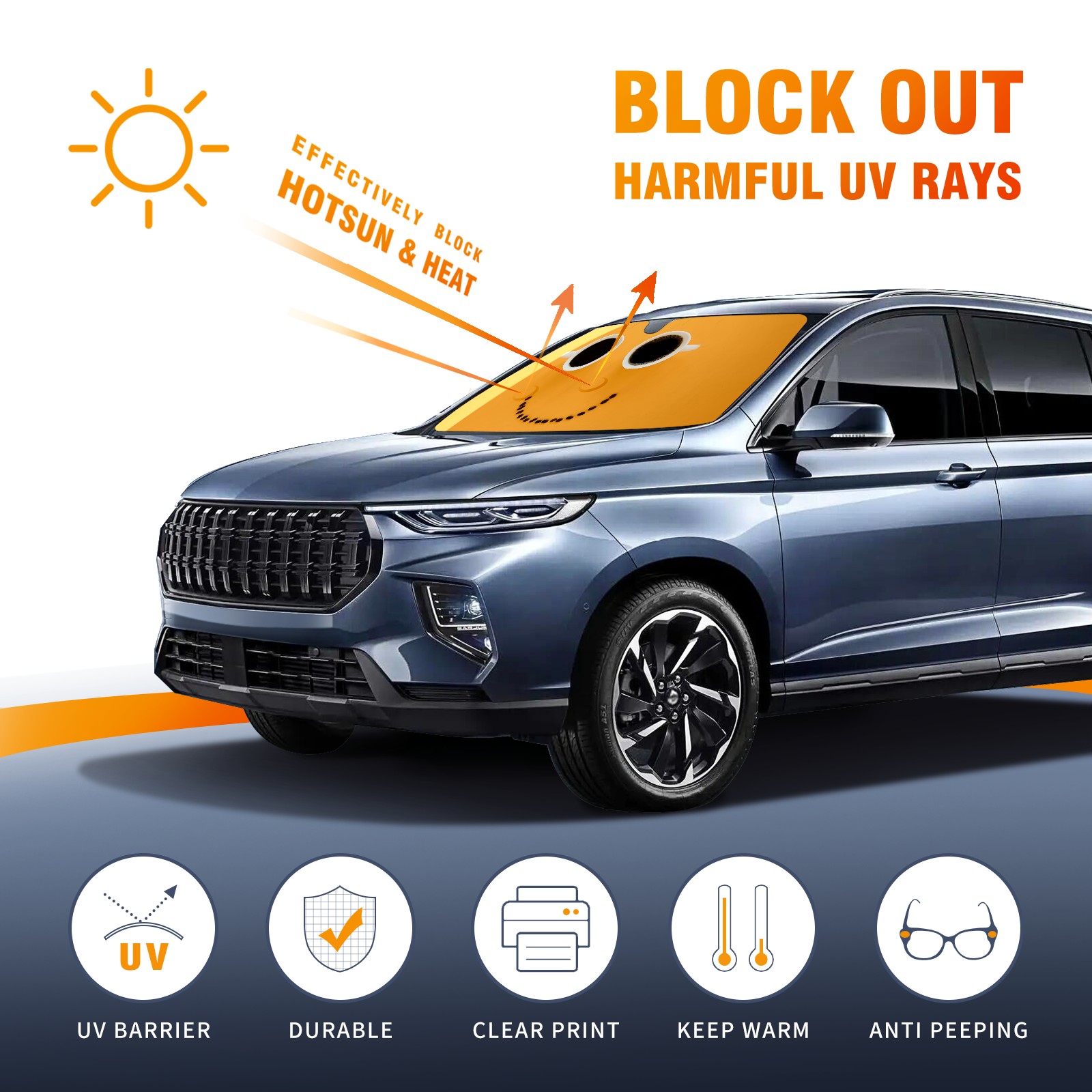 • <p><b>Foldable Premium Car Windshield Sunshade is your great solution to reduce your car’s interior temperature dramatically! This is definitely a must-have item for your summer travel!</b></p><p><b>【Precision Fit, Stylish Protection】</b></p><p>55"x30" (140x76cm) universal size with 3cm flexible margins fits curved windshields of most sedans/SUVs.</p><p><b>【Blocking Uv Rays &amp; Heat Insulation】</b></p><p>Our vehicle sunshade provides effective UV, sun, and summer heat protection, preventing leather fading and plastic cracking to keep your car interior pristine.</p><p><b>【Zero-Mark Installation &amp; Space-Saving】</b></p><p>Equipped with dual scratch-free silicone suction cups + adjustable straps: Medical-grade silicone cups hold firmly yet remove cleanly. Folds to A3 size (42x30cm x &lt;2cm thick), tucks discreetly into glove compartments or door pockets.&nbsp;</p>