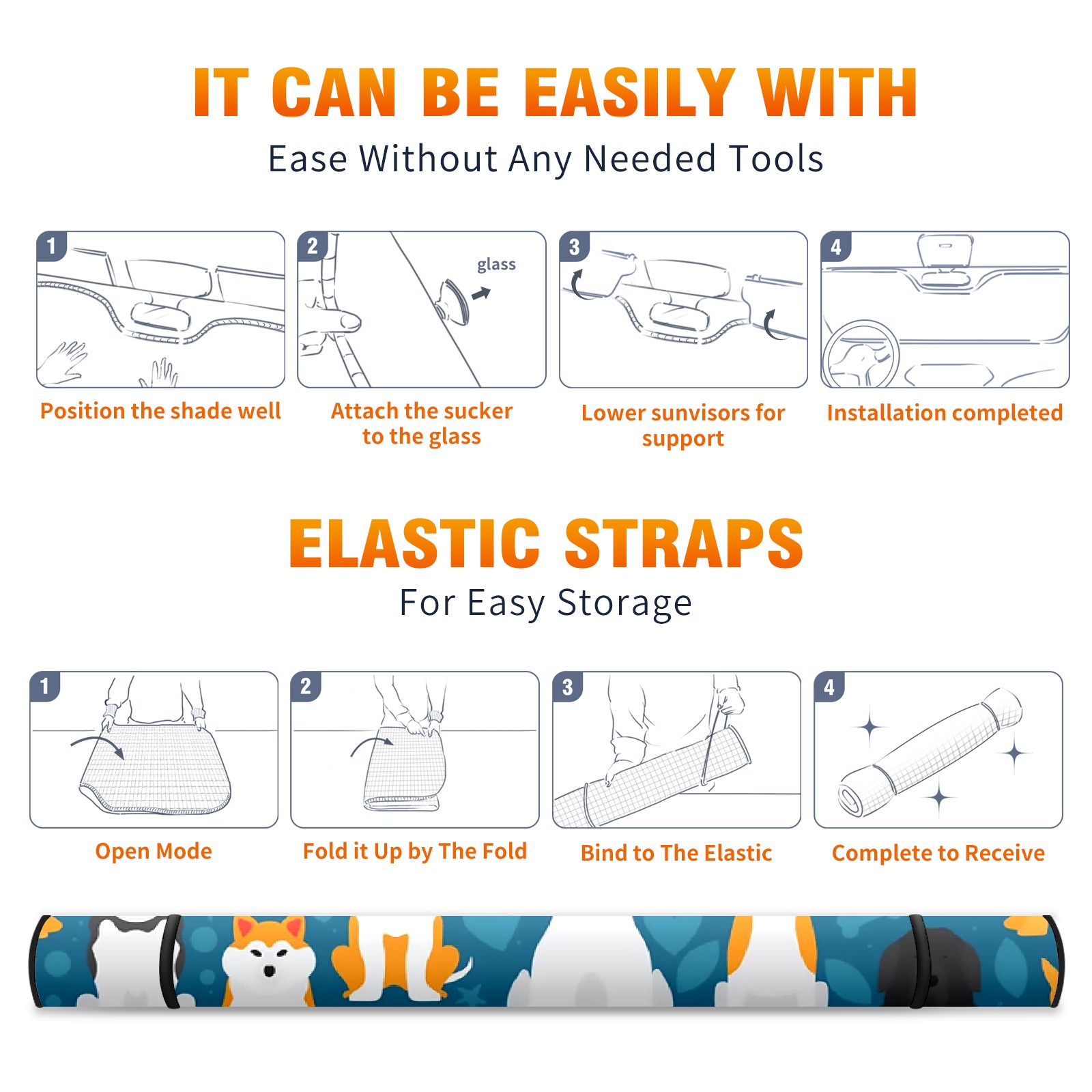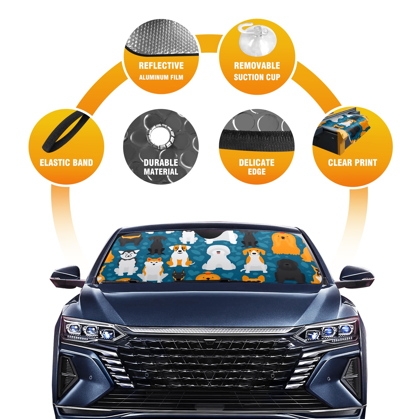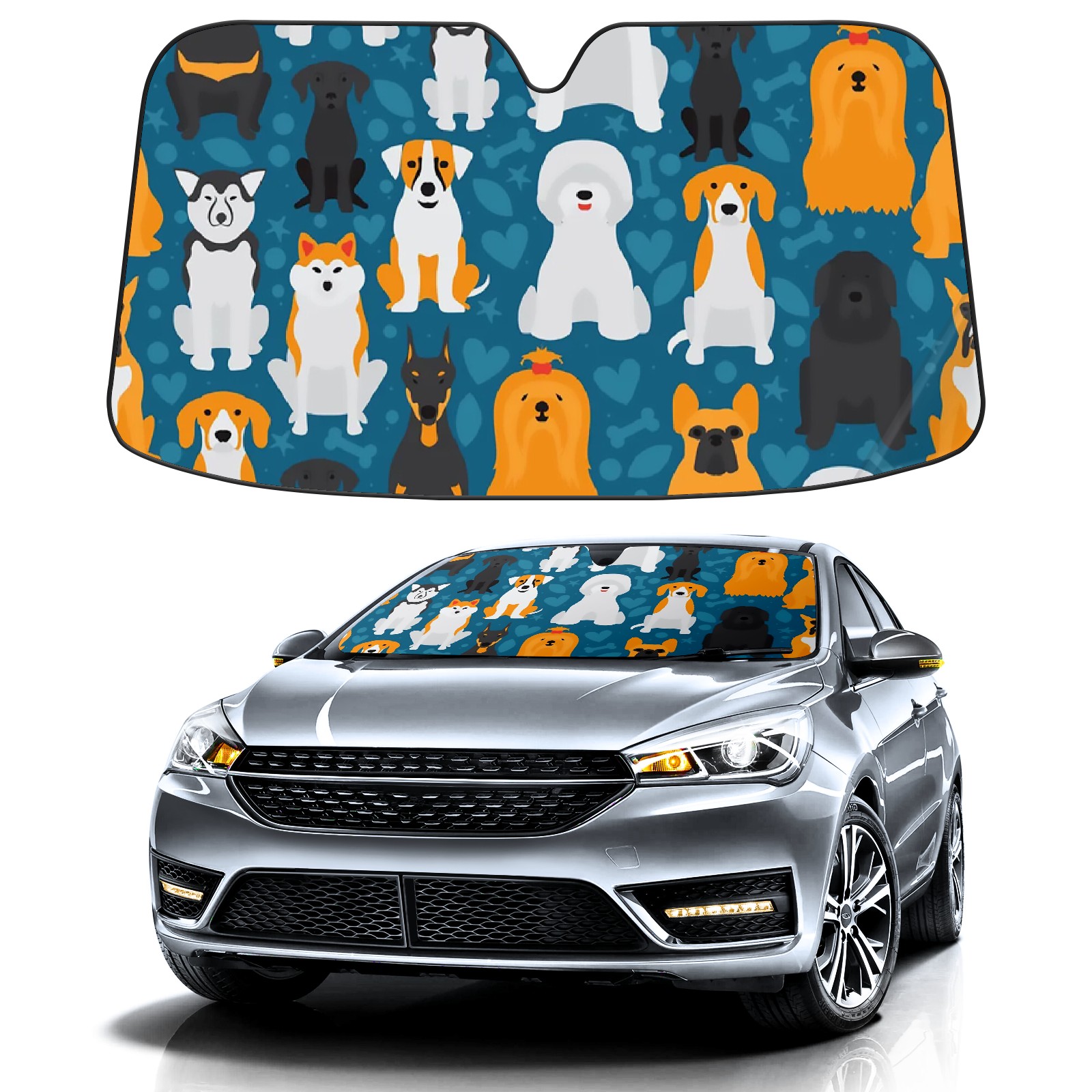 Cute Dogs Car Sun Shade UV Protection Foldable Sunshade for Windshield Heat Insulation Portable Sun Shield for Car Interior Protection Automotive Window Protector